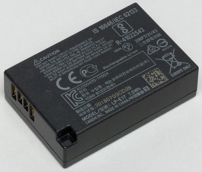 | Батарея | литий-ионный аккумулятор LP-E17: 410 кадров (по методике CIPA); 80 минут непрерывной записи видео |