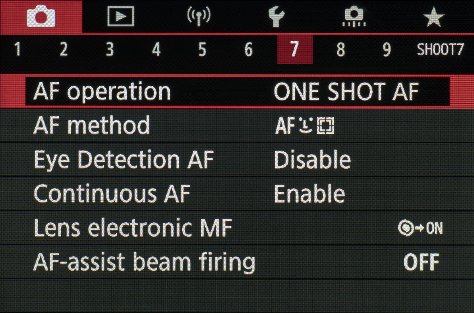 | Режимы фокусировки | однокадровая (One Shot AF) и следящая (Servo AF) |