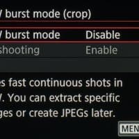 В таблице приведены значения средней скорости съемки для разных режимов. Первой скоростью назовем ту, с которой серийная съемка стартует. Ее предел — время, после которого съемка замедляется и продолжается со второй скоростью. Единицы измерения — кадры в секунду и секунды соответственно. Символ бесконечности означает, что при съемке ста кадров скорость не изменилась.