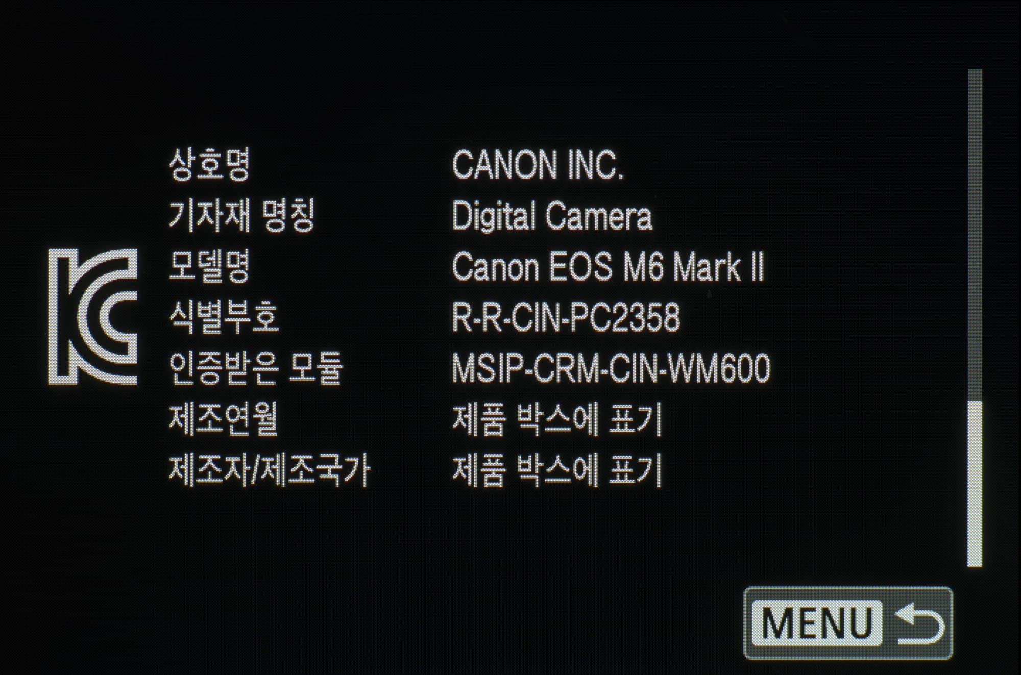 | Наименование | Canon EOS M6 Mark II |