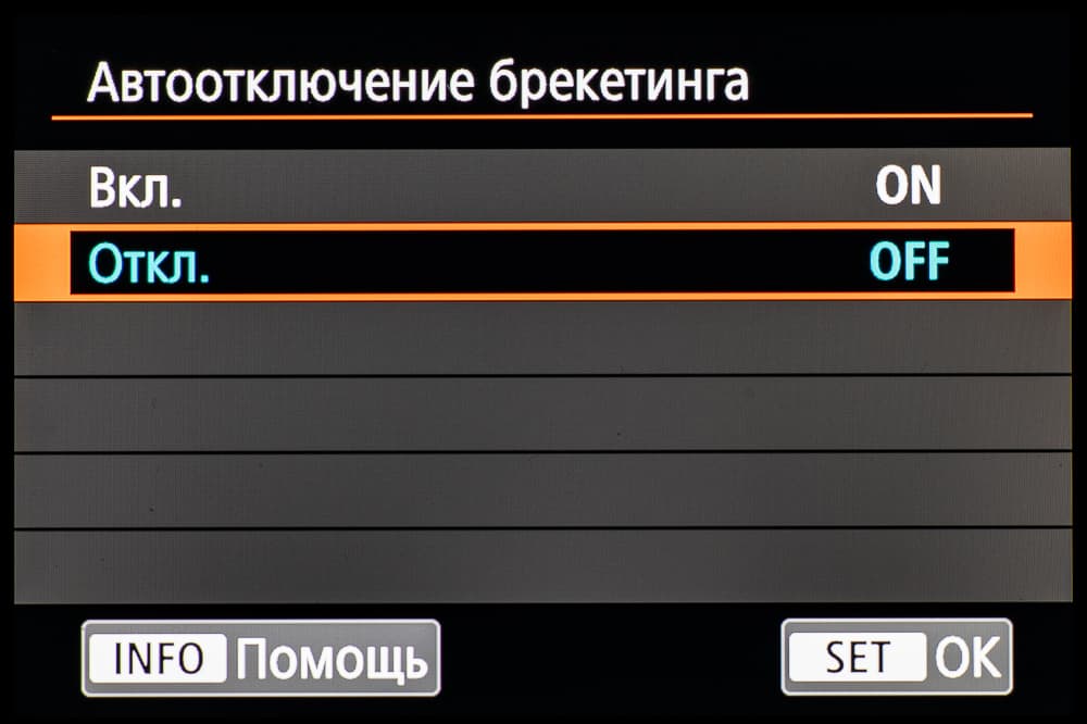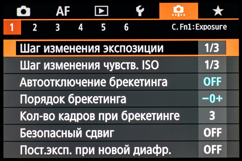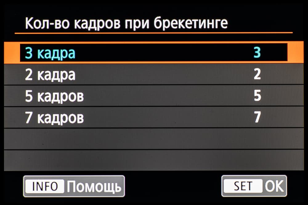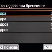 | Экспобрекетинг | 2, 3, 5 или 7 кадров; ±3 EV с шагом ⅓ или ½ EV |