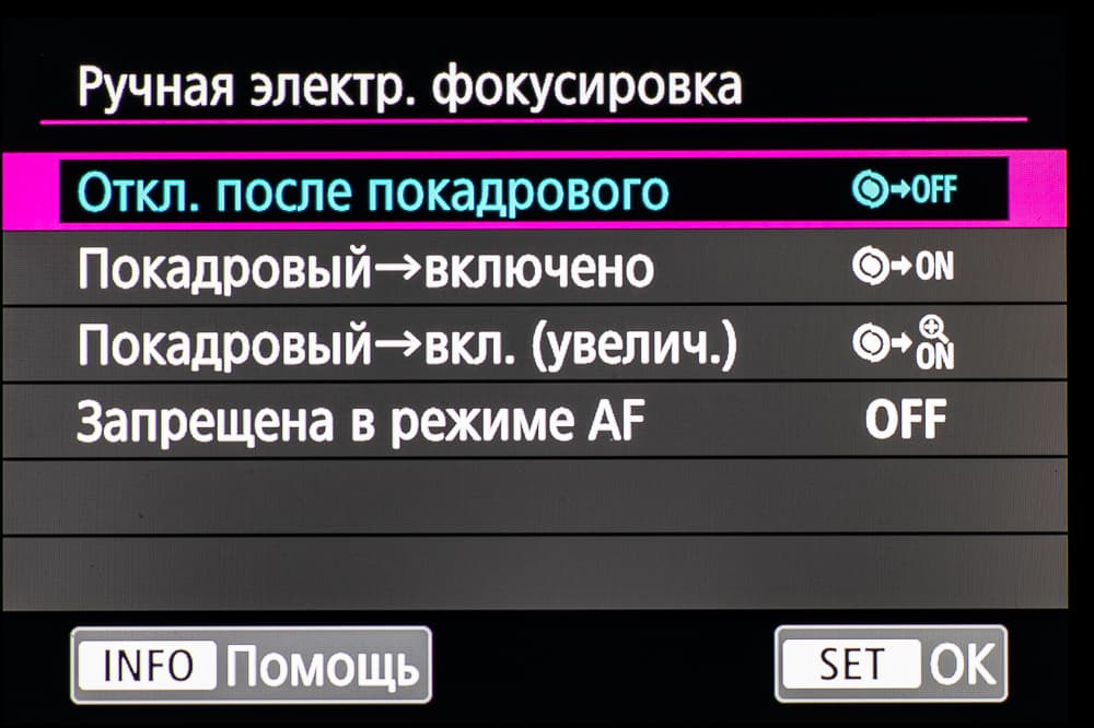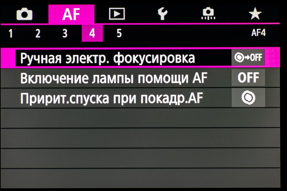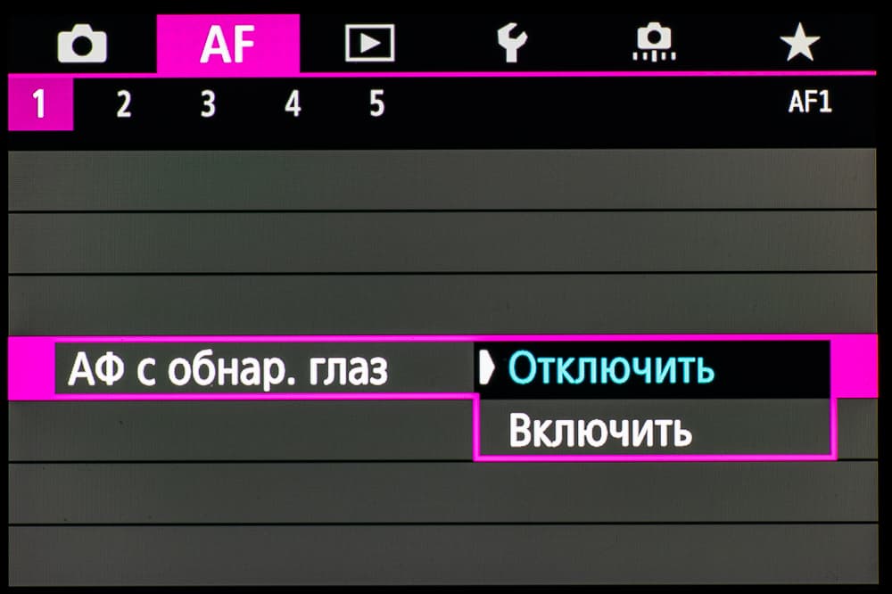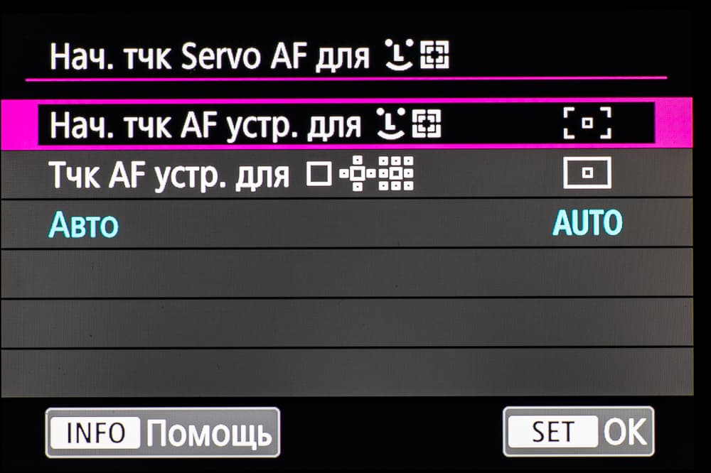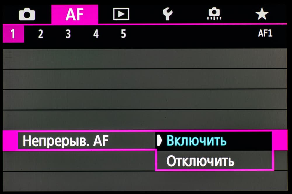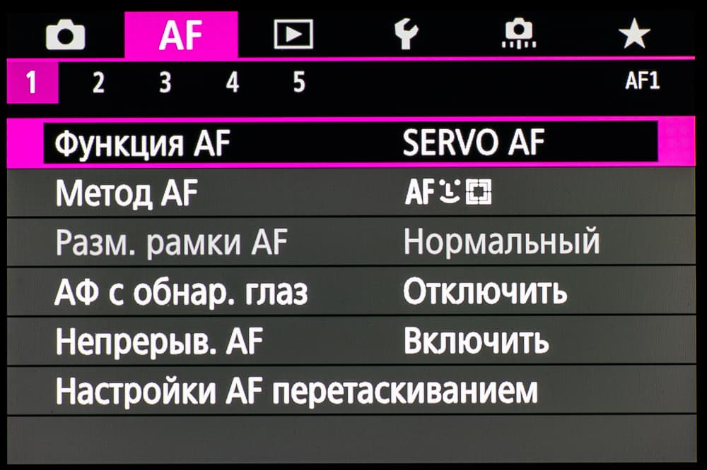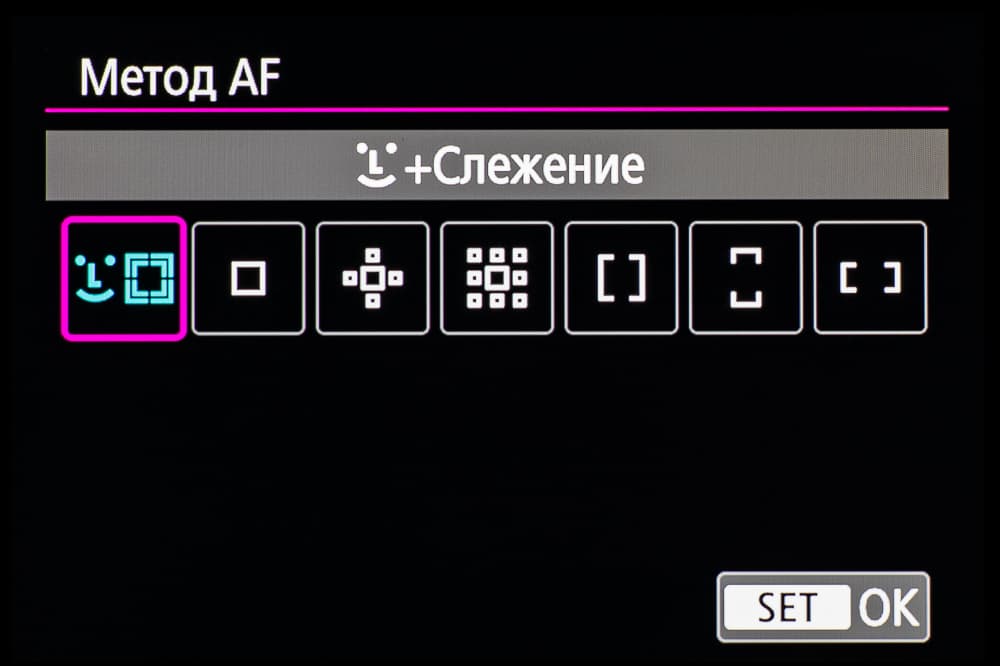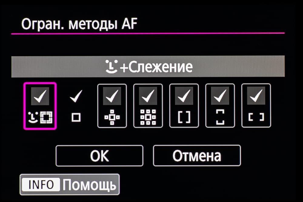 - однокадровая или следящая автоматическая фокусировка (в зависимости от динамики сцены),