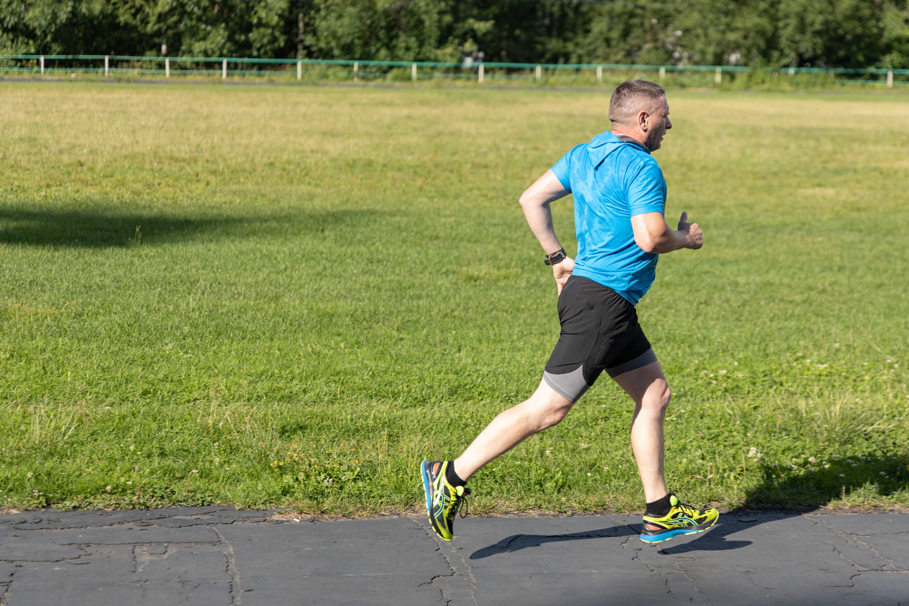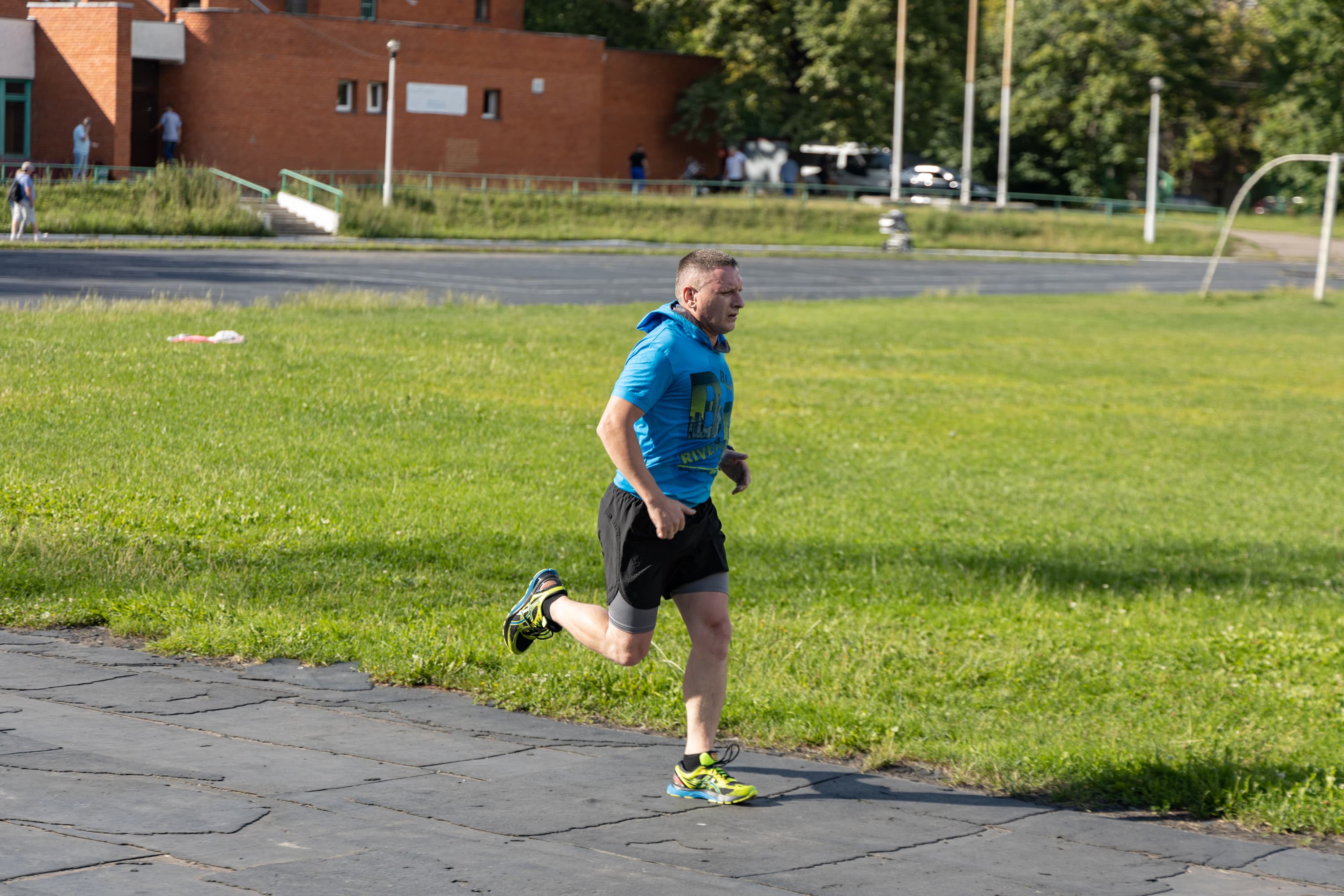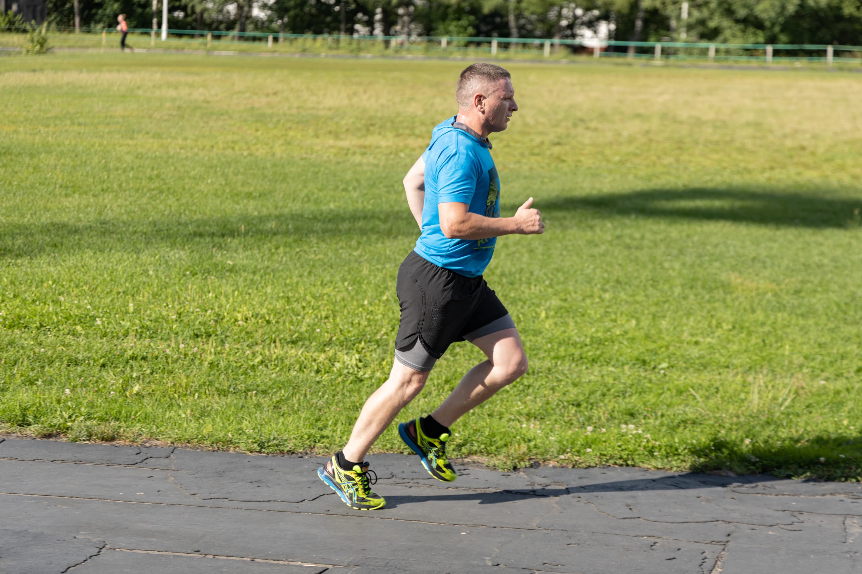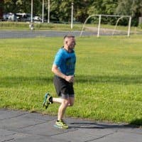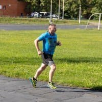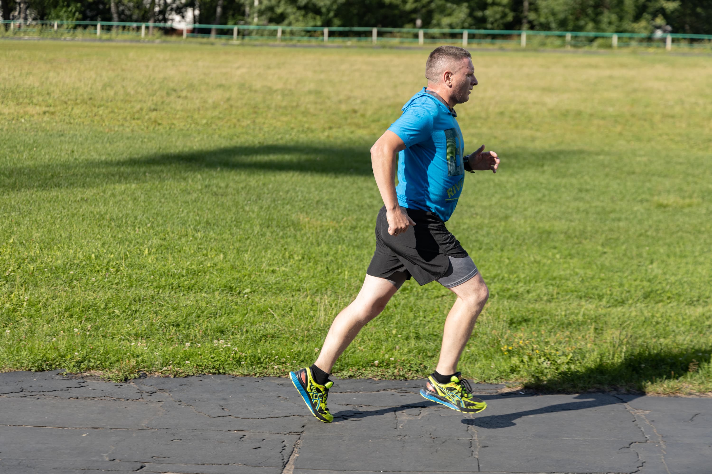 В принципе, на всех кадрах фигура бегуна в фокусе, но в трех случаях из-за близкой дистанции резкость переместилась с головы на трусы.