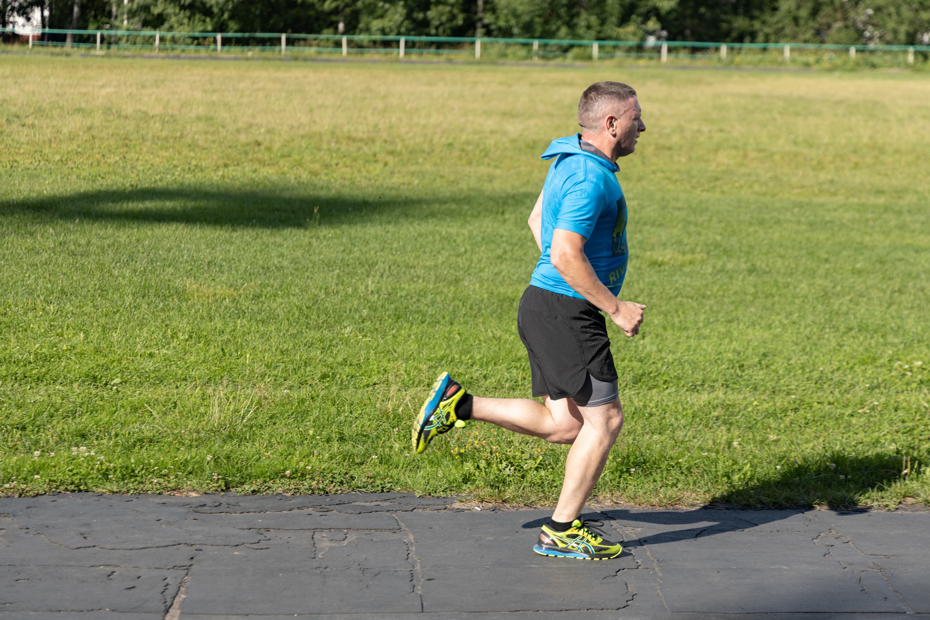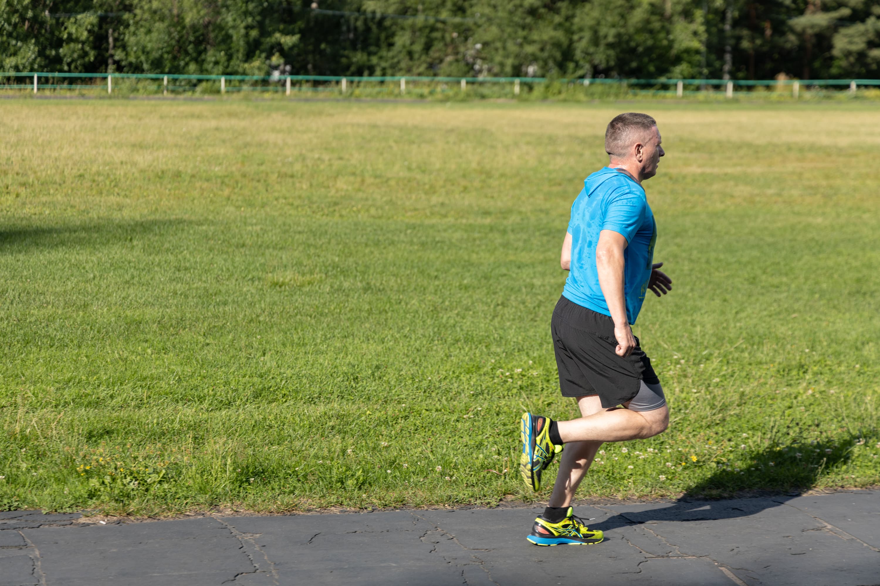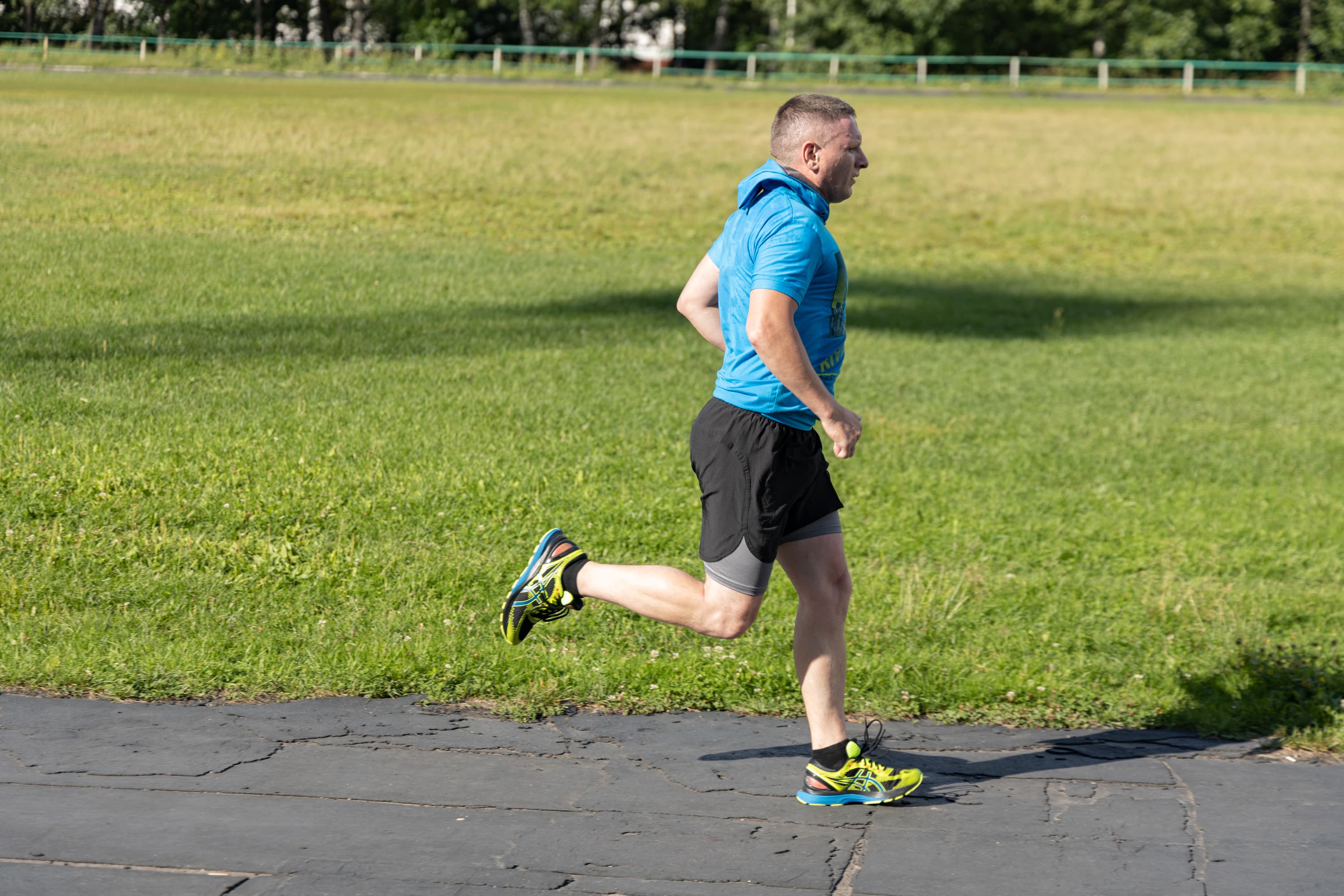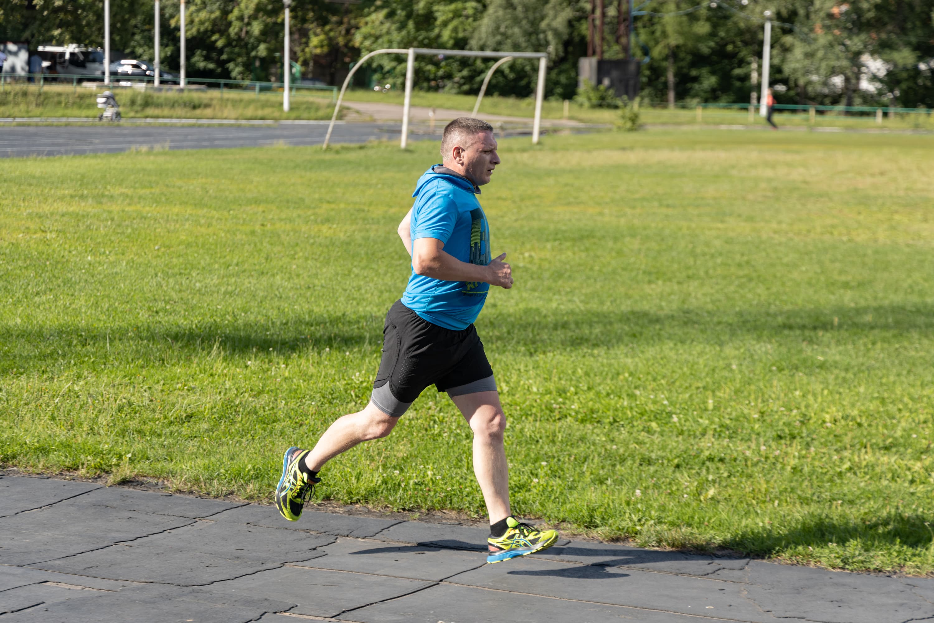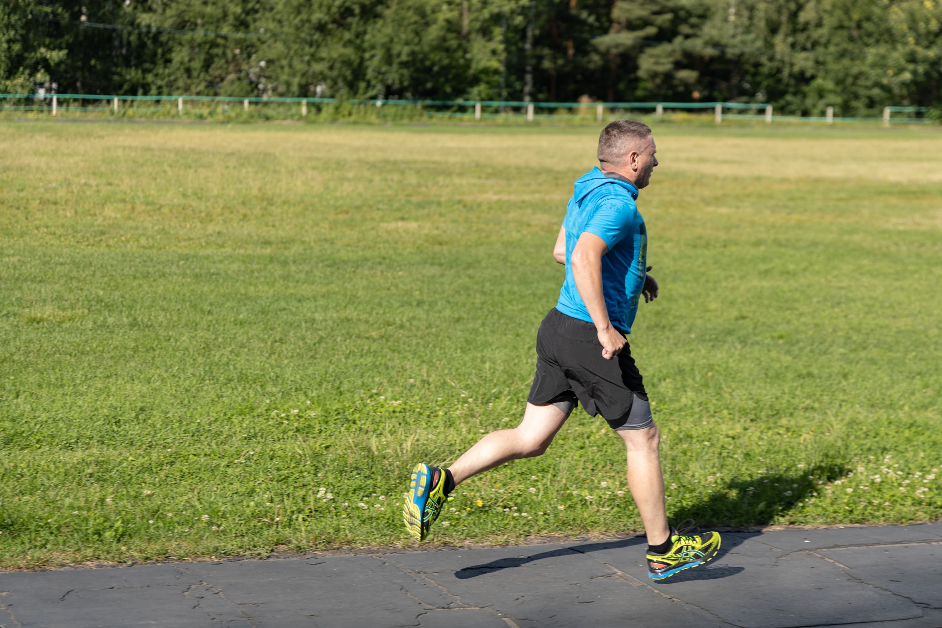 В принципе, на всех кадрах фигура бегуна в фокусе, но в трех случаях из-за близкой дистанции резкость переместилась с головы на трусы.