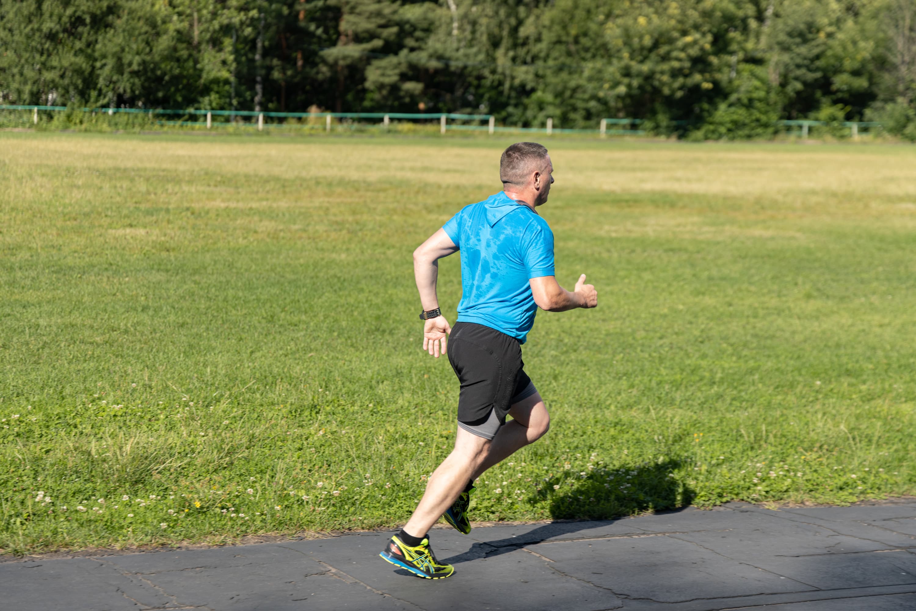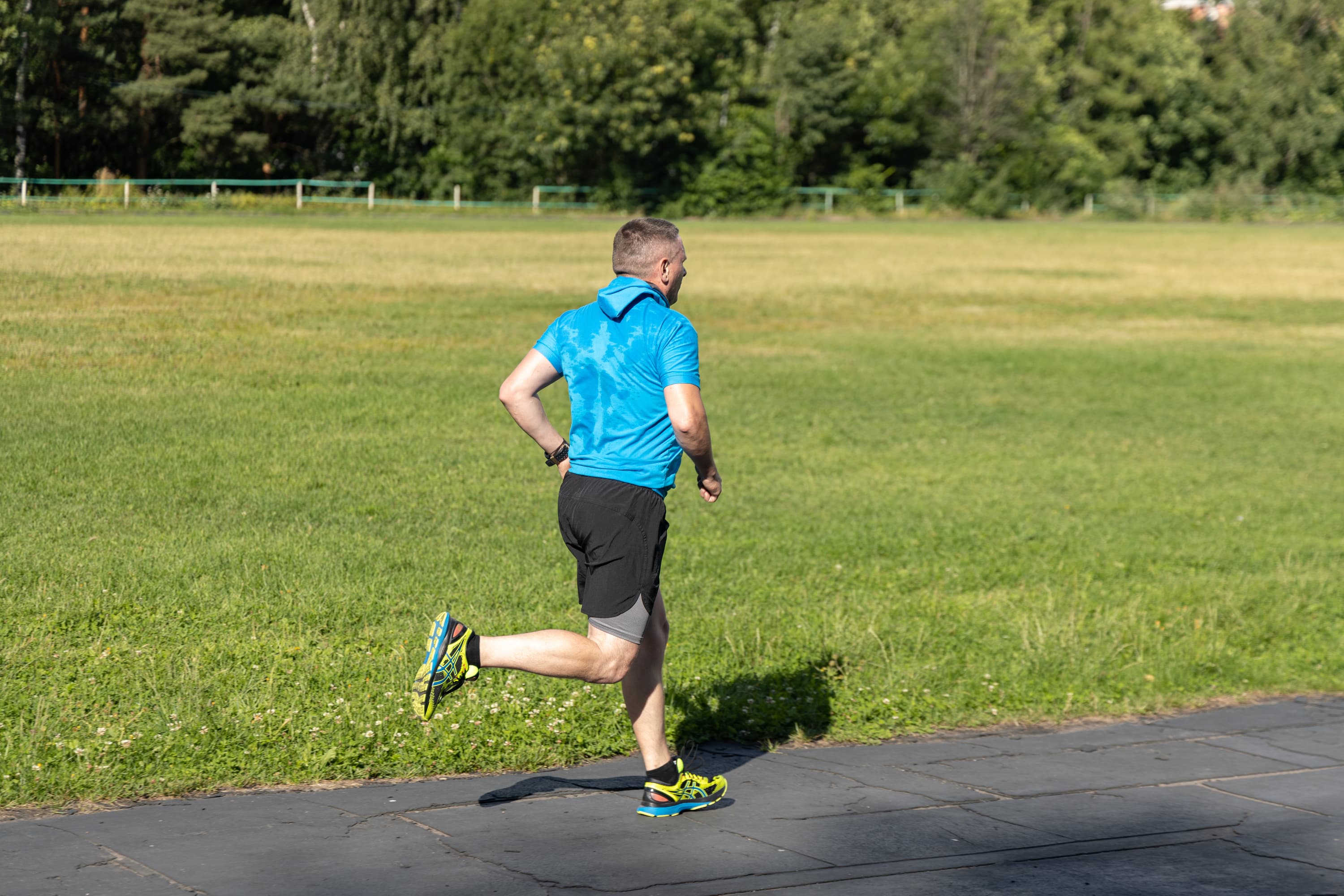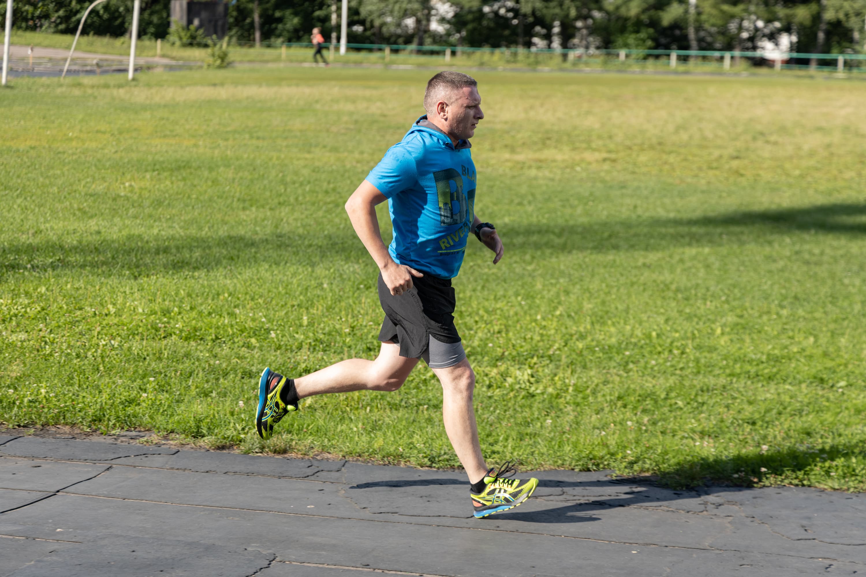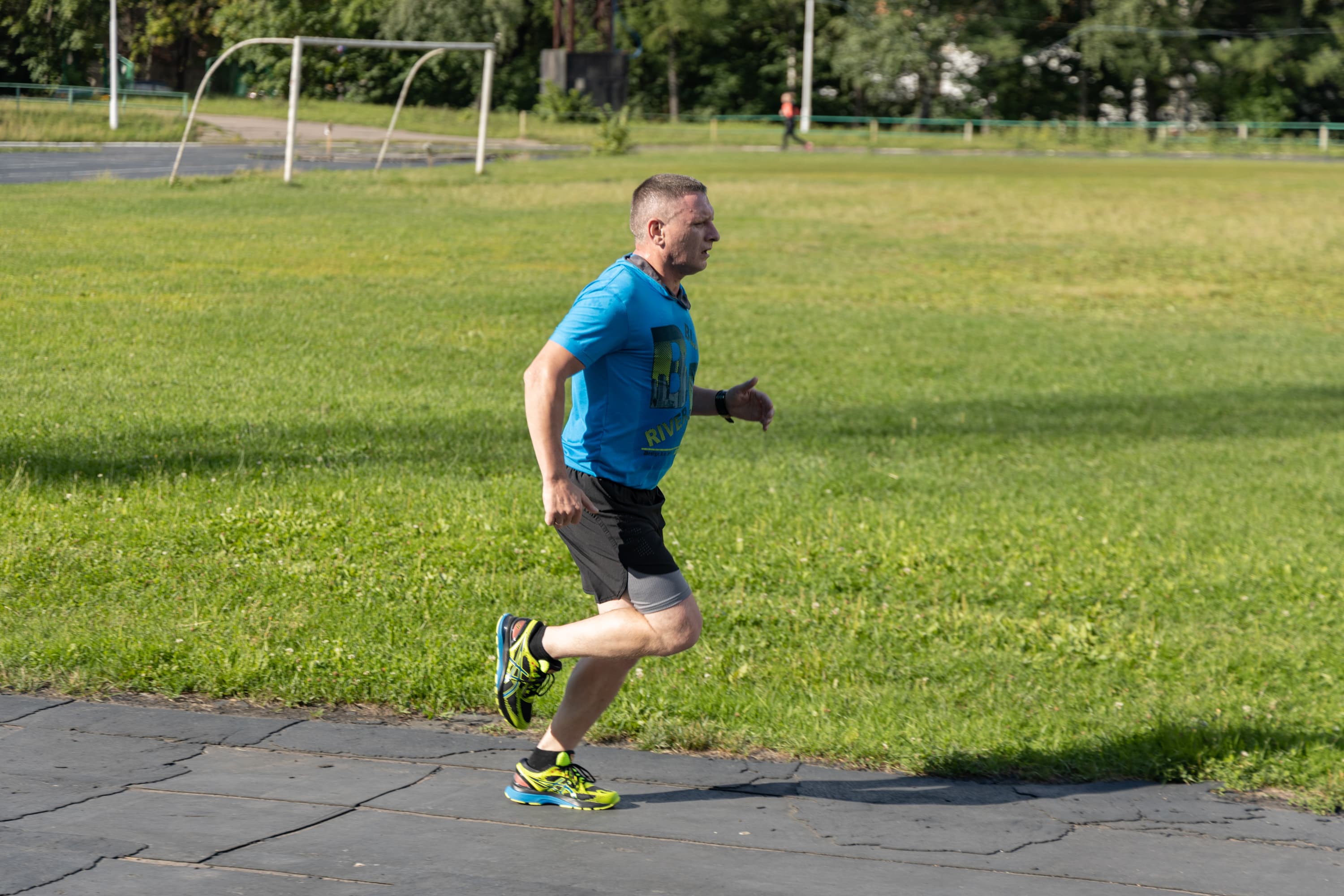 В принципе, на всех кадрах фигура бегуна в фокусе, но в трех случаях из-за близкой дистанции резкость переместилась с головы на трусы.