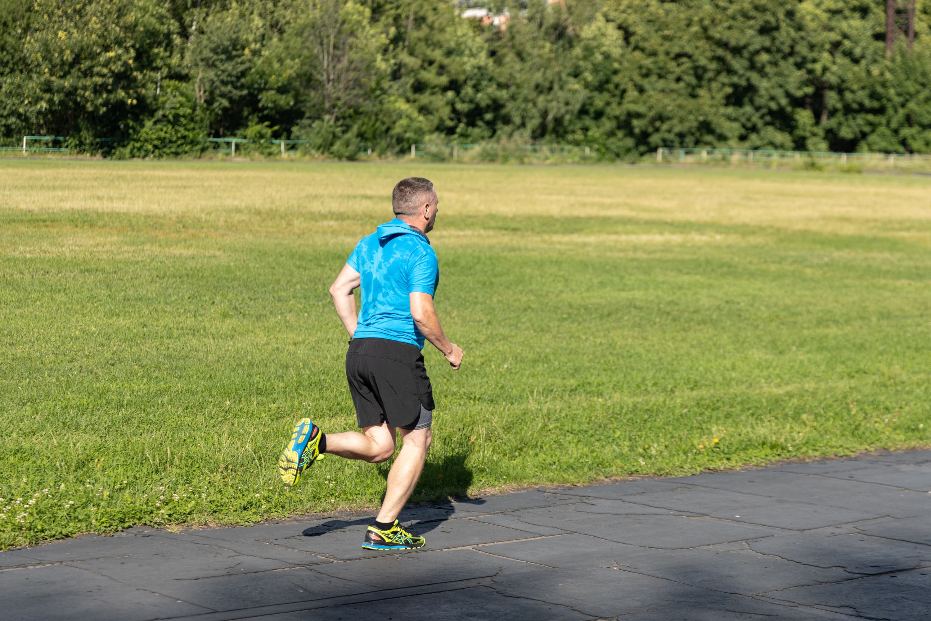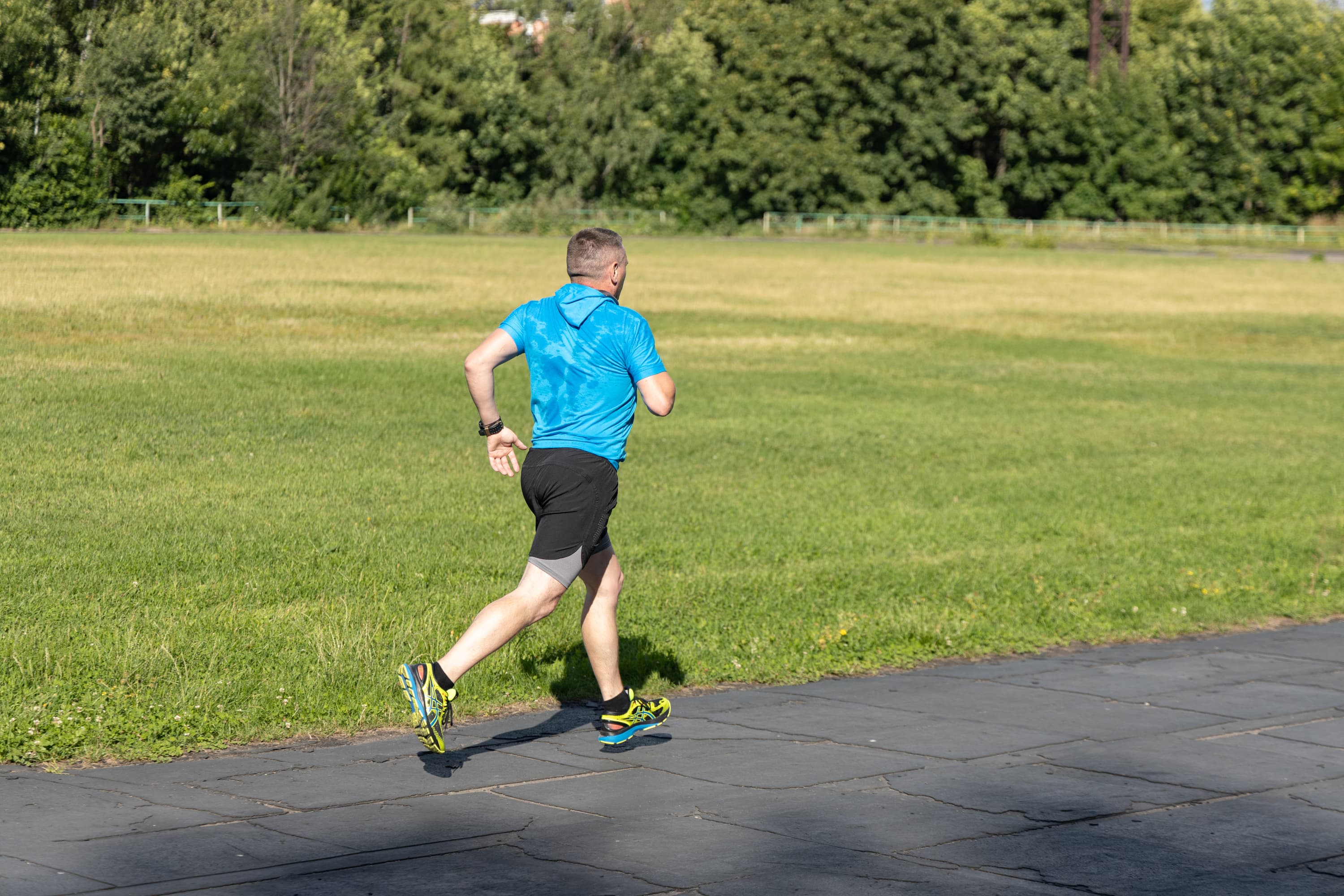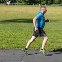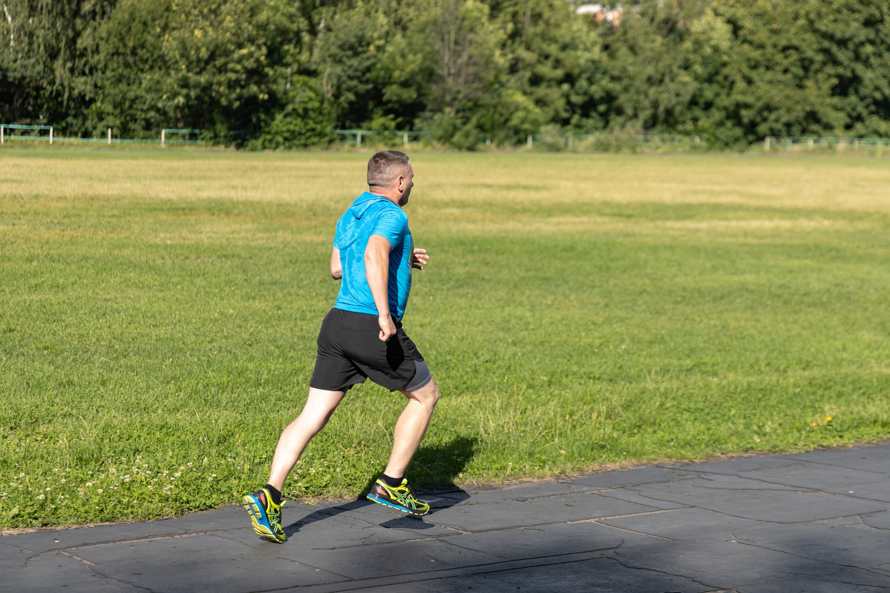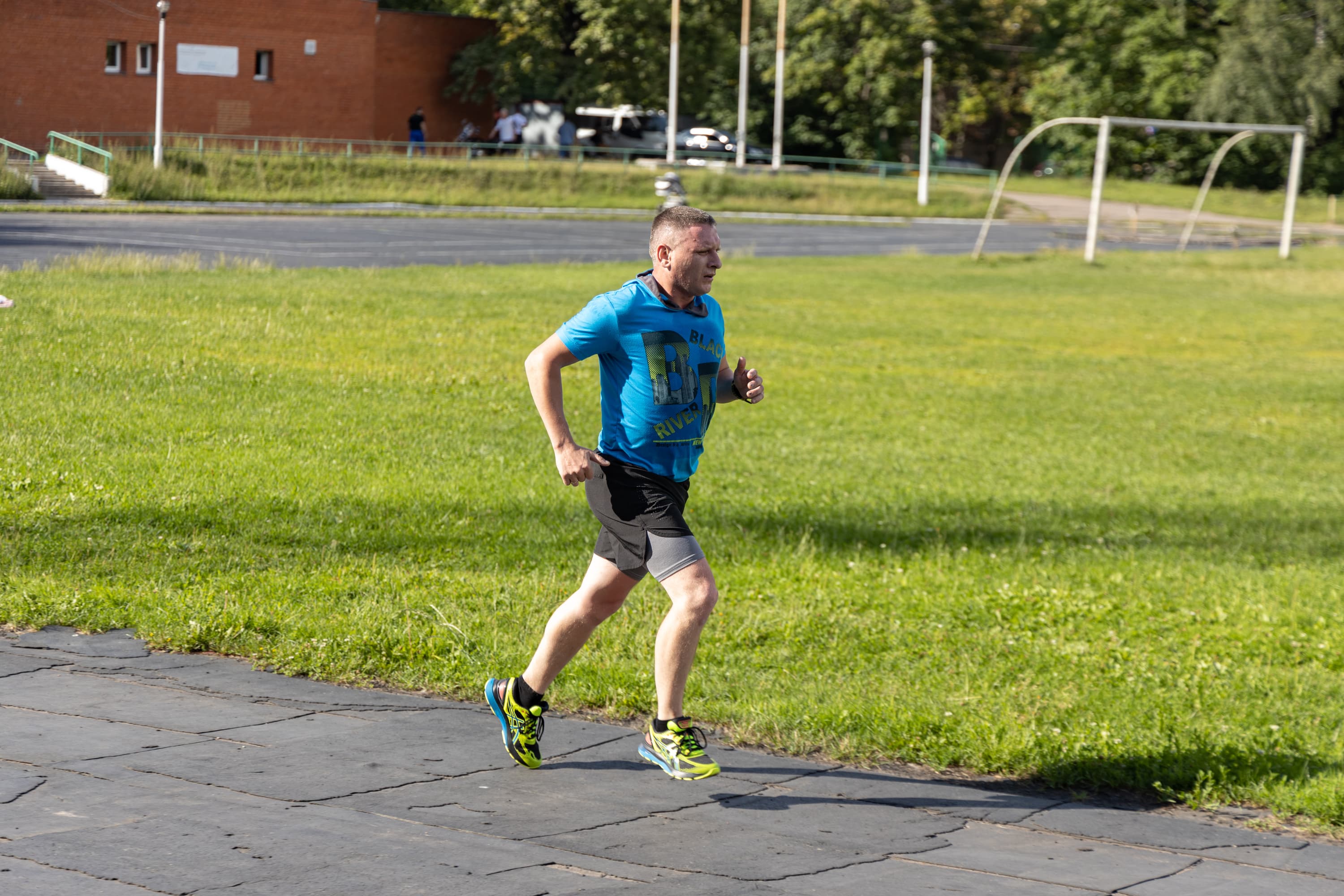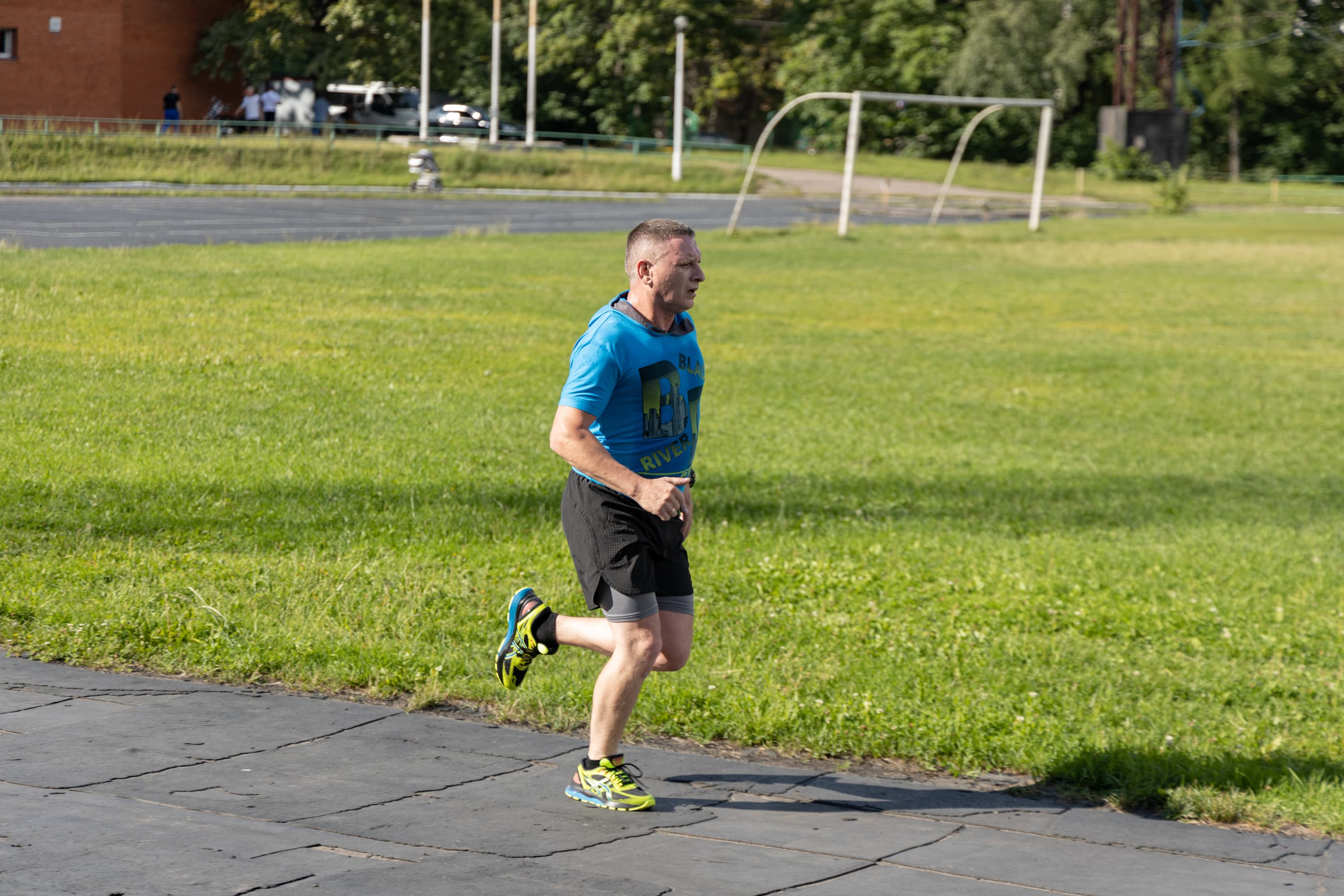 В принципе, на всех кадрах фигура бегуна в фокусе, но в трех случаях из-за близкой дистанции резкость переместилась с головы на трусы.