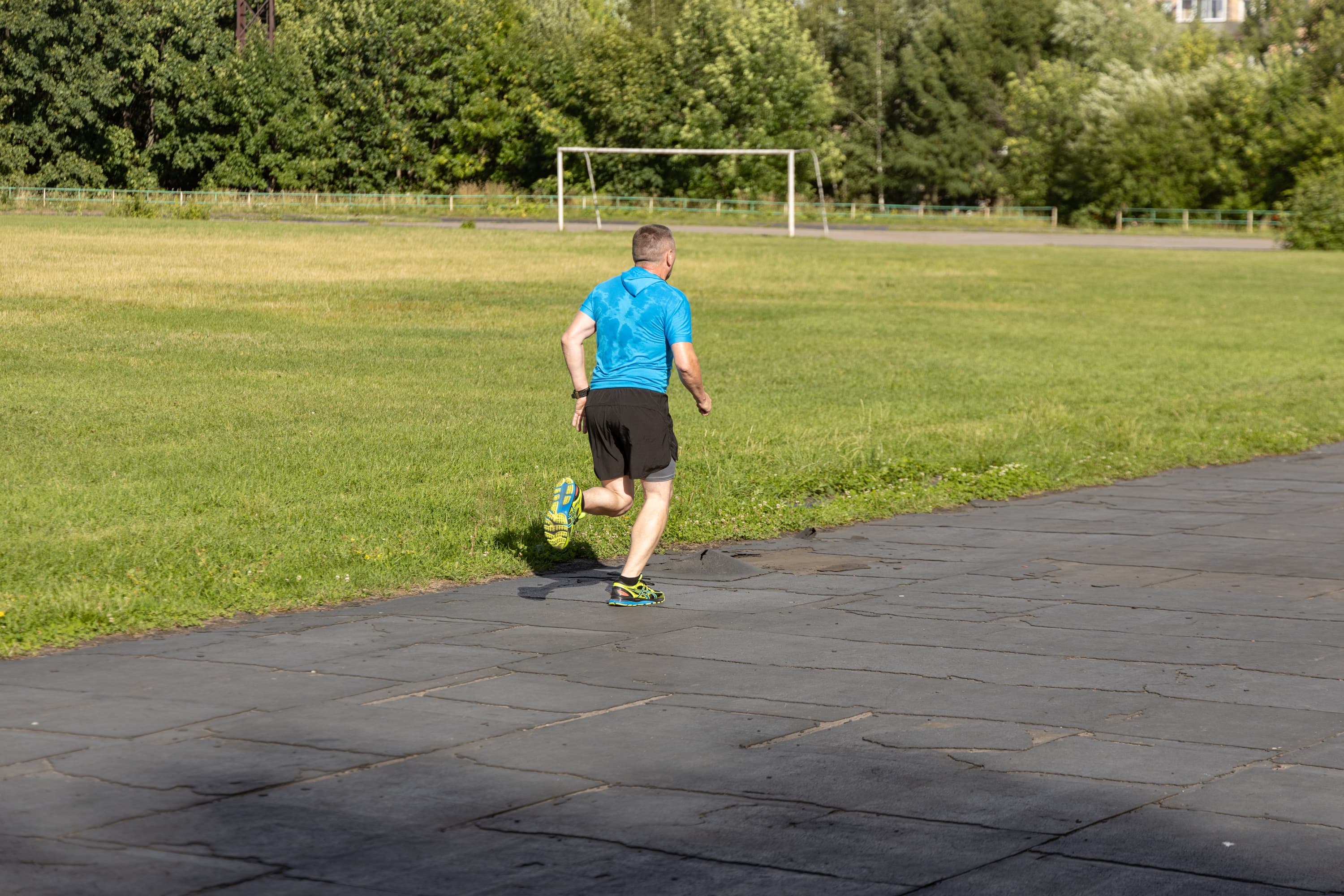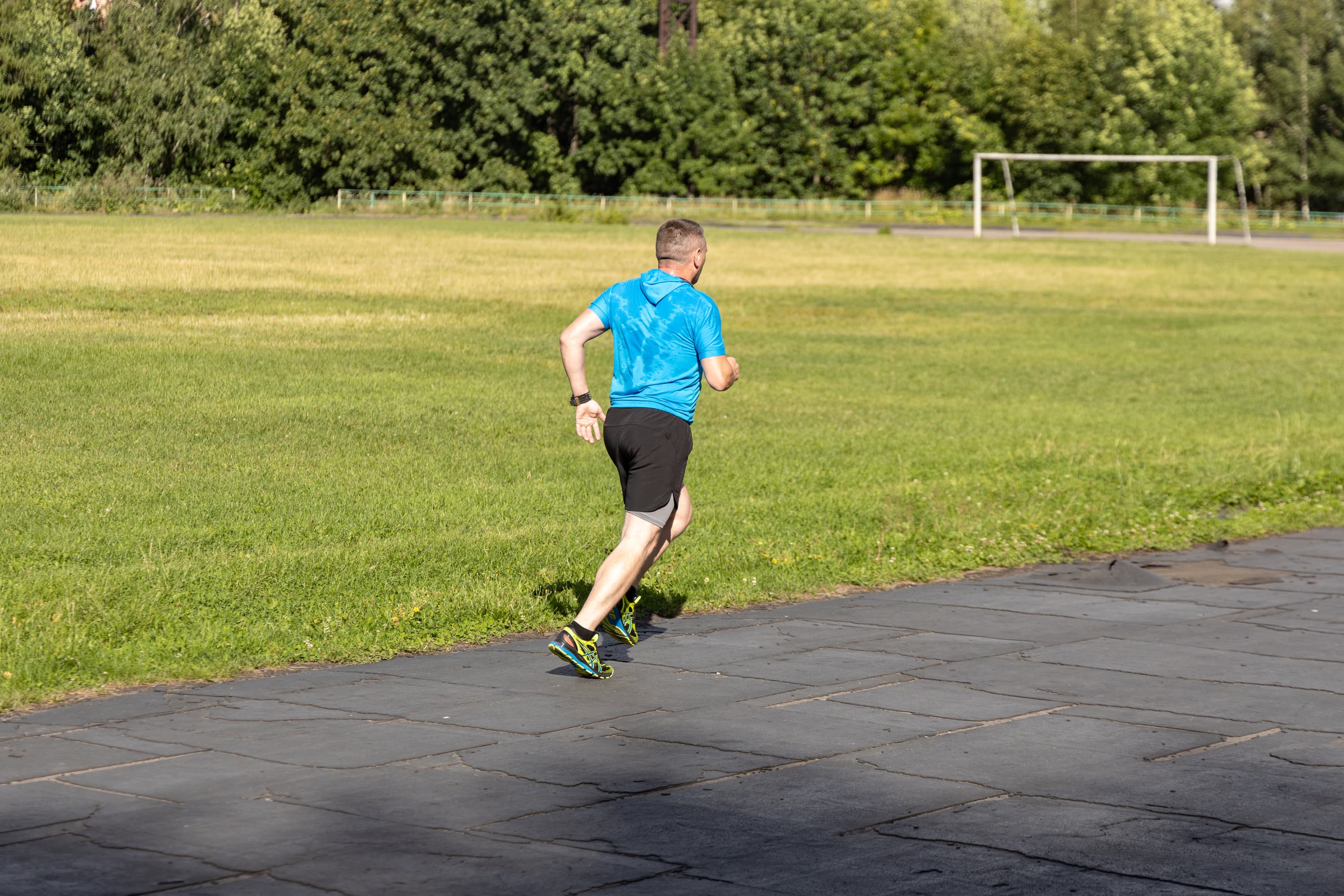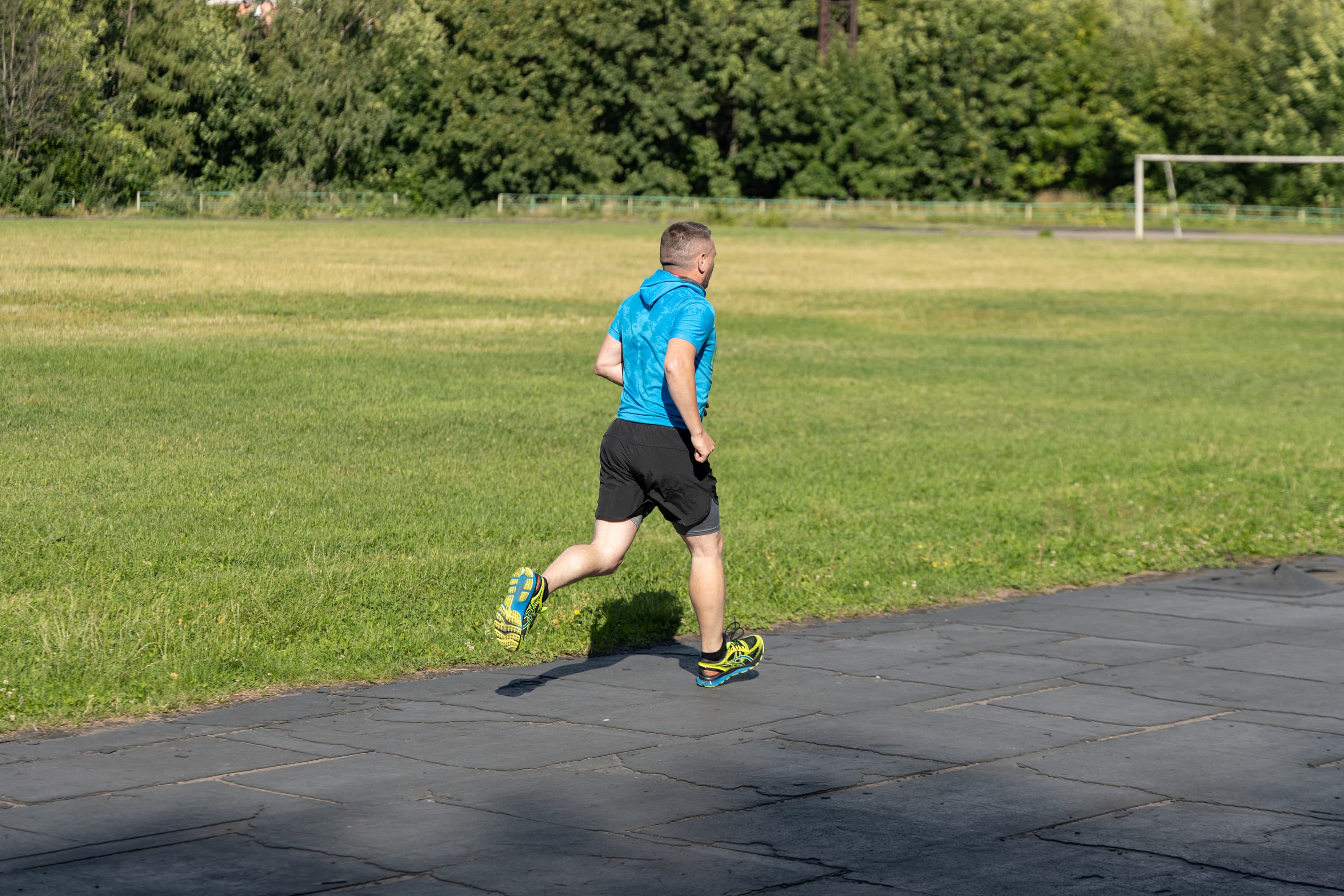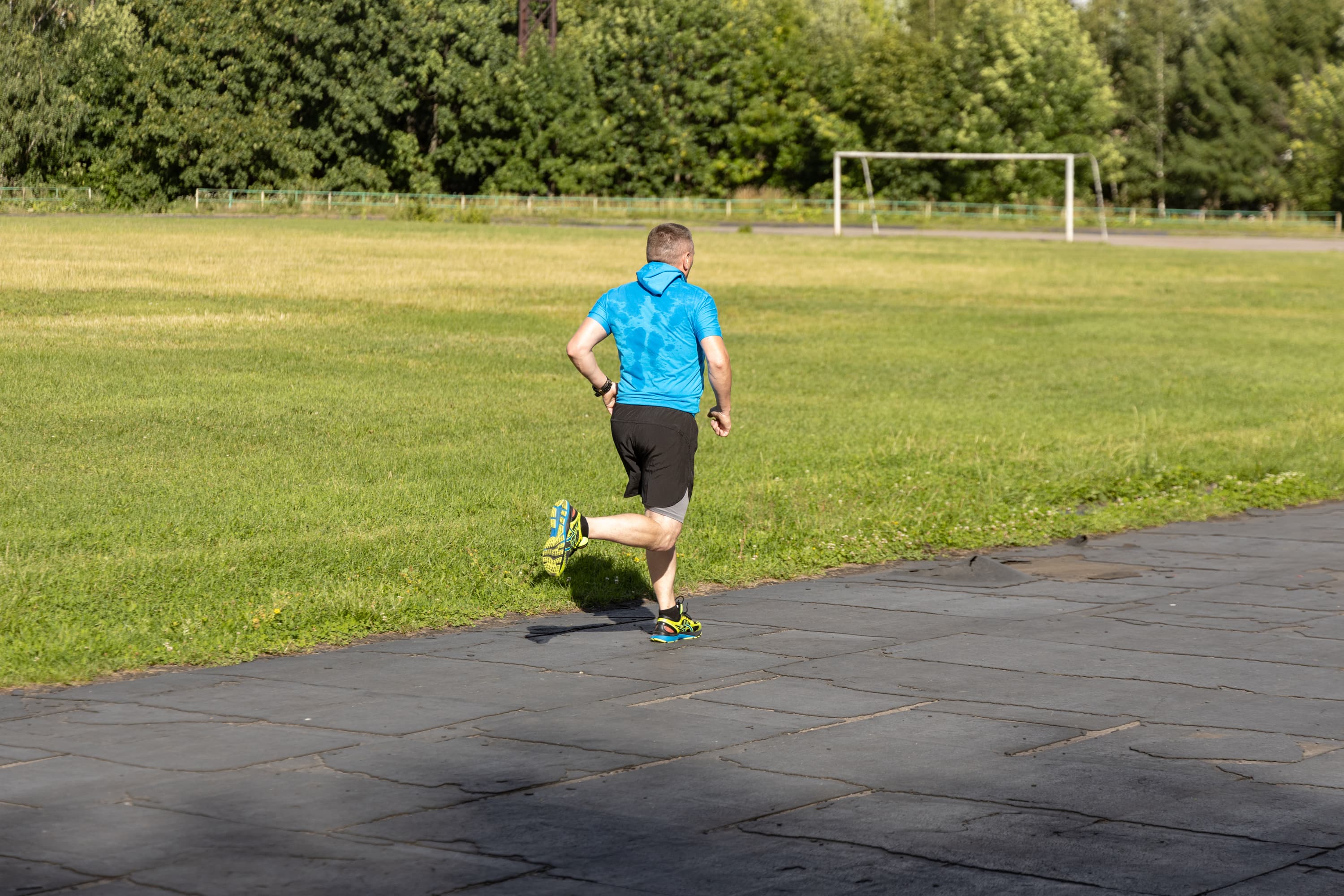 В принципе, на всех кадрах фигура бегуна в фокусе, но в трех случаях из-за близкой дистанции резкость переместилась с головы на трусы.