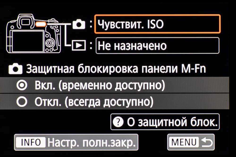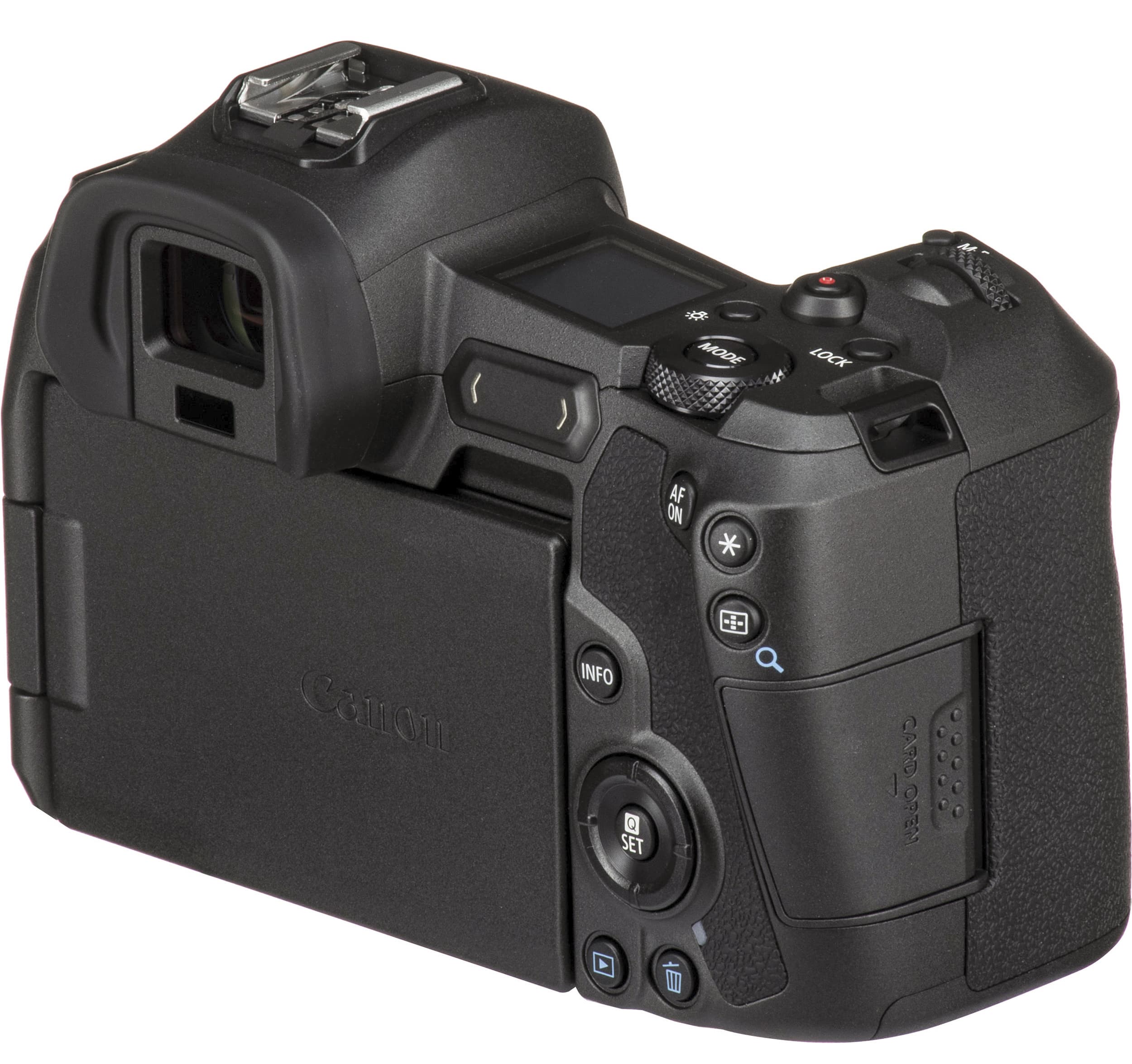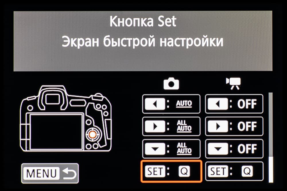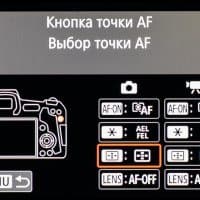 Сзади, слева от видоискателя, имеется лишь одна кнопка (вызова меню), а справа появилась так называемая «многофункциональная панель» — аналог двухпозиционной «качалки». Еще правее расположились кнопки принудительной активации автофокуса (AF On), экспопамяти (*), выбора зоны фокусировки и увеличения/уменьшения размера изображения при просмотре отснятого материала. Ниже находится кнопка Info, назначение которой изменяется в зависимости от выбранного режима работы камеры, четырехпозиционный переключатель с центральной кнопкой вызова «быстрого меню» и установки параметров (Q/Set), а под ними — кнопка просмотра отснятого материала и стирания ненужных кадров и видео.
