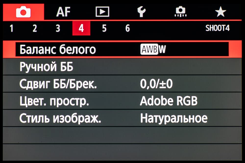 - автоматический баланс белого (АББ).