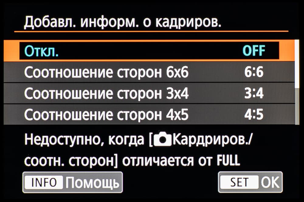 | Формат записи фотоснимков | 3:2: L, RAW, C-RAW 6720×4480, M1 4464x2976, S1 3360×2240, S2 1696×1280; 3:2 с масштабированием 1,6x: L 4176×2784, S2 2400×1600; 4:3: L 5952×4480, M1 3968×2976, S1 2976×2240, S2 2112×1600; 16:9: L 6720×3776, M1 4464×2512, S1 3360×1888, S2 2400×1344; 1:1: L 4480×4480, M1 2976×2976, S1 2240×2240, S2 1600×1600 |