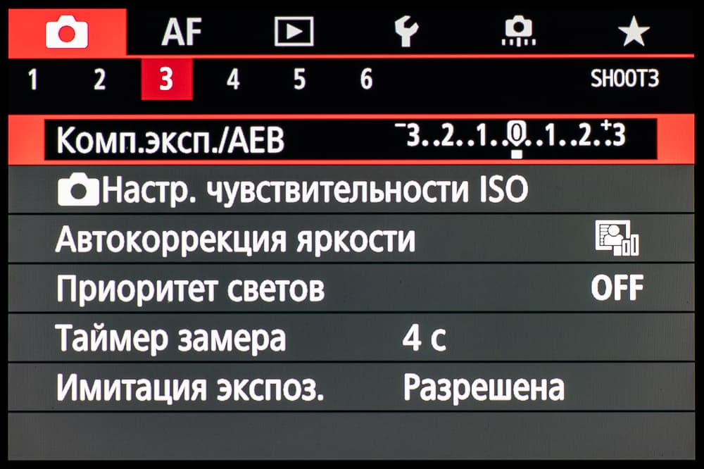 | Экспокоррекция | ±3 с шагом ⅓ или ½ | ±5 с шагом ⅓ или ½ | ±5 с шагом ⅓ | ±5 с шагом ⅓ или ½ |