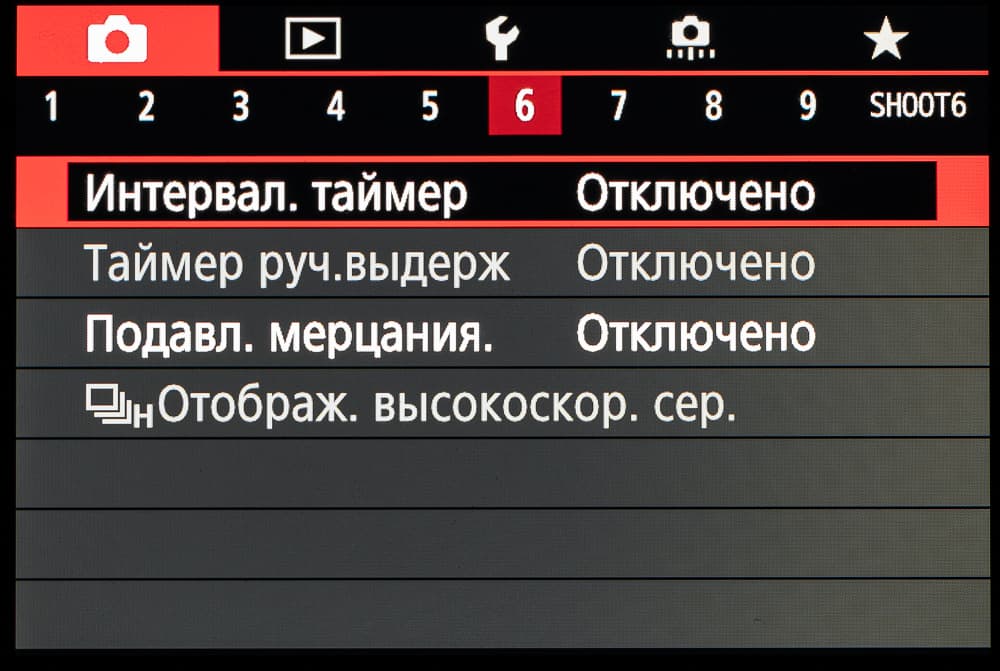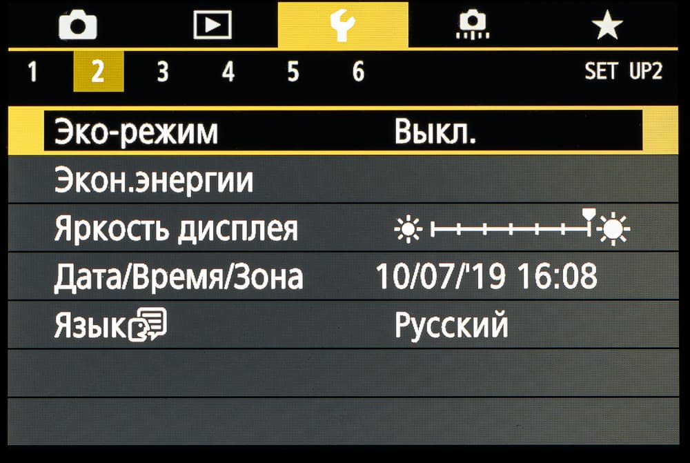 Как и всегда у Canon, меню организовано удачно, и работа с ним не требует долгого освоения. Мы не станем подробно рассматривать все закладки и пункты, а просто приведем максимальное количество скриншотов, которые помогут составить представление о меню.