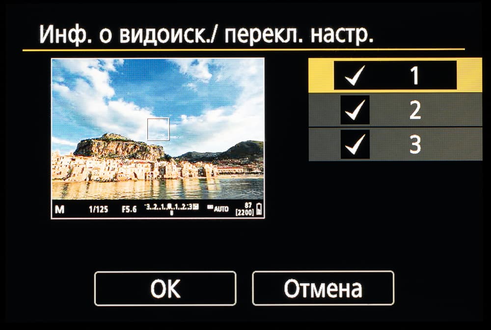 Меню быстрого доступа активируется нажатием кнопки Q/Set в центре многопозиционного переключателя на задней панели аппарата. Это весьма удобный способ установить все нужные параметры с минимальной задержкой при съемке.