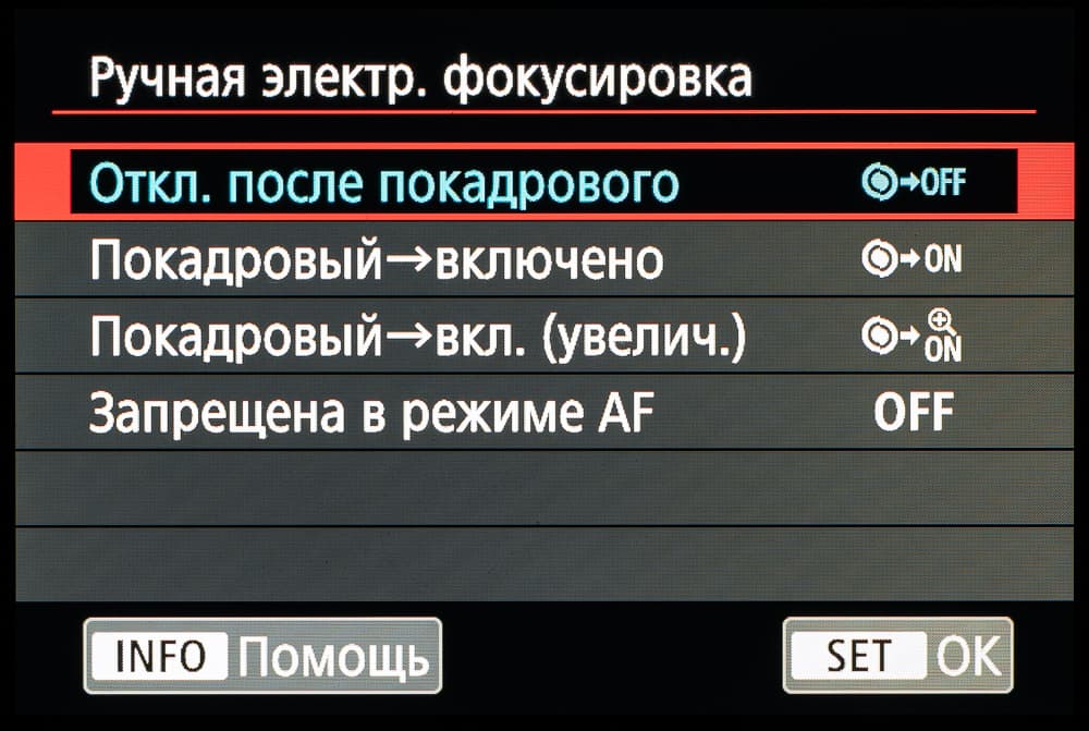 - однокадровая или следящая автоматическая фокусировка (в зависимости от динамики сцены),