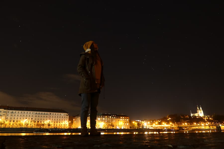 Режим «Портрет на фоне звездного неба» работает интересно. Правда, без вспышки повышается вероятность смаза и возникает замыливание фигуры человека, а со вспышкой вокруг нее появляется неестественная кайма.