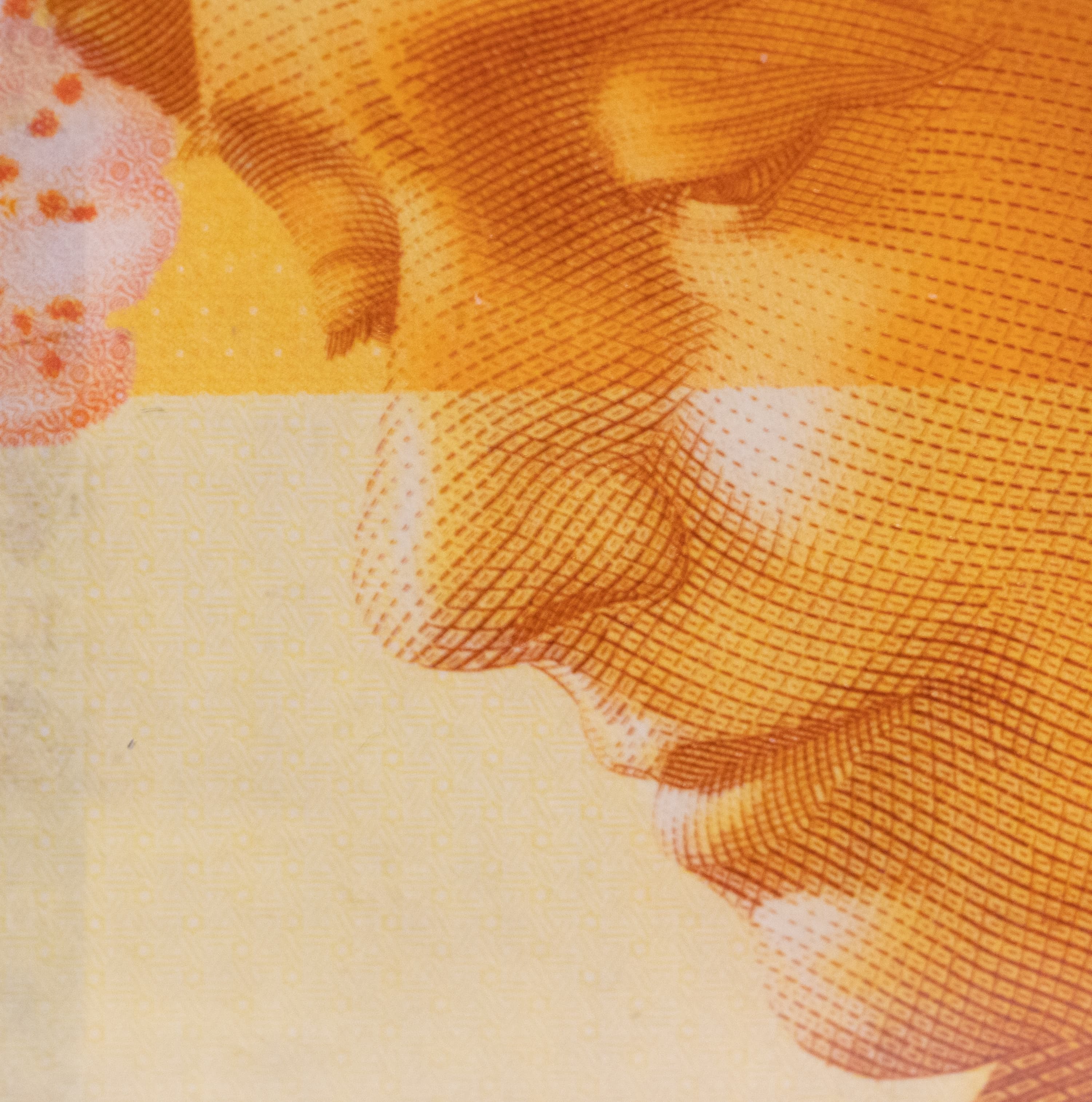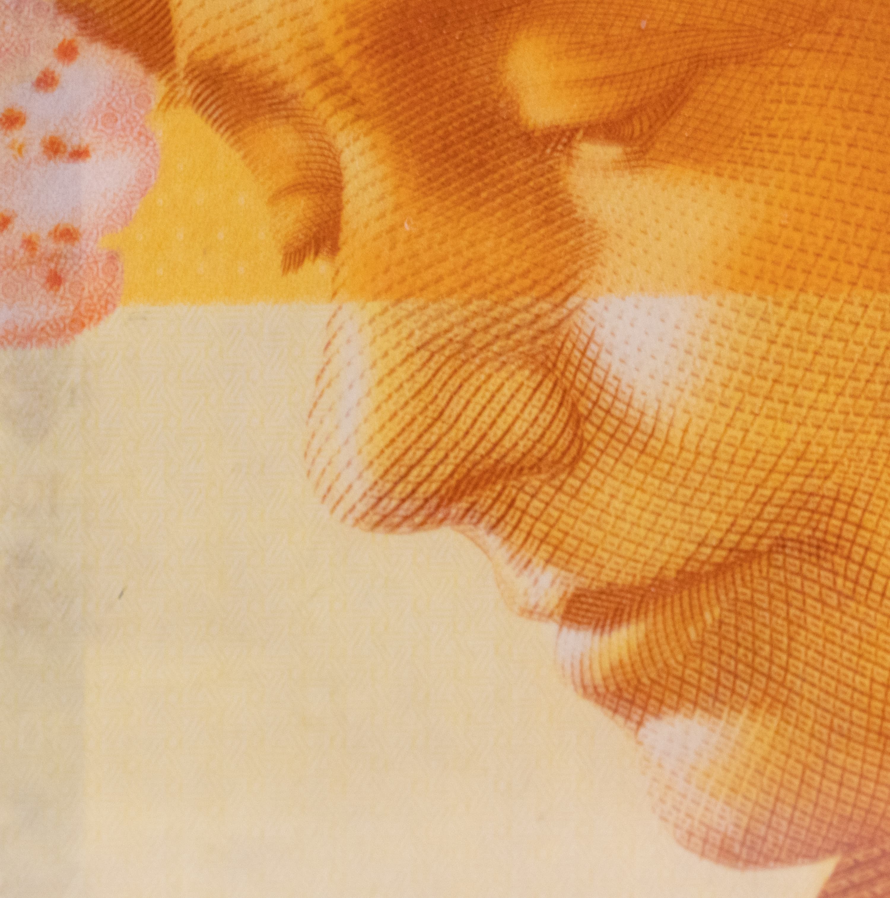 Производитель обещает эффективность стабилизации в 5 ступеней. Мы решили проверить, насколько эффективна оптическая стабилизация у Canon RF 85mm f/2 Macro IS STM на макродистанции, поскольку это качество представляется нам наиболее важным. Съемка банкноты проводилась при ISO 800 в режиме приоритета выдержки (Tv). Мы начинали с 1/80 с и увеличивали длительность экспозиции вдвое от кадра к кадру. Из-за естественного движения рук, держащих камеру, изображение смещалось внутри поля зрения. Поэтому мы решили обрезать фото, чтобы точнее ориентировать снимаемый рисунок.