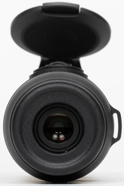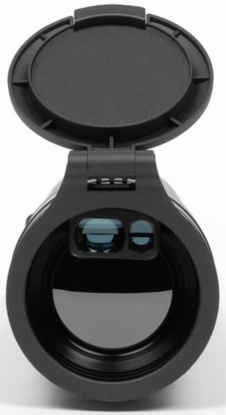 Объектив защищен подпружиненной откидывающейся крышкой, которая в закрытом состоянии фиксируется защелкой. В верхней части объектива расположен блок лазерного дальномера Aquila LIIR, он состоит из двух отдельных узлов — излучателя лазера и детектора отраженного лазерного луча.