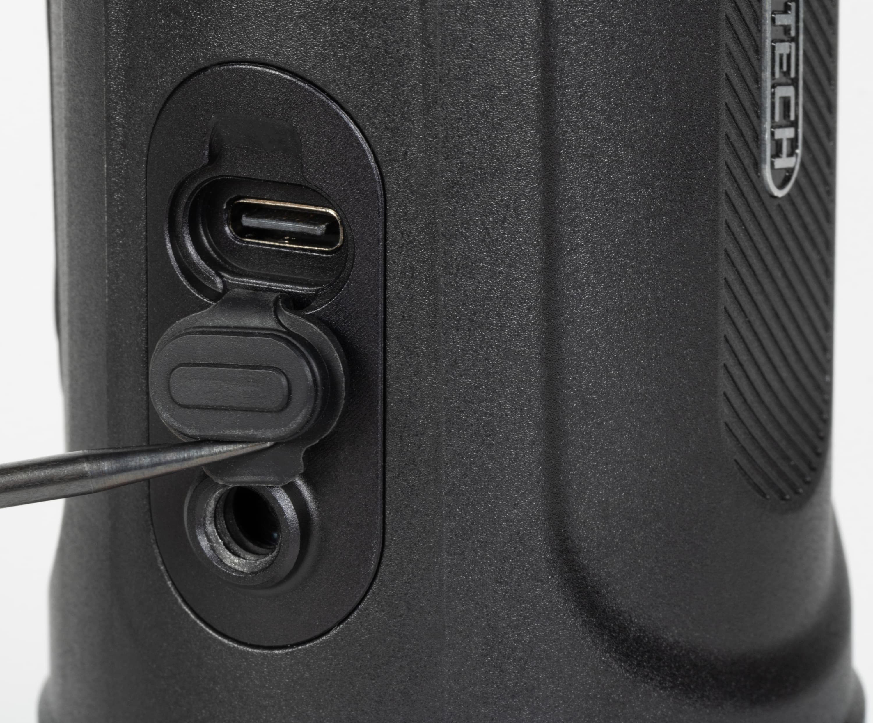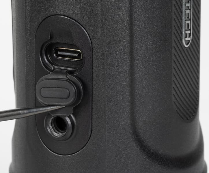 Зарядка встроенного и запасного аккумуляторов производится через разъем USB Type-C, который прикрыт резиновой заглушкой. Рядом находится резьбовое отверстие для установки прибора на штатив — крайне полезный узел, который пригодится в наблюдении, тем более в длительном.