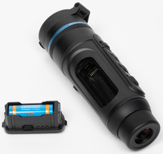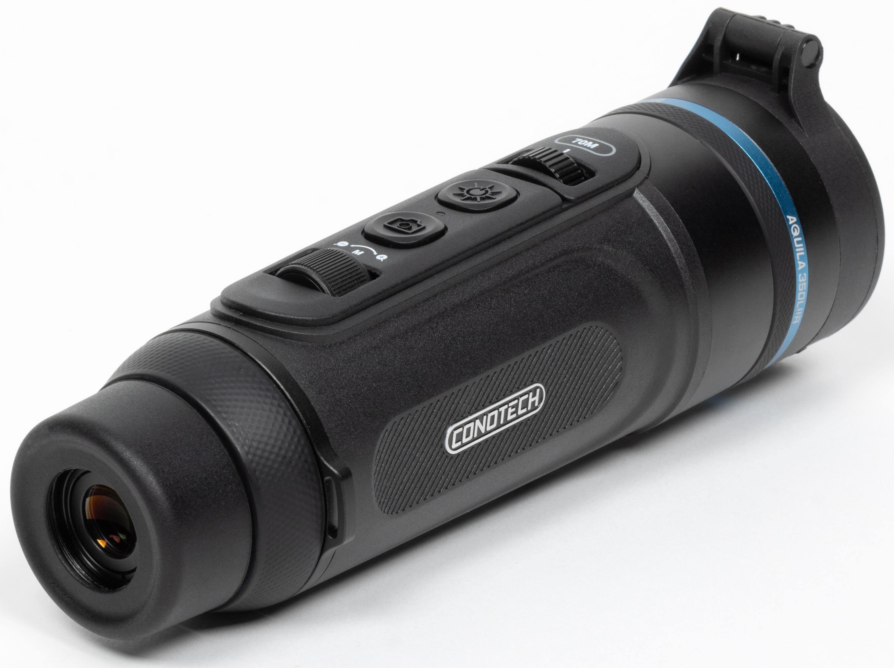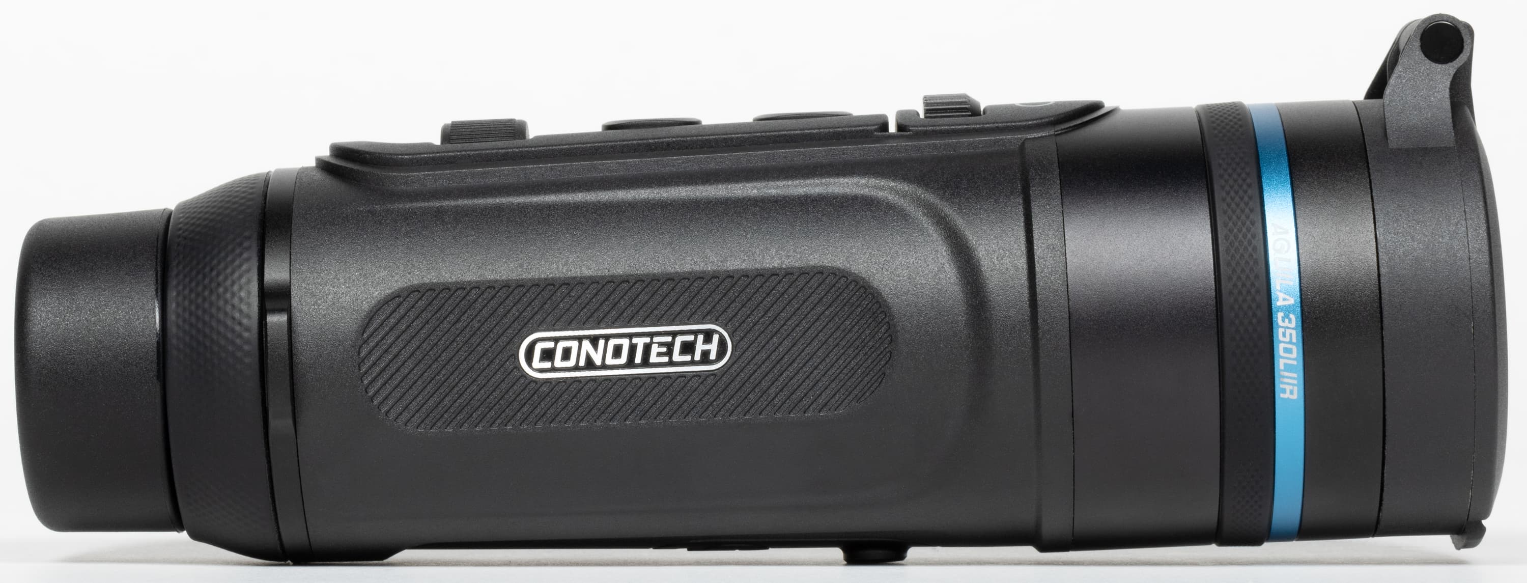 При эксплуатации ConoTech Aquila 350LIIR отмечаешь его безусловную компактность, прибор легко умещается в карман куртки, хотя вес устройства скромным не назовешь. Устойчивая к повреждениям поверхность корпуса и влагонепроницаемая конструкция позволяют эксплуатировать тепловизор в любых погодных условиях, включая дождь или низкие температуры. Прочие преимущества тепловизора не менее очевидны: