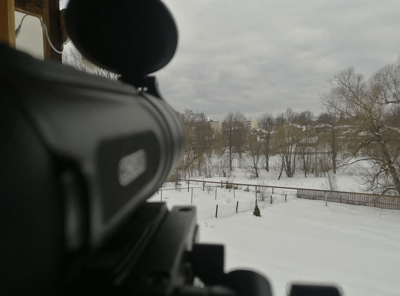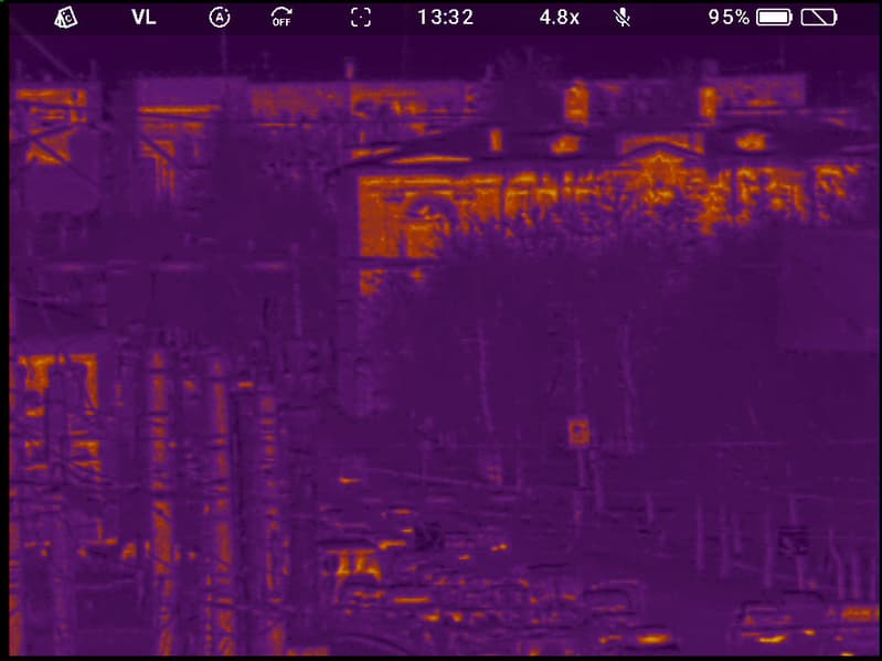 Если к работе штатива вопросов нет (а их нет), то в отношении зума тепловизора некоторые заявления все же имеются. А именно: на максимальном зуме в картинке заметны артефакты, характерные для цифрового увеличения. То есть оптический зум в тепловизоре наверняка имеется, но вот о его 20-кратности говорить вряд ли стоит. Складывается ощущение, что при изменении фокусного расстояния после некоего порога включается обычный цифровой зум, который банально апскейлит картинку.