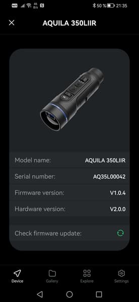Впрочем, важная системная функция в мобильном приложении все же имеется. Речь про обновление прошивки тепловизора. Процесс обновления организован достаточно умно, вам не потребуется переключаться с одной сети на другую, чтобы закачать прошивку с сервера и затем передать ее в память тепловизора. Программа всё сделает сама, что помогает избежать путаницы.
