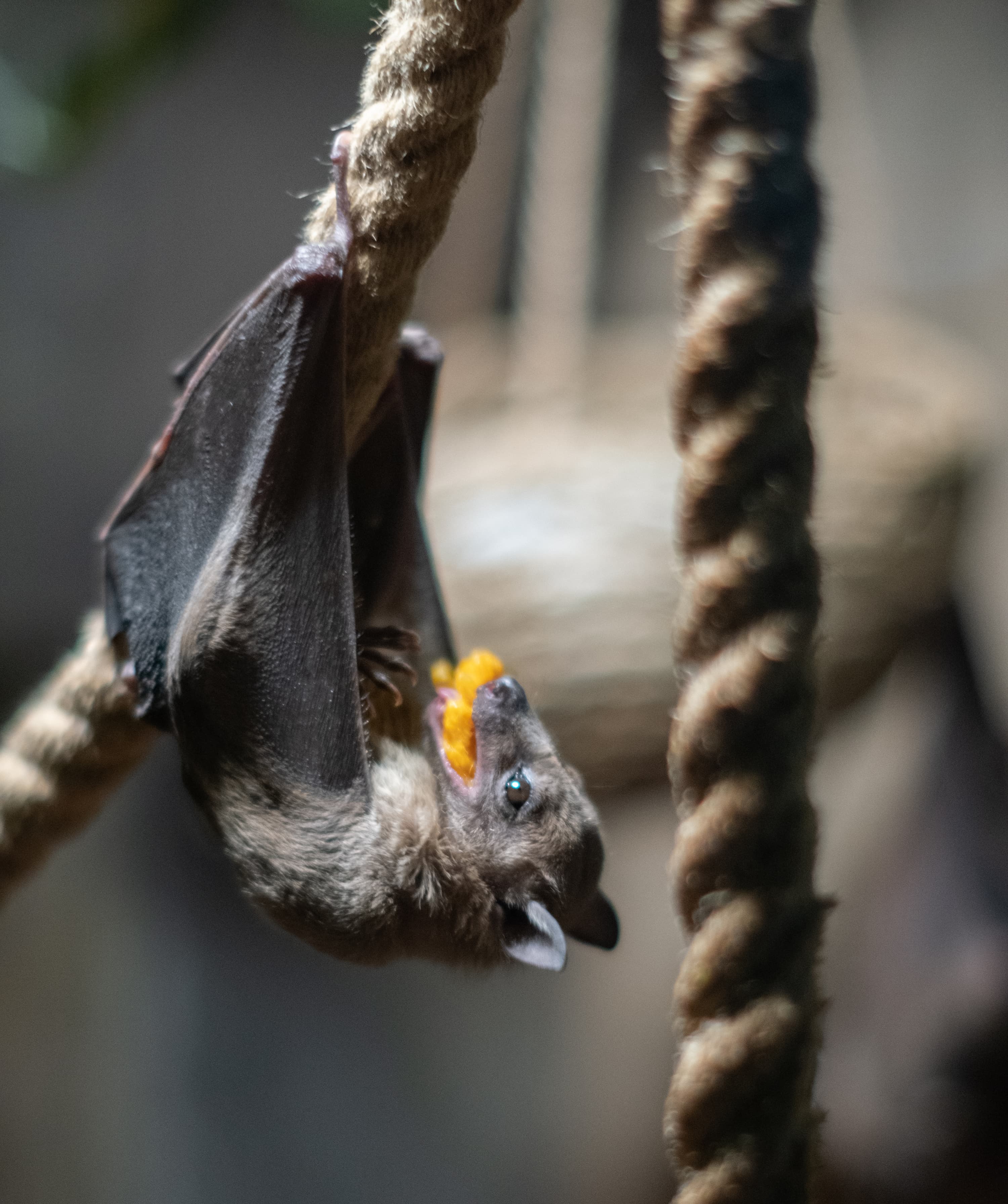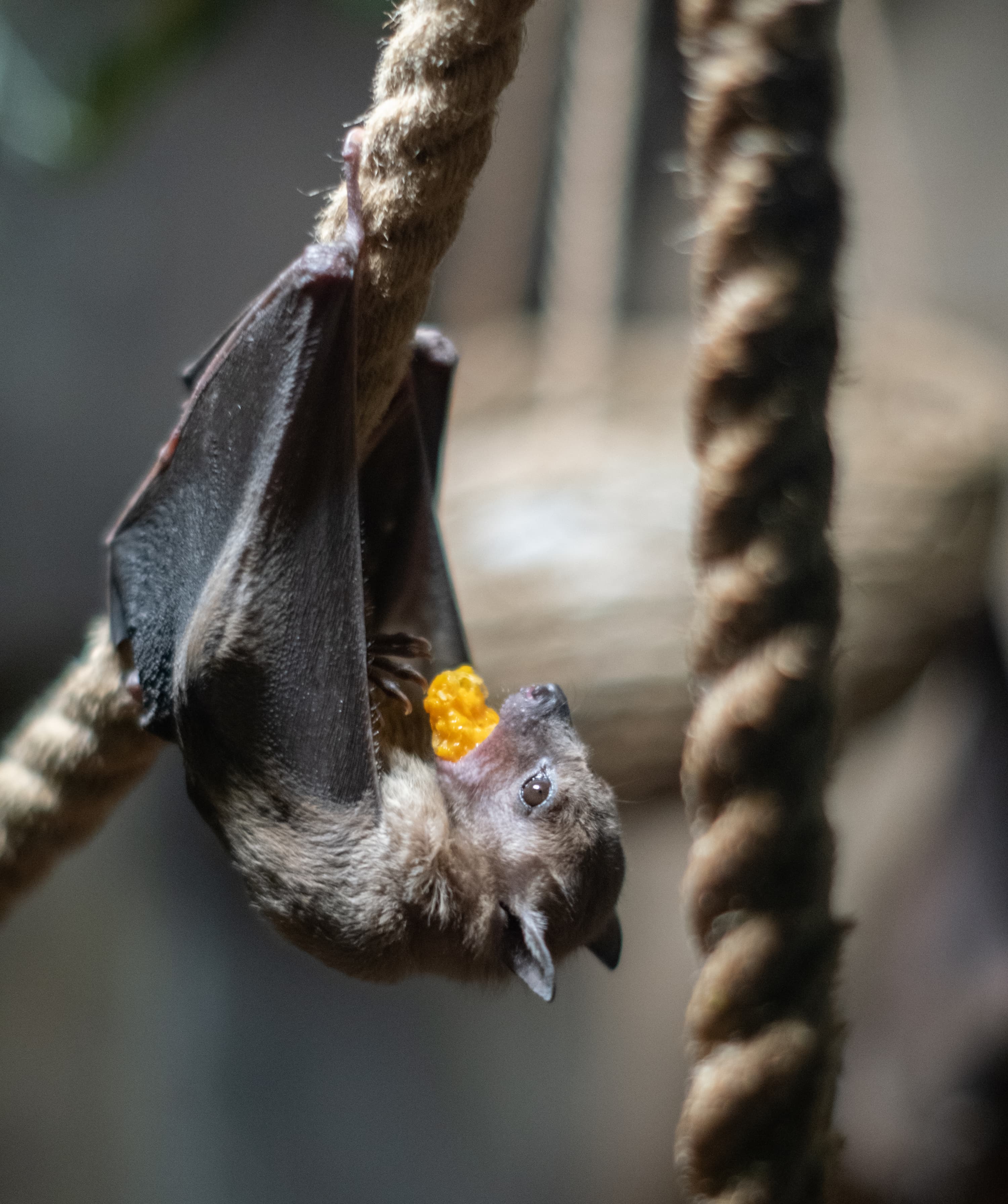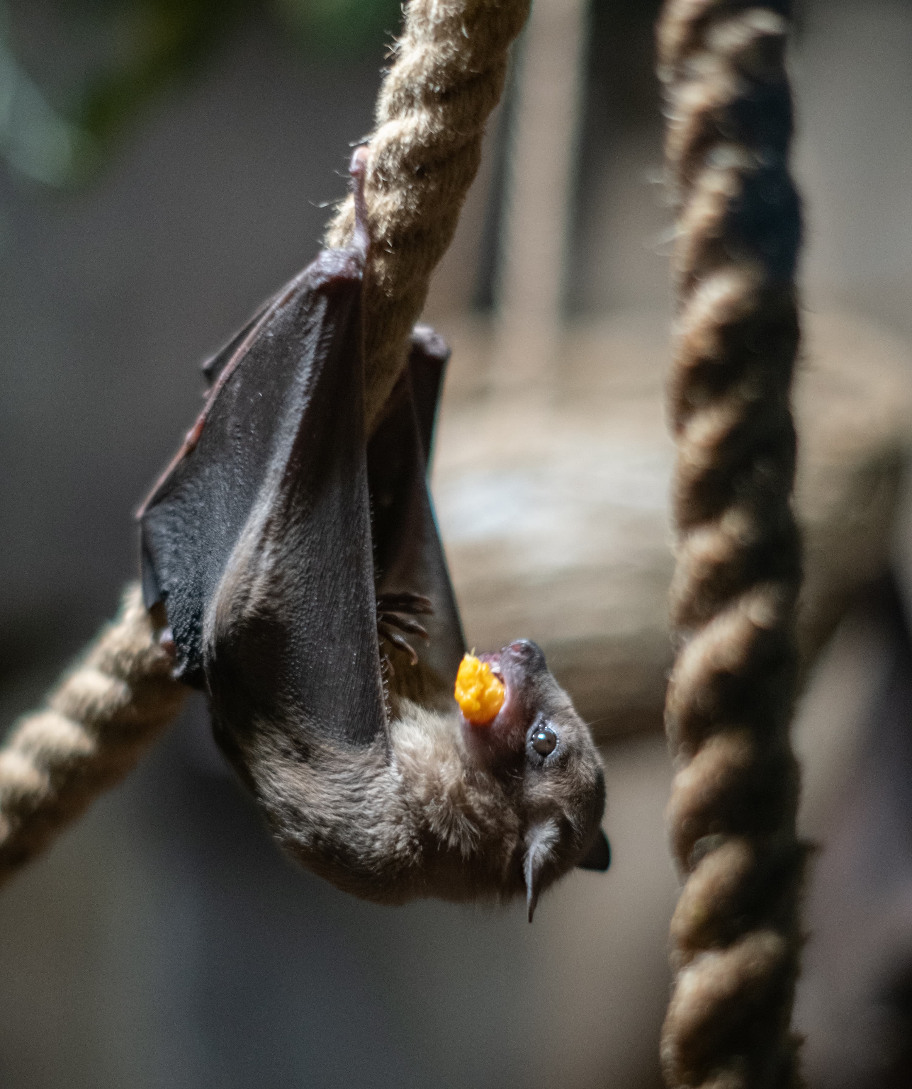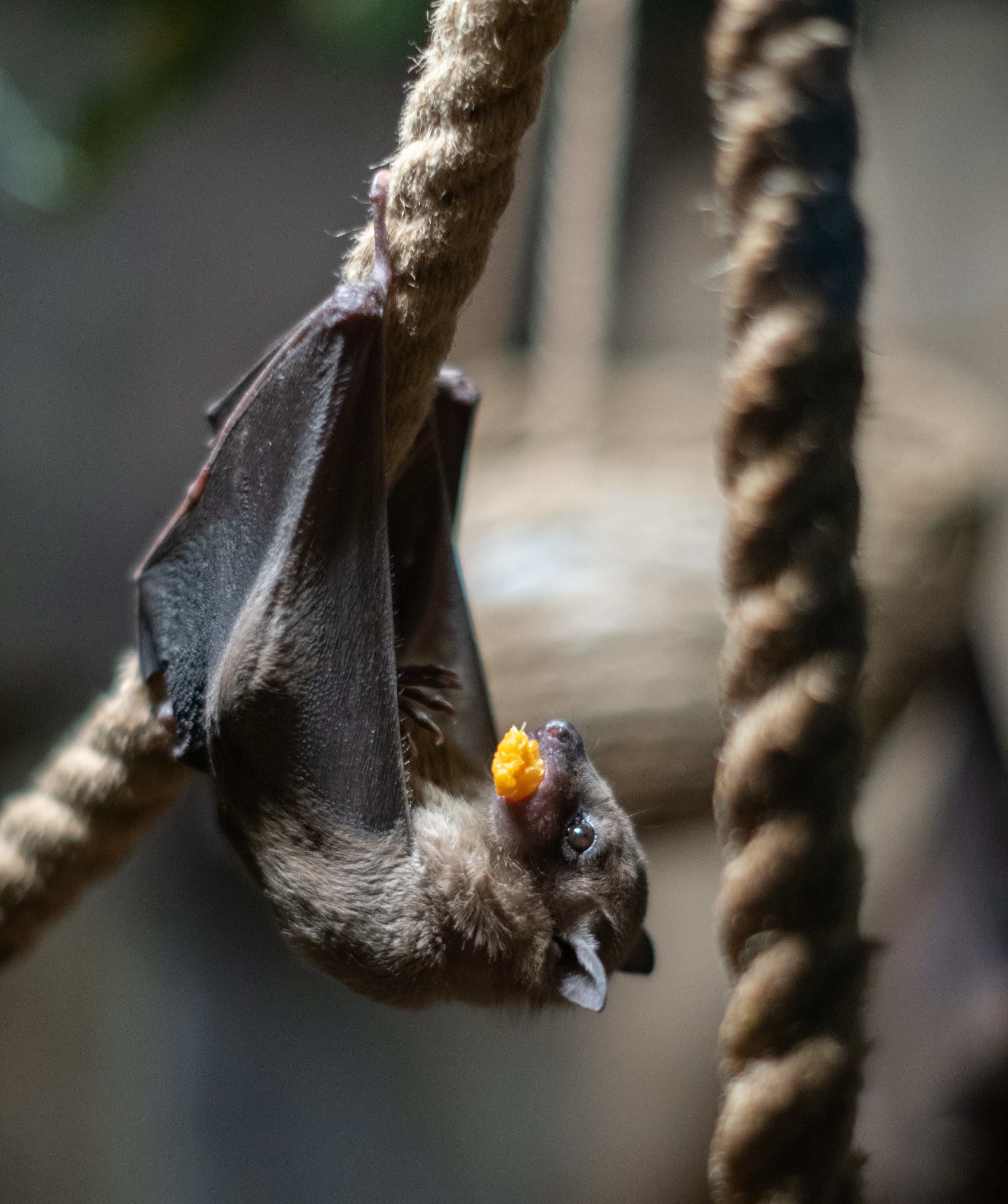 Теперь обратимся к результатам серийной съемки фото. Первая серия с кормящейся египетской летучей собакой снималась с использованием объектива Canon EF 50mm F1.2L USM в довольно сложных условиях освещения (эти животные не любят яркий свет) при F1,4; 1/75 c; ISO 1250.