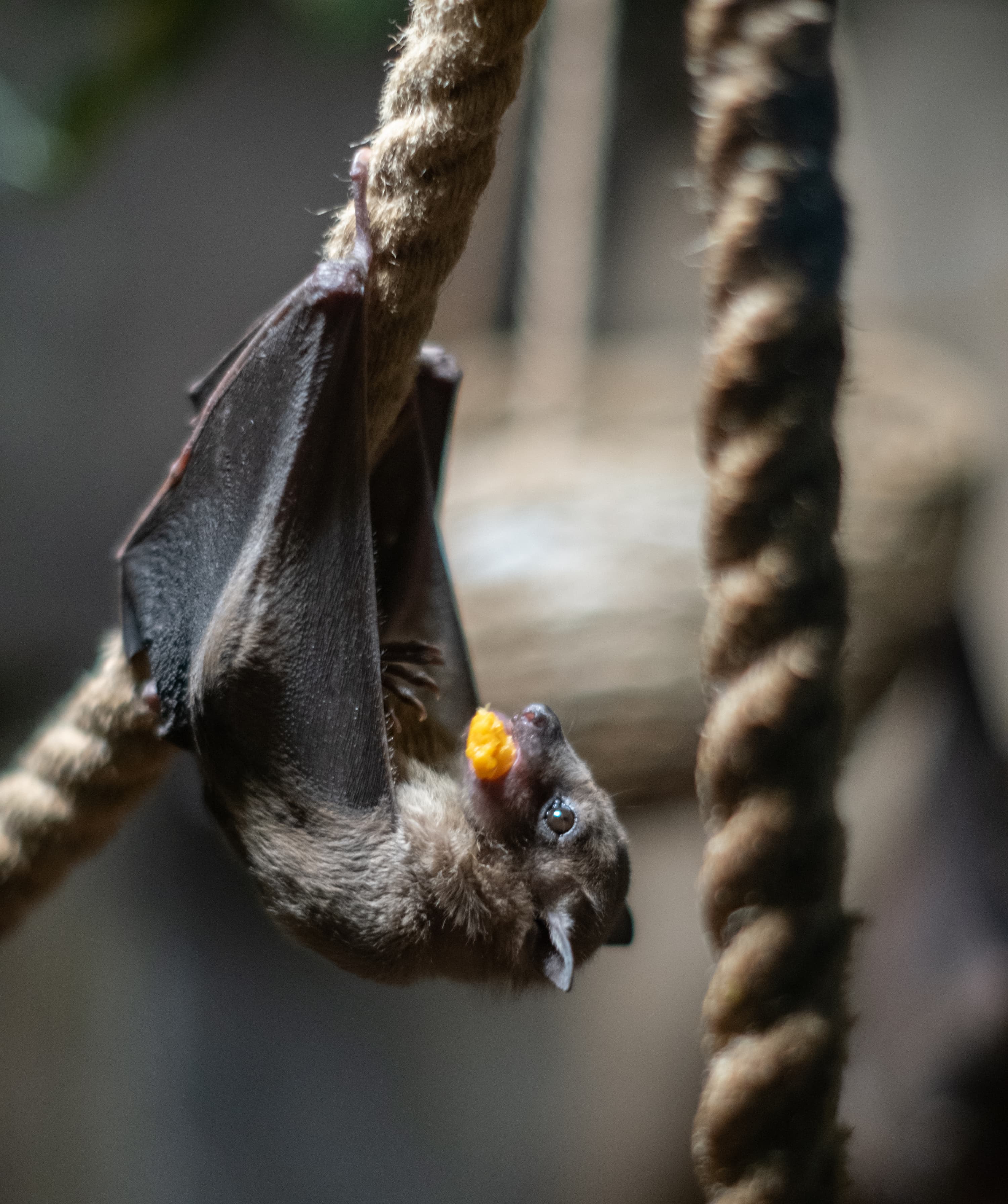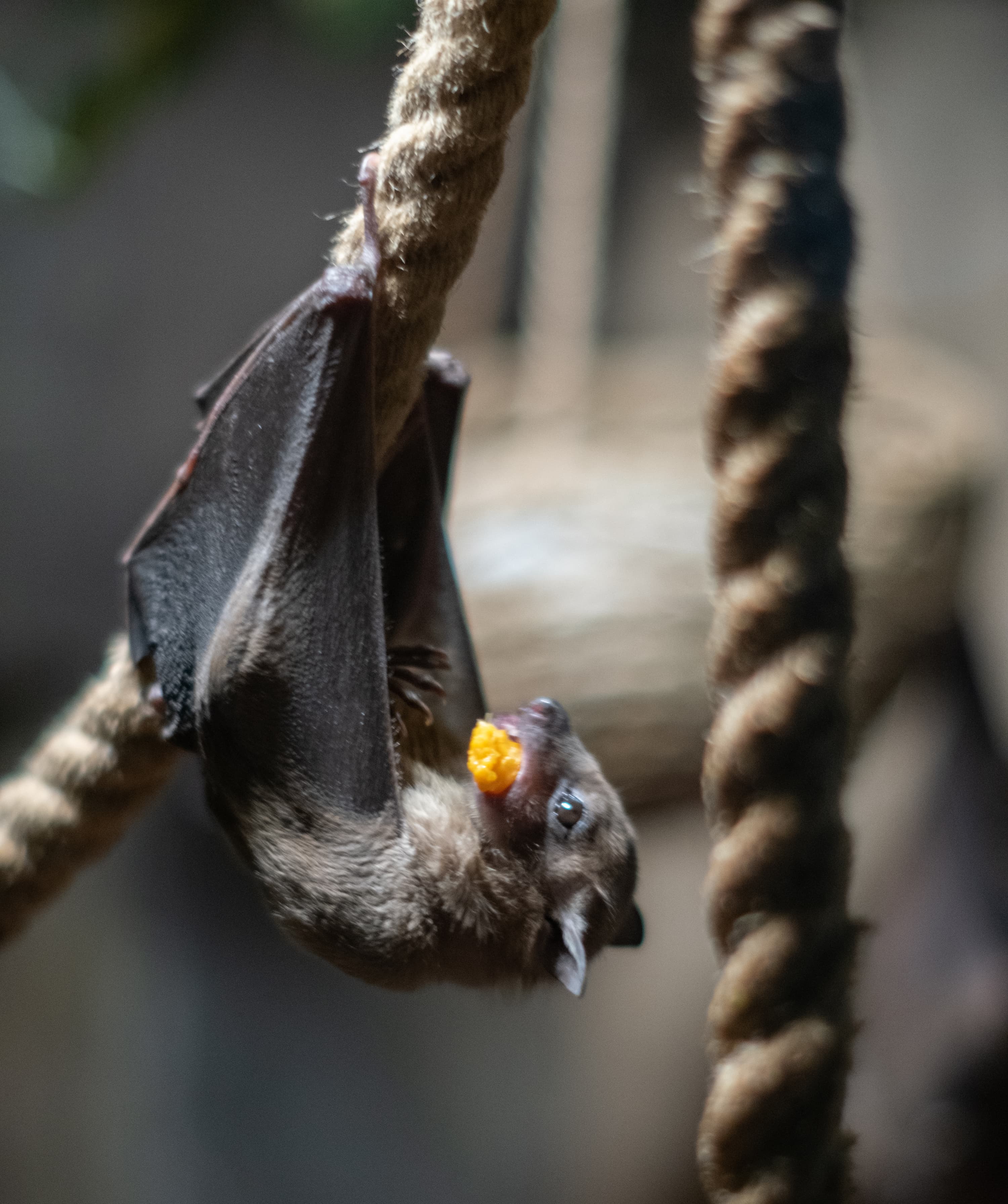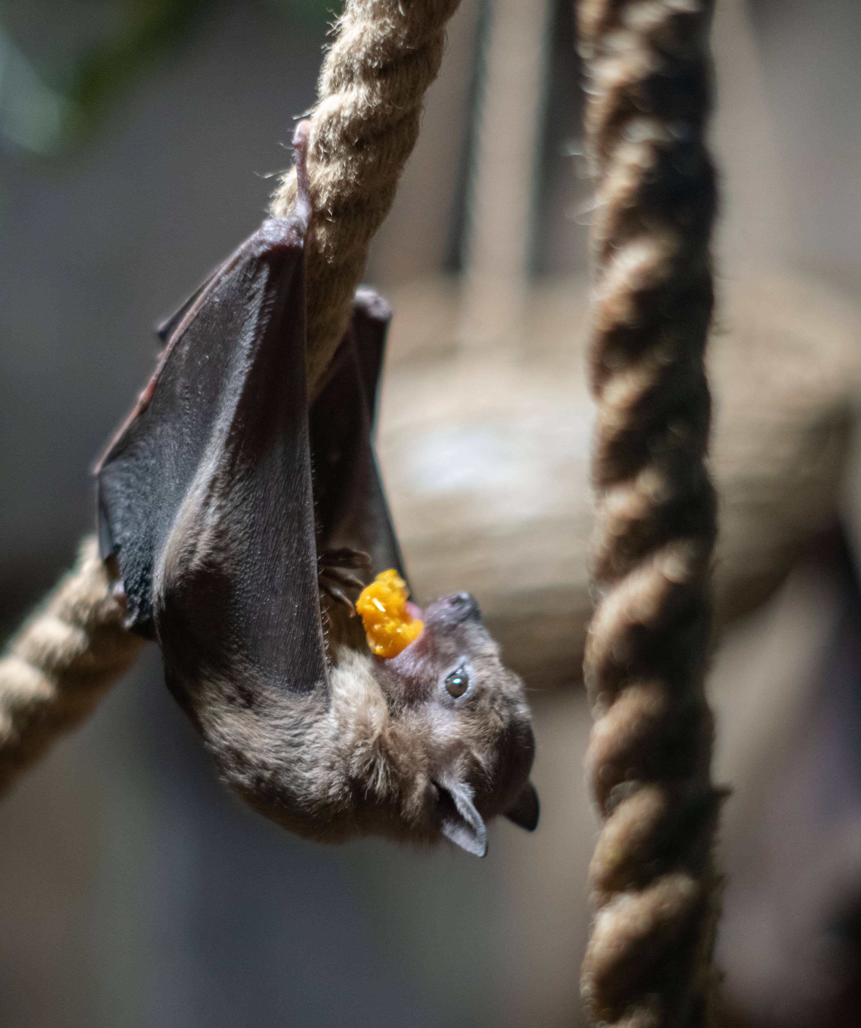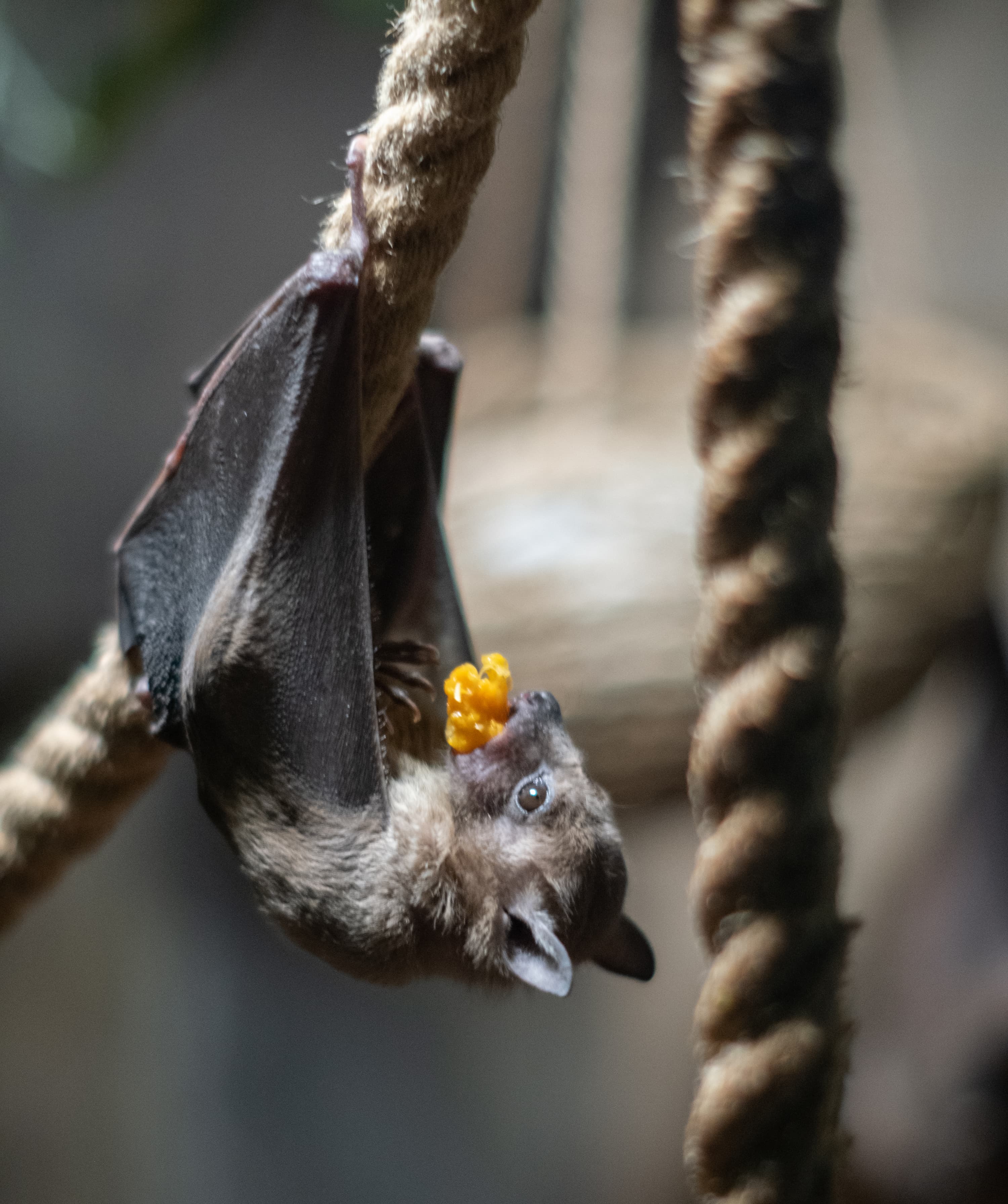 Теперь обратимся к результатам серийной съемки фото. Первая серия с кормящейся египетской летучей собакой снималась с использованием объектива Canon EF 50mm F1.2L USM в довольно сложных условиях освещения (эти животные не любят яркий свет) при F1,4; 1/75 c; ISO 1250.