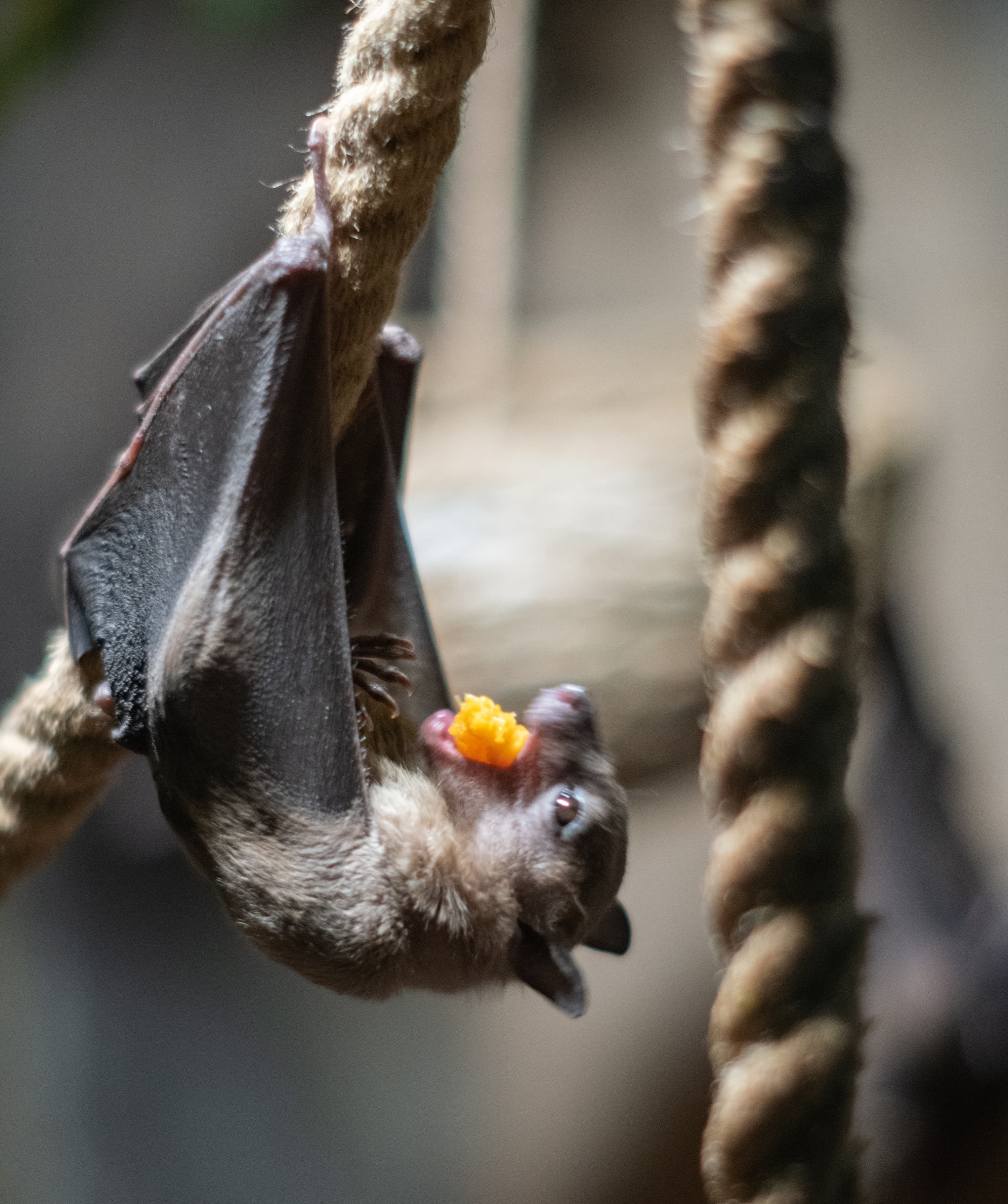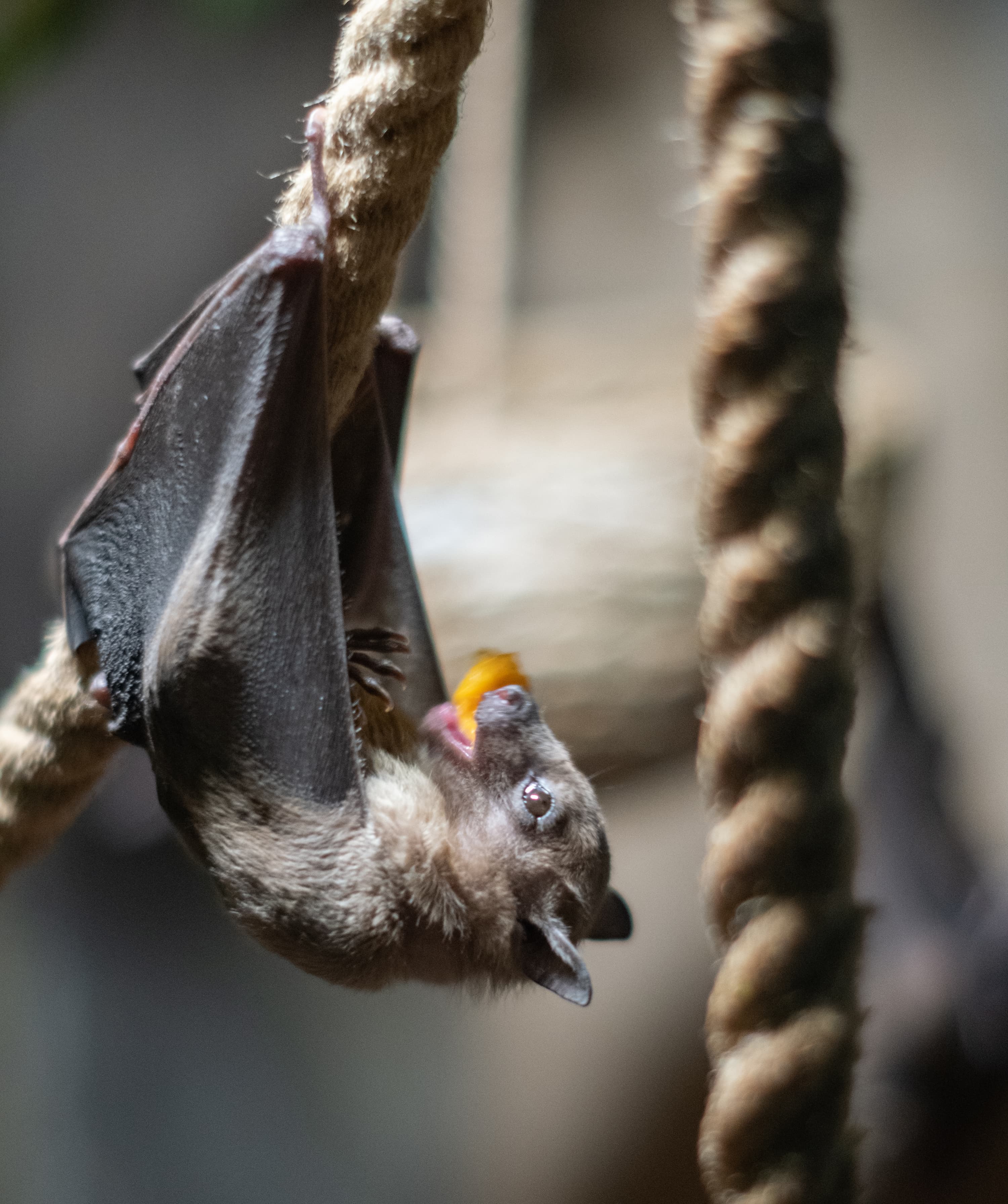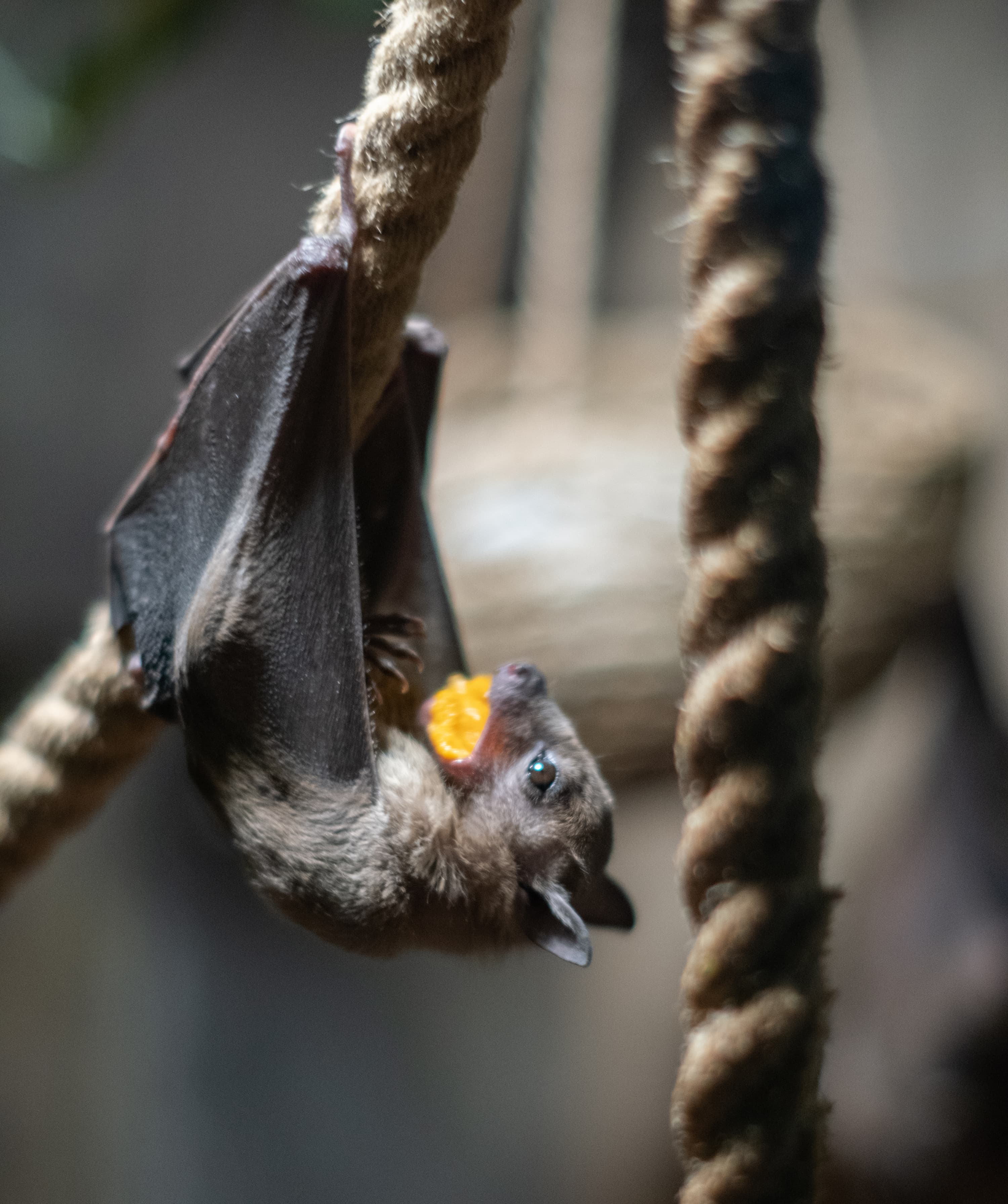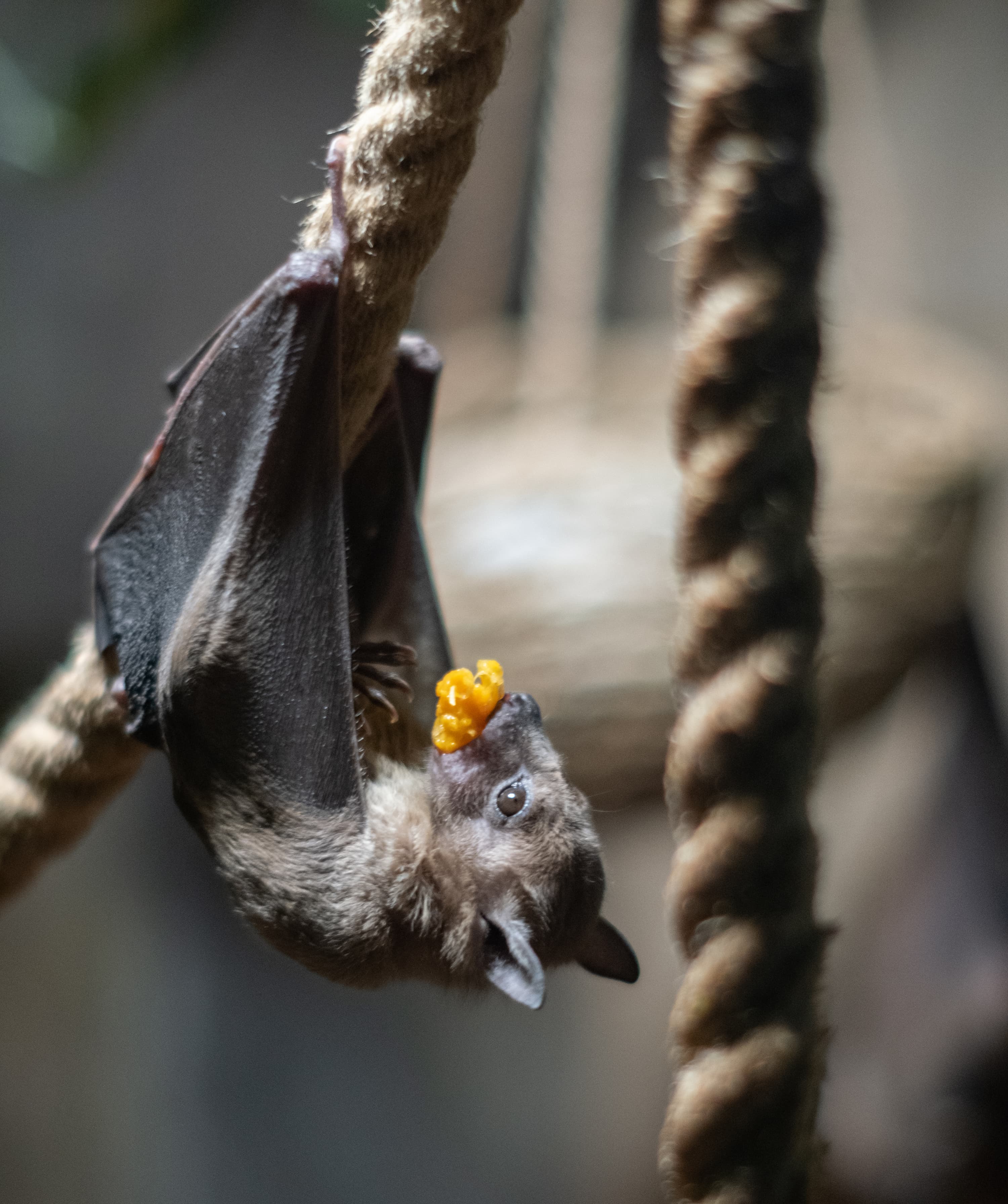 Теперь обратимся к результатам серийной съемки фото. Первая серия с кормящейся египетской летучей собакой снималась с использованием объектива Canon EF 50mm F1.2L USM в довольно сложных условиях освещения (эти животные не любят яркий свет) при F1,4; 1/75 c; ISO 1250.
