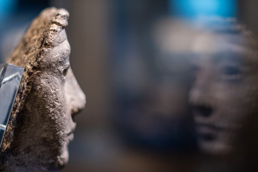 На снимке выше видны зеленые ХА на нерезком контуре скульптурного лица слева.