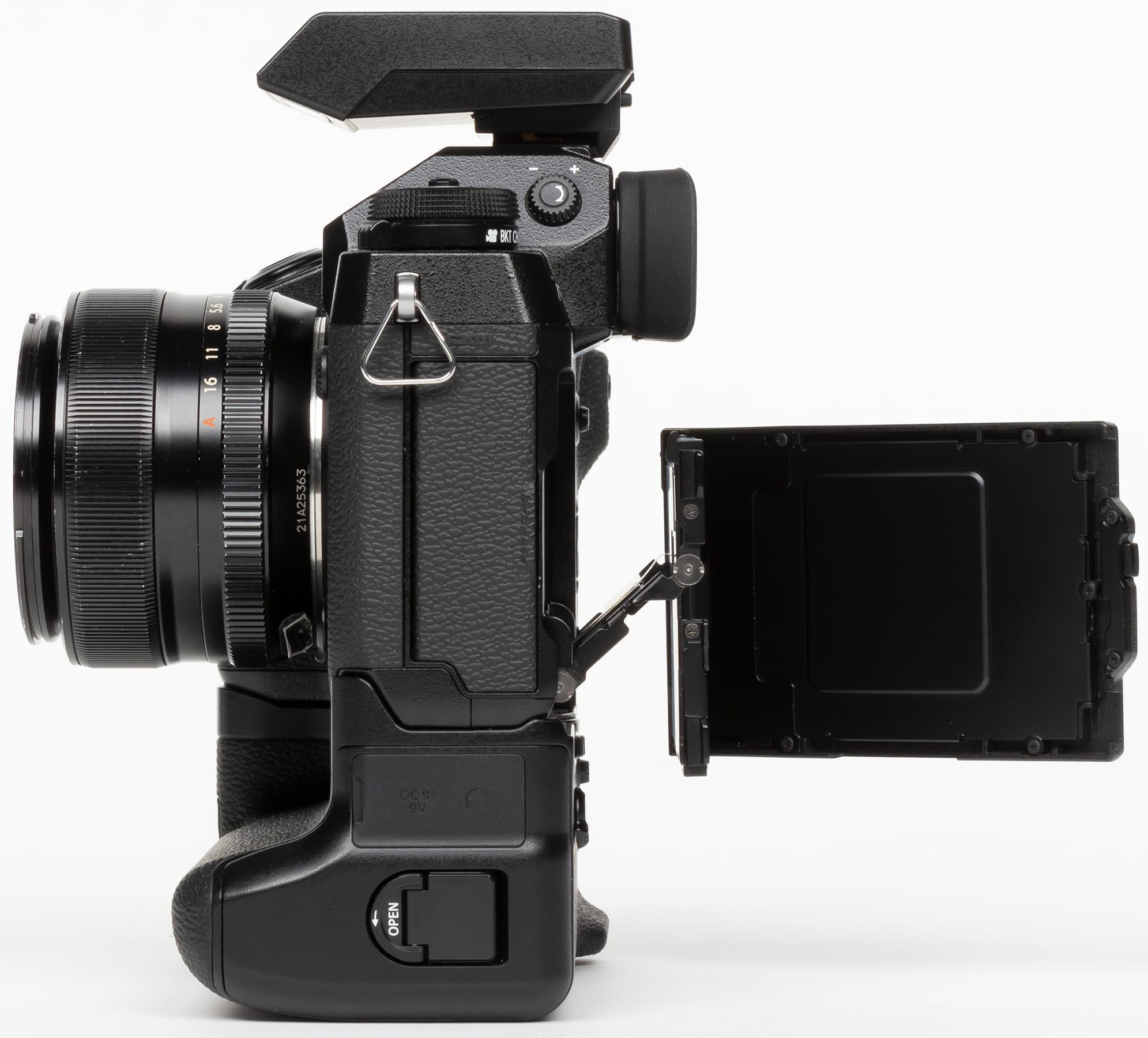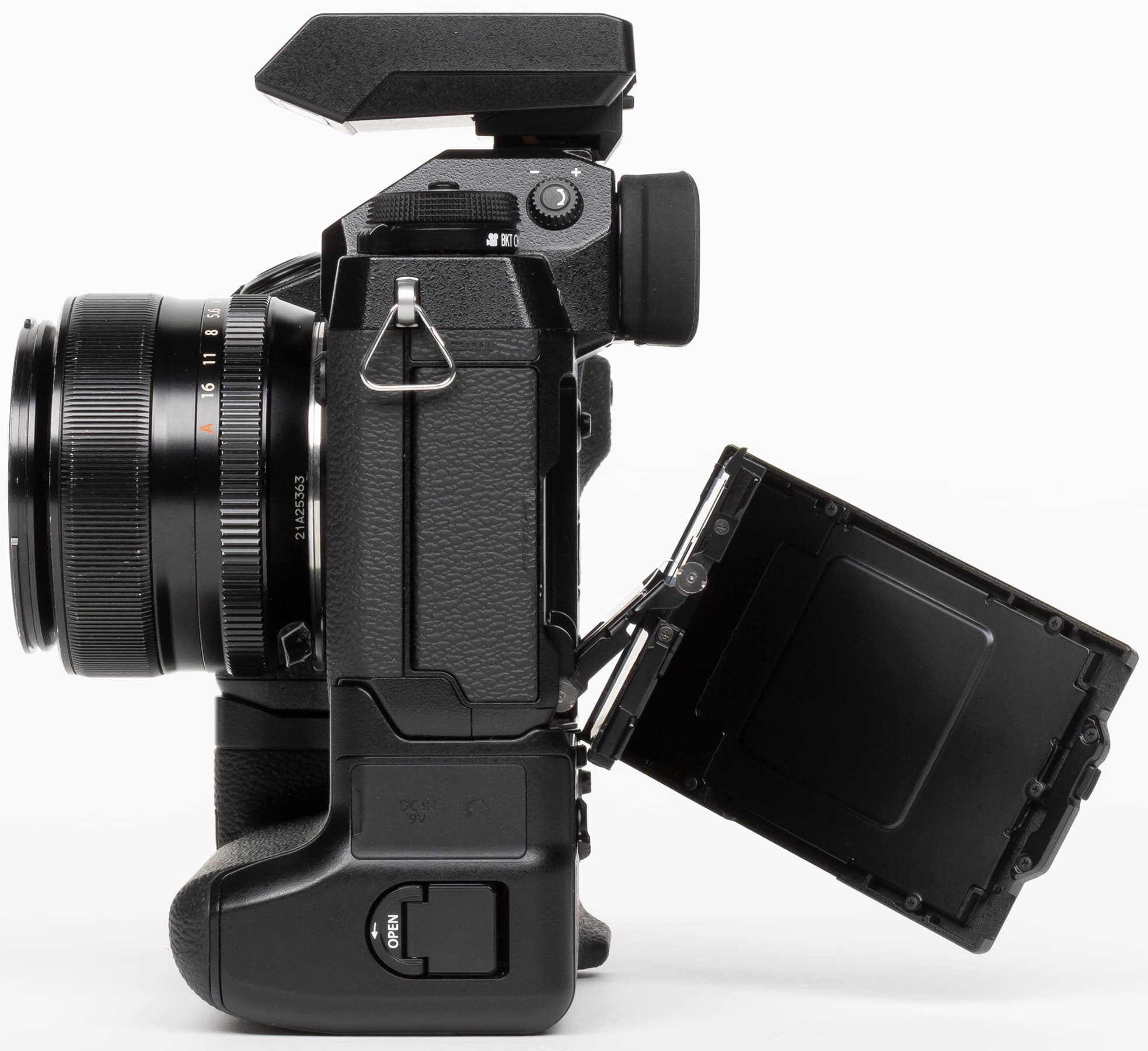 Сохранив удачные приобретения предшествующих моделей, новинка обзавелась многими новыми деталями, улучшающими эргономику и функциональность. Внешне конструкция камеры отчасти унаследовала приобретения беззеркальной среднеформатной Fujifilm GFX-50S: на верхней панели появился дополнительный информационный дисплей, подобный тому, который используется в профессиональных цифровых зеркальных камерах, а главный экран приобрел значительно большую подвижность и чувствительность к прикосновениям.