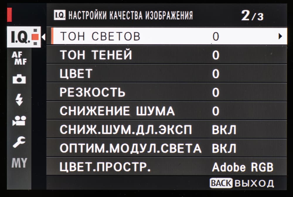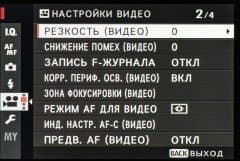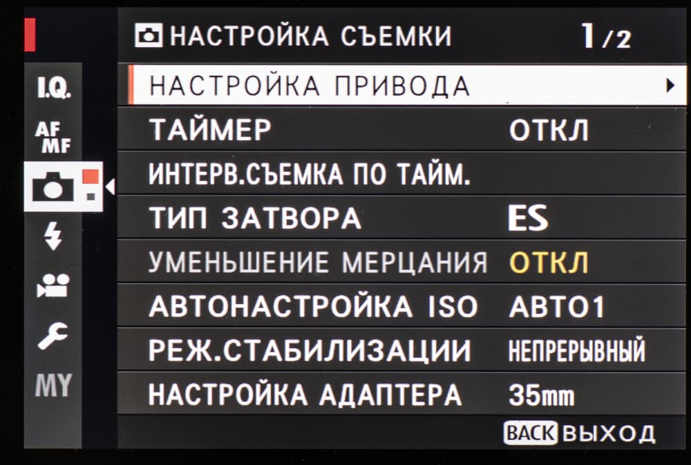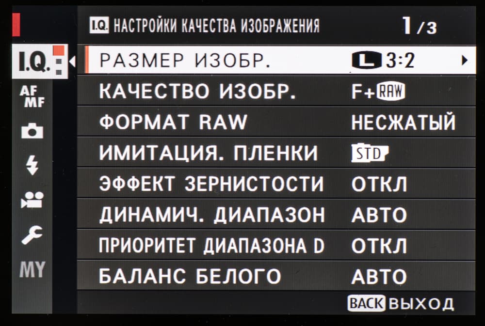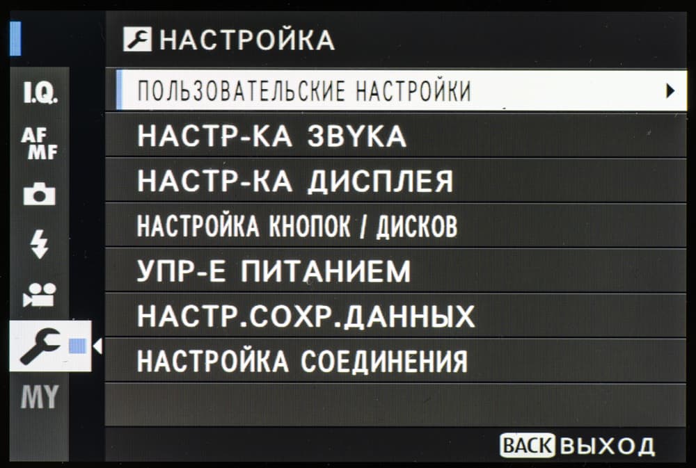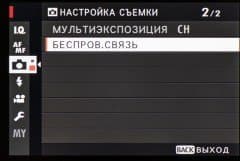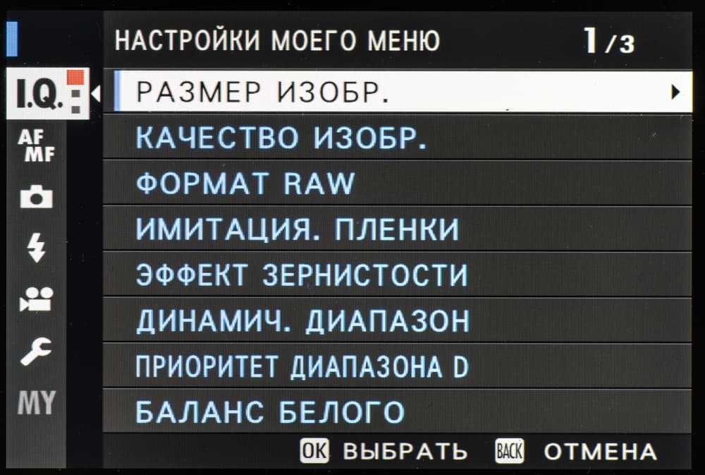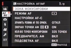 Меню, как всегда у Fujifilm, очень подробное, разветвленное, с большим набором опций и возможностями установки самых разных параметров. Здесь мы не можем осветить все особенности даже в двух словах, поэтому покажем просто набор скриншотов, которые позволяют составить общее впечатление о его организации. Желающим выяснить все подробно предлагаем ознакомиться с руководством пользователя (английская версия).