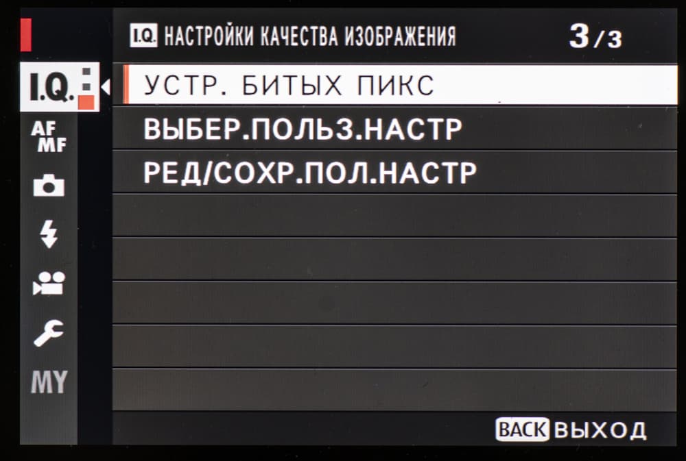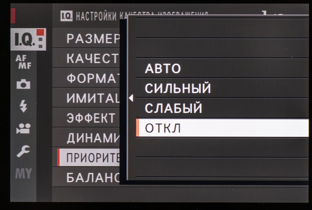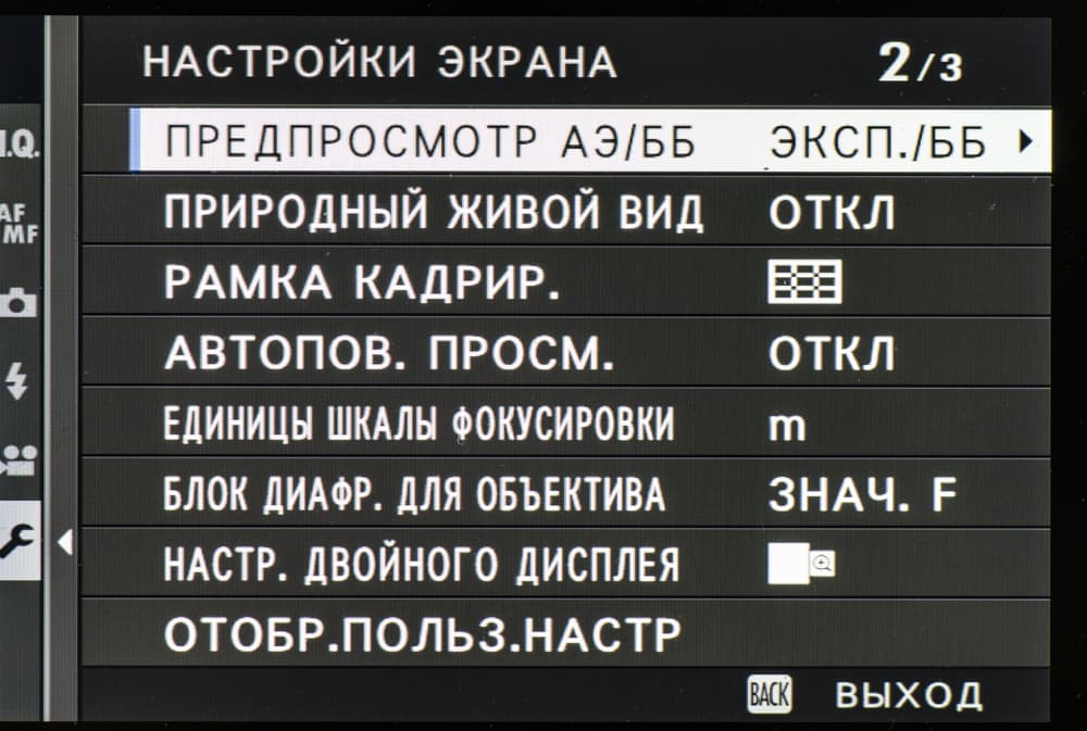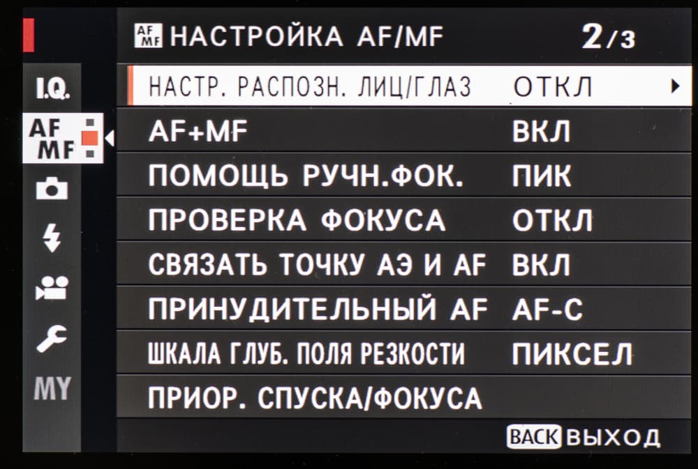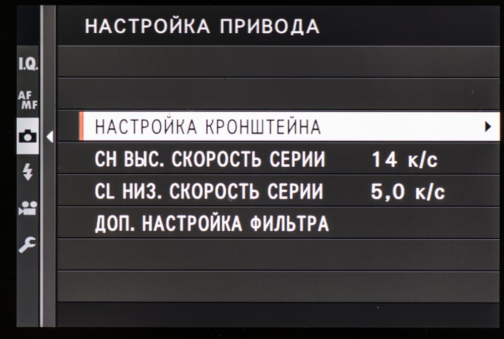 Меню, как всегда у Fujifilm, очень подробное, разветвленное, с большим набором опций и возможностями установки самых разных параметров. Здесь мы не можем осветить все особенности даже в двух словах, поэтому покажем просто набор скриншотов, которые позволяют составить общее впечатление о его организации. Желающим выяснить все подробно предлагаем ознакомиться с руководством пользователя (английская версия).