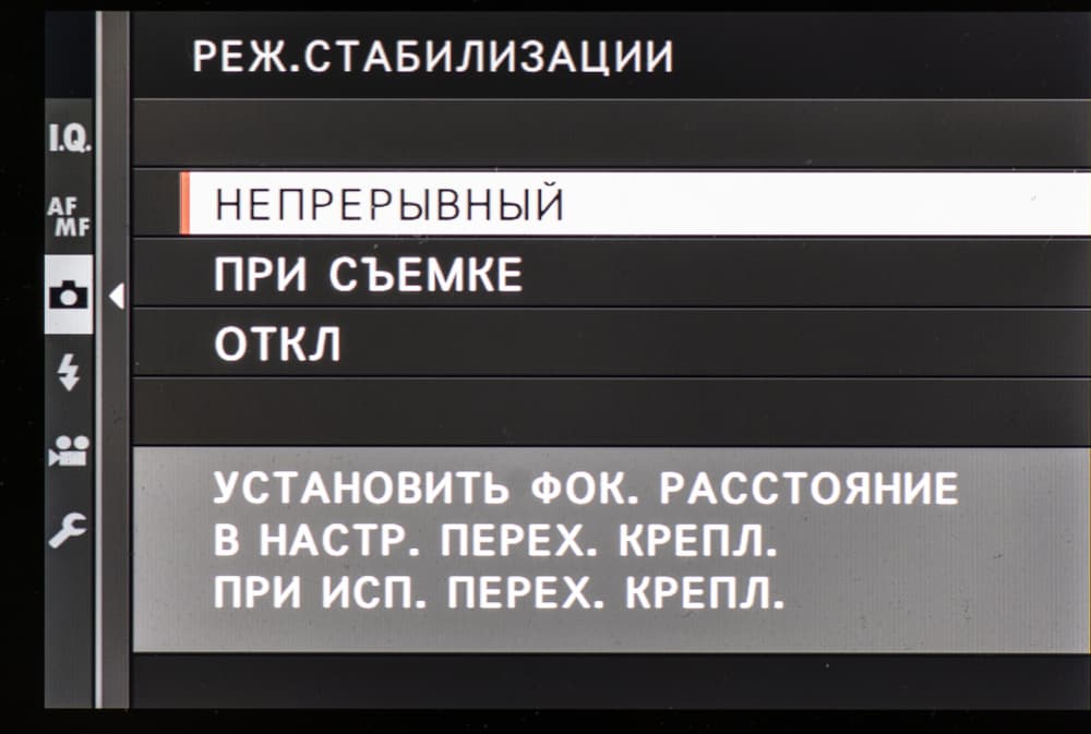 Это самое важное из новшеств, реализованных в Fujifilm X-H1. По данным производителя, стабилизация обеспечивает выигрыш в длительности выдержки при съемке с рук без «смаза» изображения до 5,5 ступеней. Это дает возможность получить заметный выигрыш в длительности выдержки при использовании таких оптических инструментов, в которых никакой компенсации дрожания не реализовано.