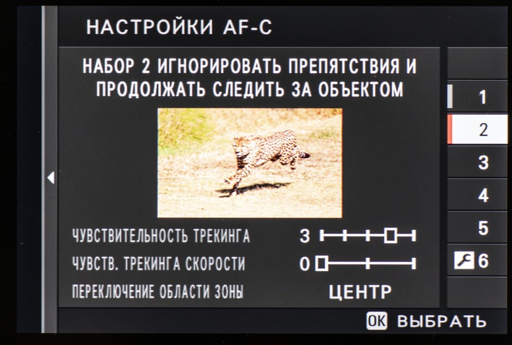 Следящий автофокус (AF-C) обладает большей отзывчивостью и скоростью реакции, чем ранее. Это особенно заметно при использовании зум-объективов. Пользовательские настройки AF-C включают возможность игнорировать объекты, перекрывающие область фокусировки, а также более цепко держать в фокусе объекты, которые перемещаются с ускорением и замедлением и даже движутся хаотически.