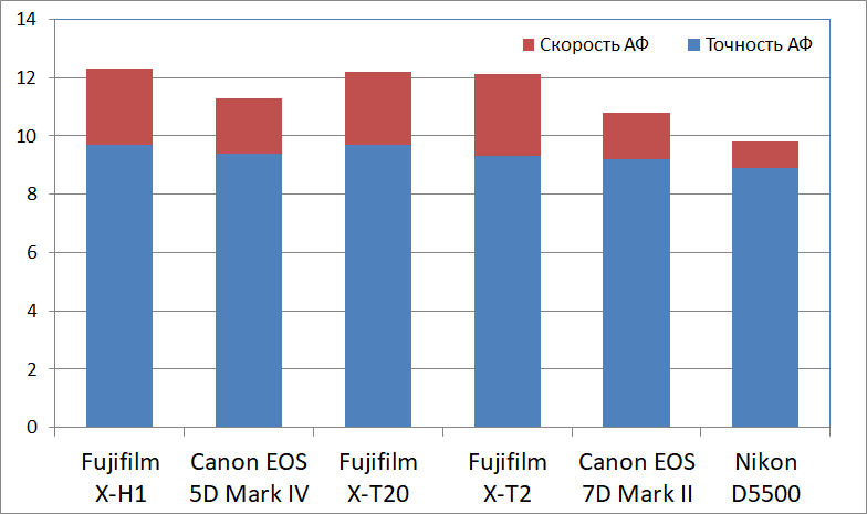 Точность автофокуса Fujifilm X-H1 находится на уровне самых быстрых «беззеркалок», а по скорости обгоняет зеркальные камеры. По общему баллу наша героиня все равно находится в первых рядах.