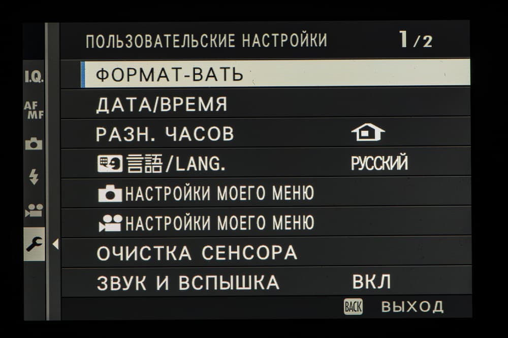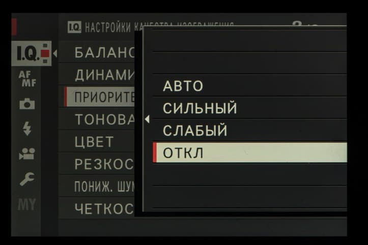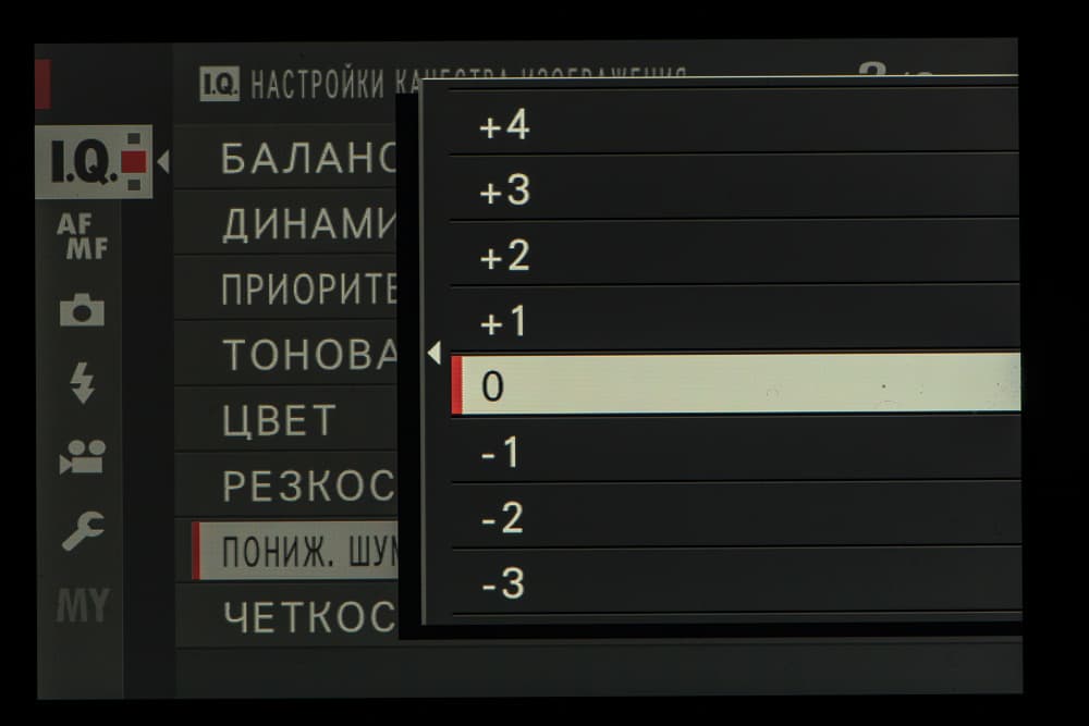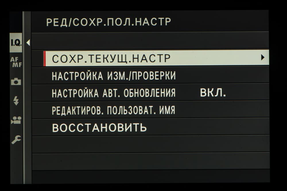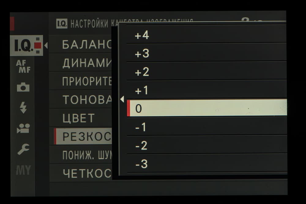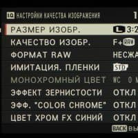 Выбор пленки желаемого типа доступен из быстрого меню. Листание производится колесом левого селектора. Эффекты постобработки применяются, естественно, только к JPEG, параллельно можно сохранить файл в формате RAW.