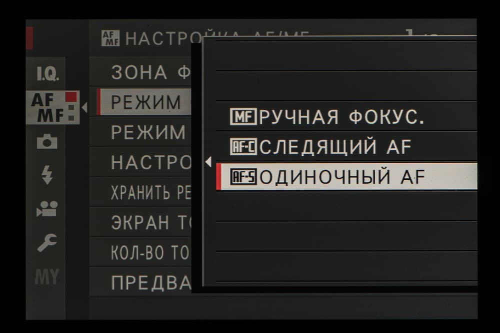 - однокадровая или следящая автоматическая фокусировка (в зависимости от динамики сцены),