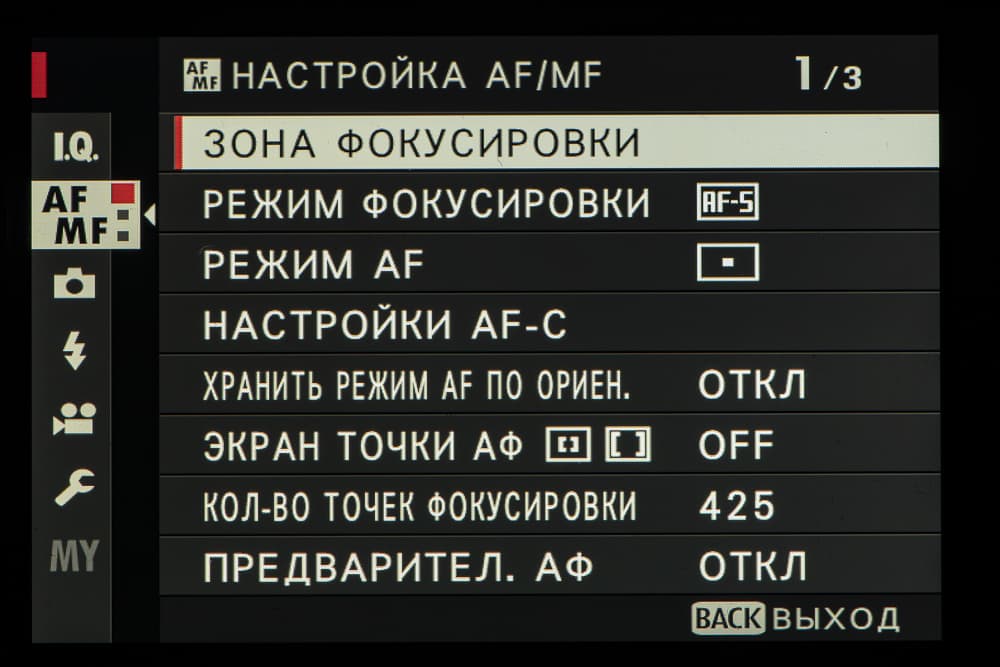 | Автофокусировка (АФ) | гибридная, фазовая и контрастная; 425 зон |