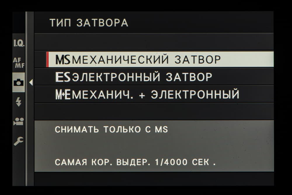 - минимальная выдержка при использовании электронного затвора 1/32000 с;
