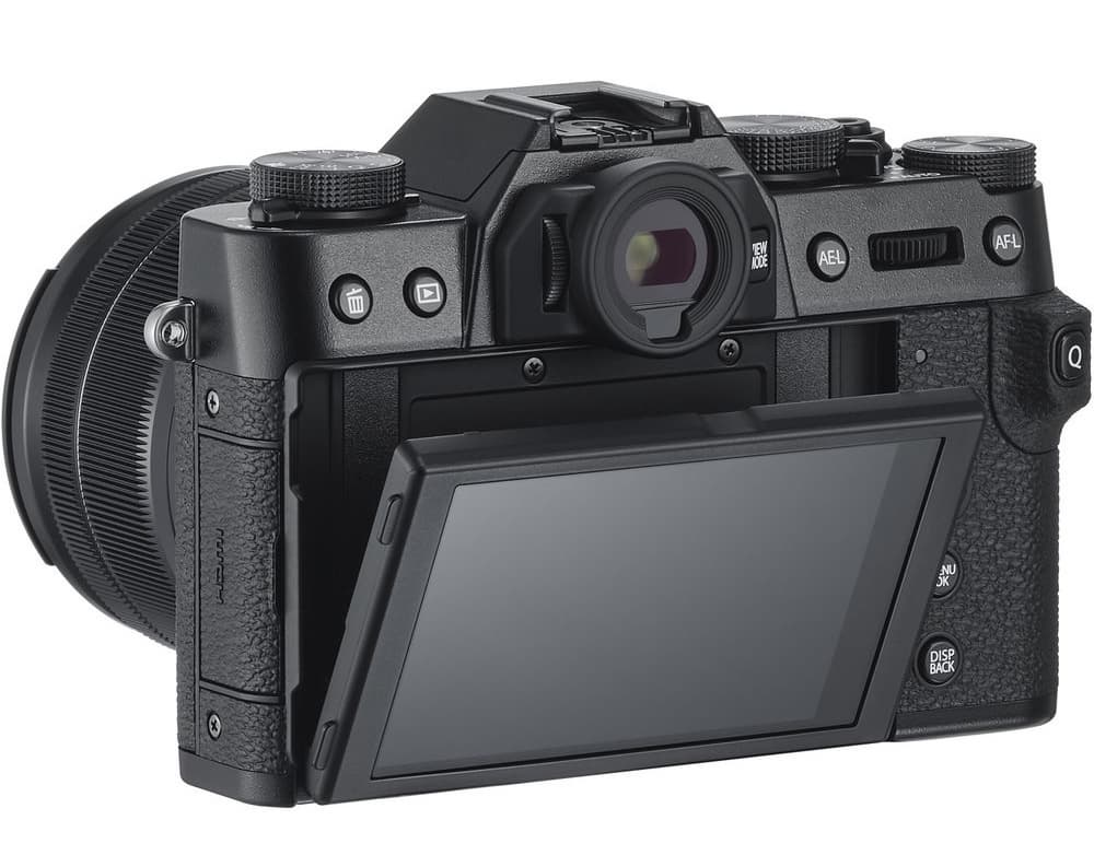 Внешне Fujifilm X-T30 наследует большинство органов управления, к которым пользователь привык у предшественницы X-T20. Сверху и спереди на новой камере никаких изменений не произошло. Однако задняя панель подверглась существенной модификации.