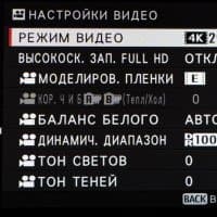 | Разрешение и длительность записи видео | Cinema 4K: 4096×2160 при 29,97/25/24/23,98p с потоком 200/100 Мбит/c (до 10 мин.); UHD 4K: 3840×2160 при 29,97/25/24/23,98p с потоком 200/100 Мбит/c (до 10 мин.); Full HD wide: 2048×1080 при 59,94/50/29,97/25/24/23,98p с потоком 200 Мбит/c (до 15 мин.); Full HD: 1920×1080 при 59,94/50/29,97/25/24/23,98p с потоком 200/100 Мбит/c (до 15 мин.); Full HD Rapid (ускоренная): 1920×1080 при 120/100p с потоком 200 Мбит/c (до 6 мин.) |