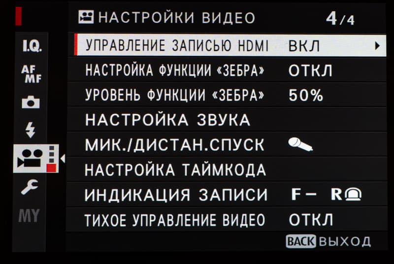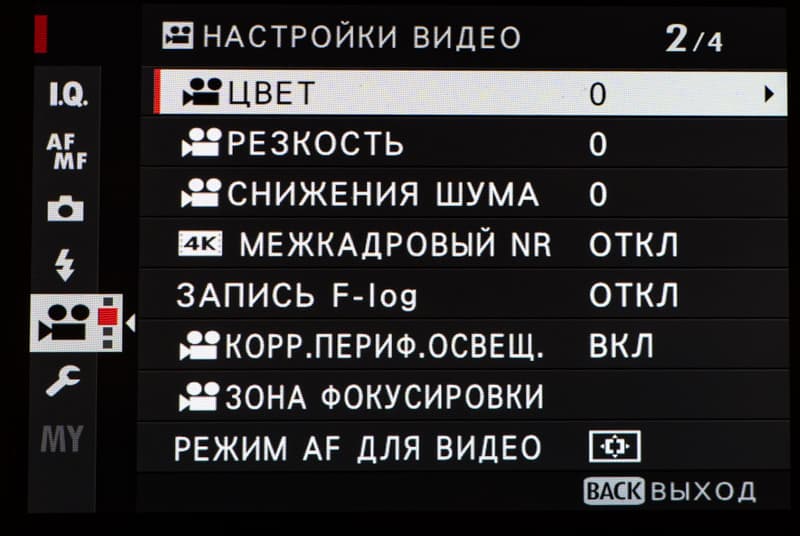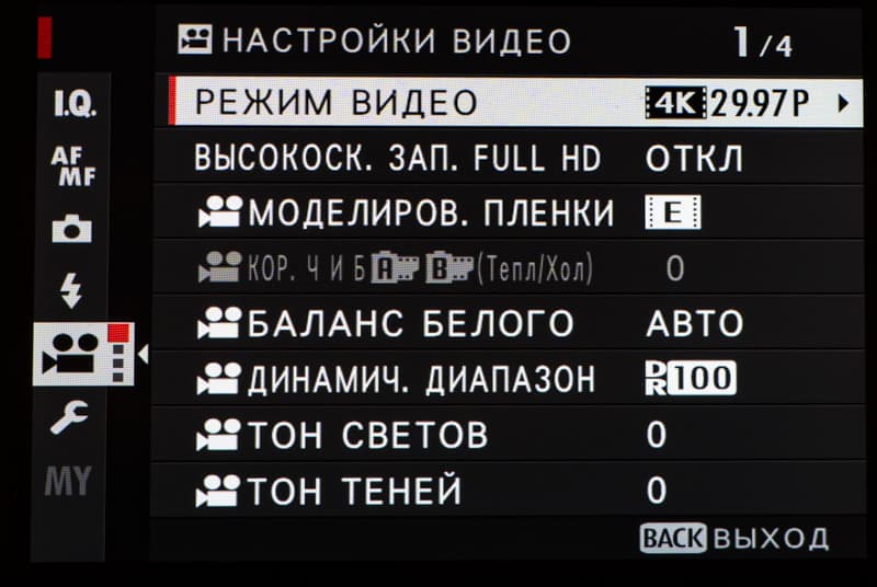 Дополнительные видеографические возможности Fujifilm X-T30: возможность записи сигнала на внешний рекордер с выхода HDMI в формате 10 бит 4:2:2, съемки с сохранением параметров F-Log и имитацией различных типов пленки Fujifilm. Из последних наиболее подходящим является режим моделирования кинематографической Eterna с пониженной насыщенностью цветов и выровненным контрастом между наиболее яркими и наиболее темными зонами в кадре. Для высококачественной черно-белой картинки с широким спектром полутонов подходит Acros, а для достижения более высокой насыщенности цветов — Velvia.
