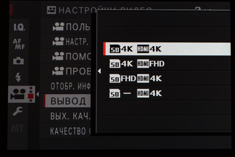 - Запись видео в формате Cinema 4K (4096×2160) и UHD 4K (3840×2160) с сохранением на карте памяти в формате 8 бит 4:2:0 или при выводе на внешний рекордер через HDMI в формате 10 бит 4:2:2