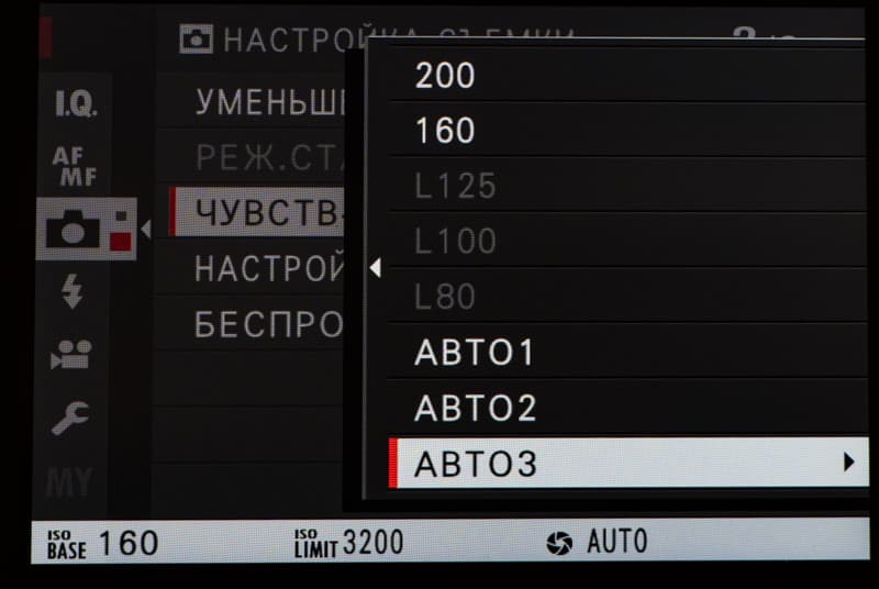 - Эквивалентная светочувствительность ISO 160—12800 (расширение до ISO 80—51200)