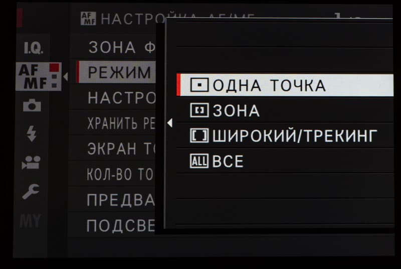 | Режимы фокусировки | однокадровая, непрерывная, ручная |