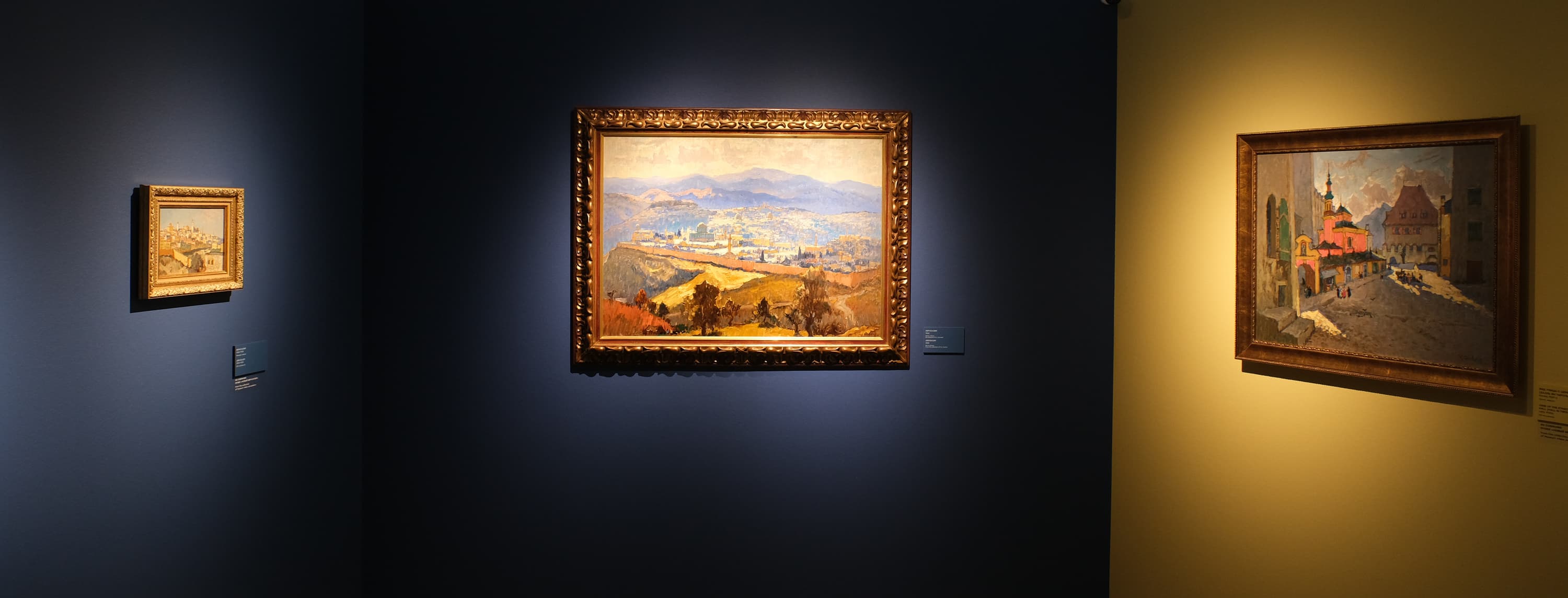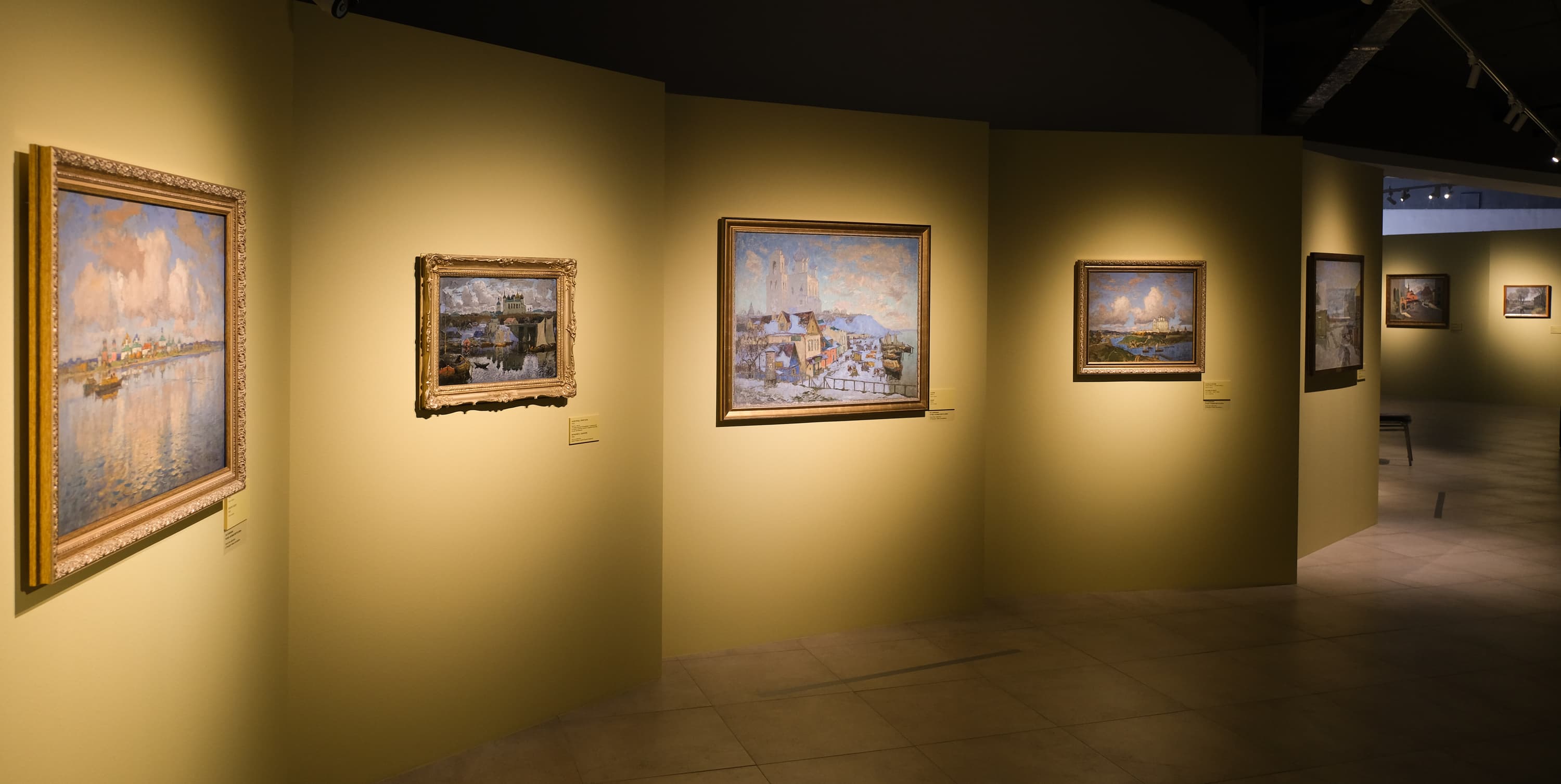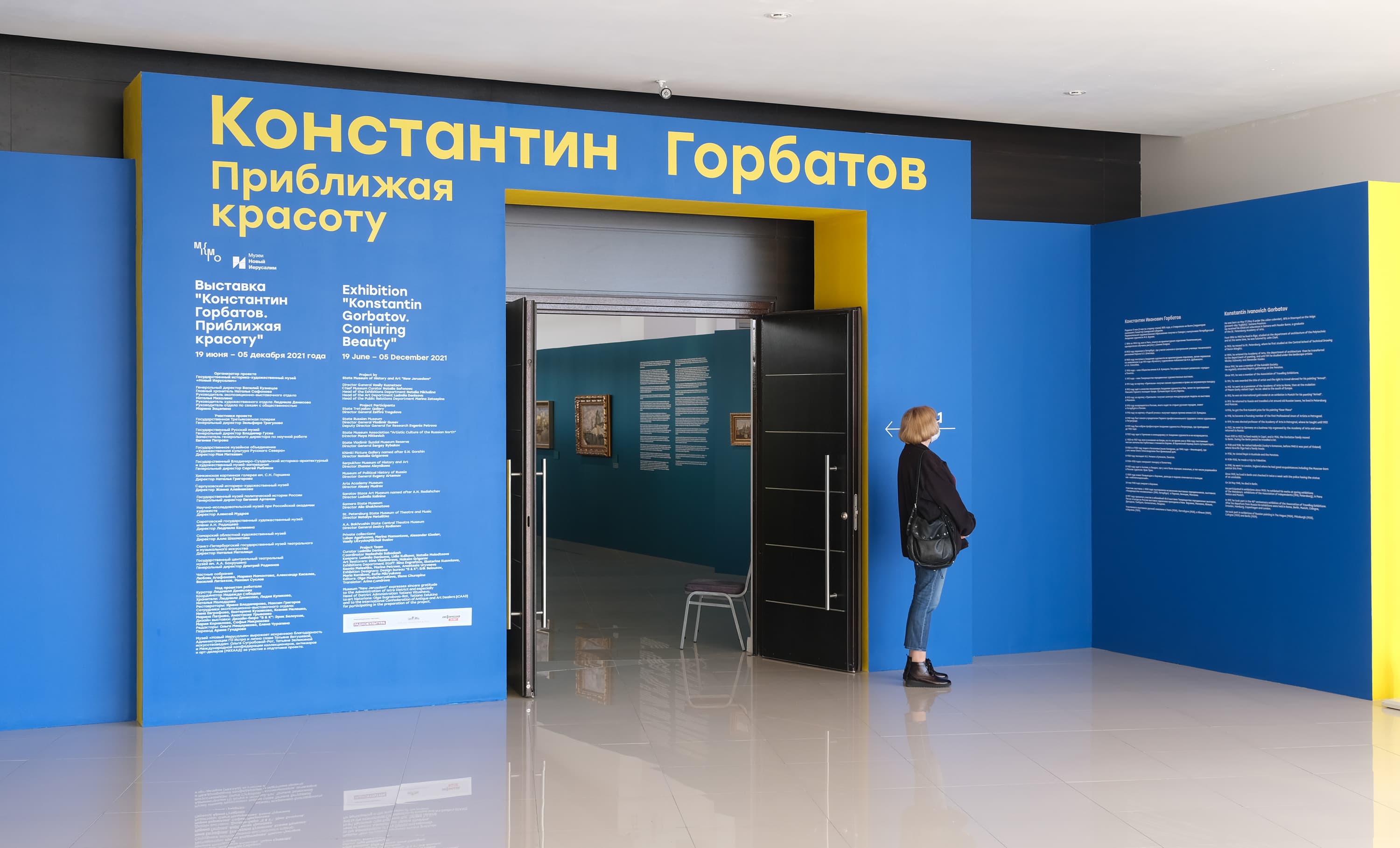 Основную съемку мы проводили на другой выставке — «Приближая красоту», — где с 19 июня по 5 декабря 2021 г. представлены работы живописца Константина Горбатова (1876—1945) из запасников самого Новоиерусалимского культурного центра, а также из коллекций Русского музея, Третьяковской галереи и нескольких частных собраний.
