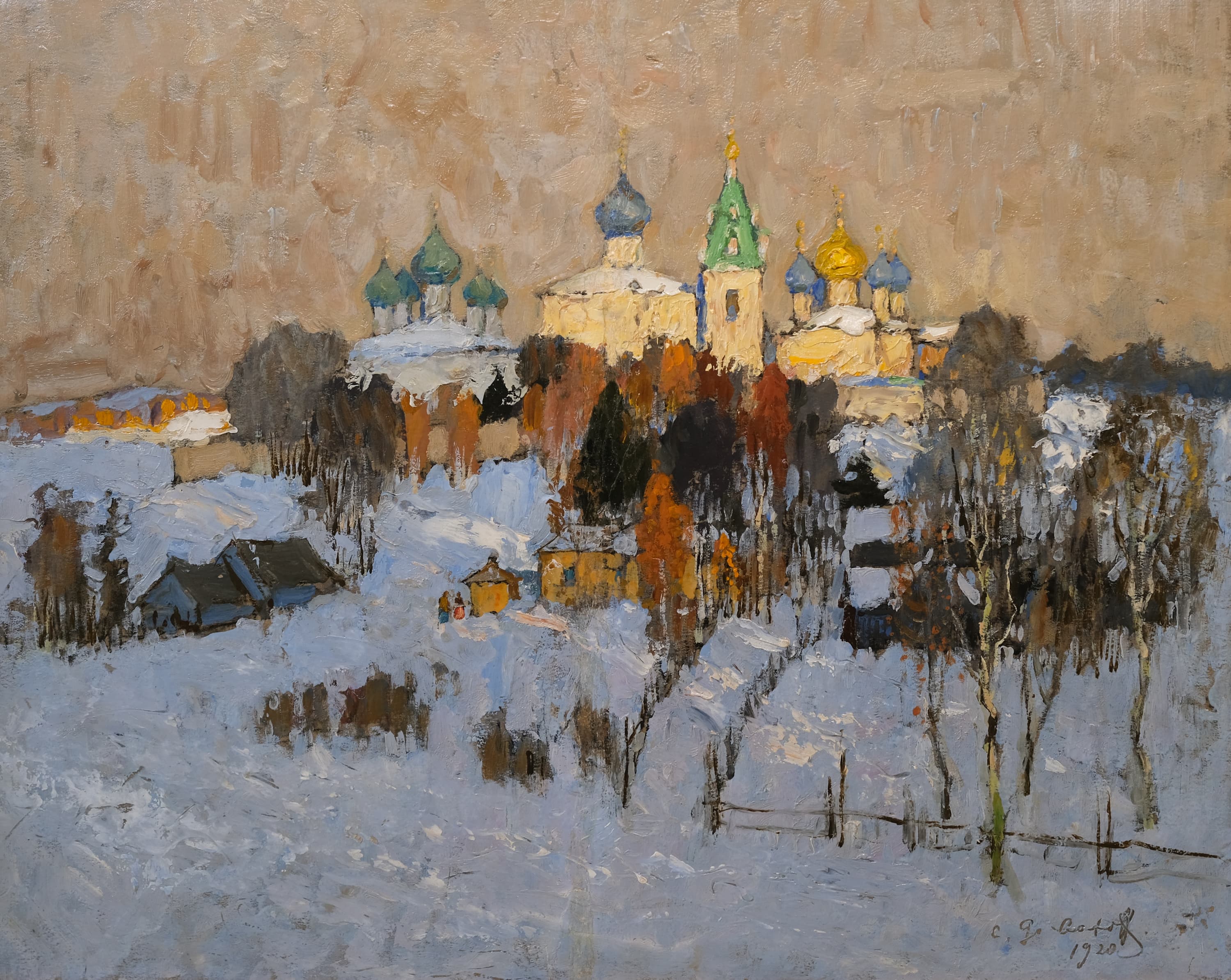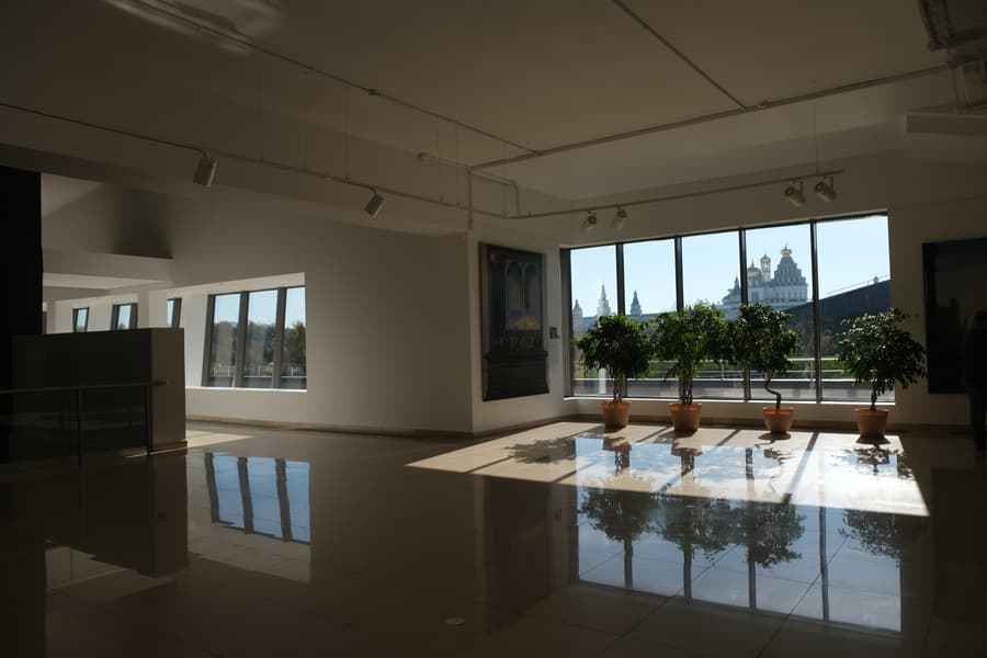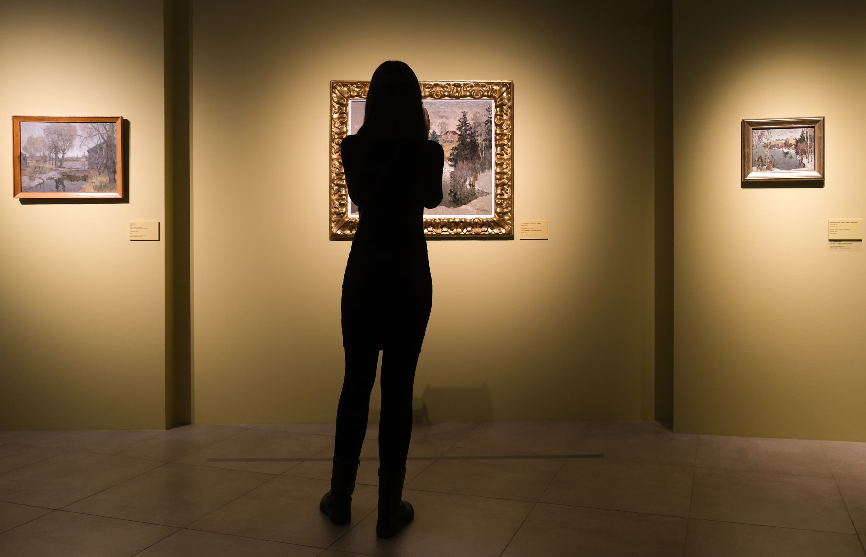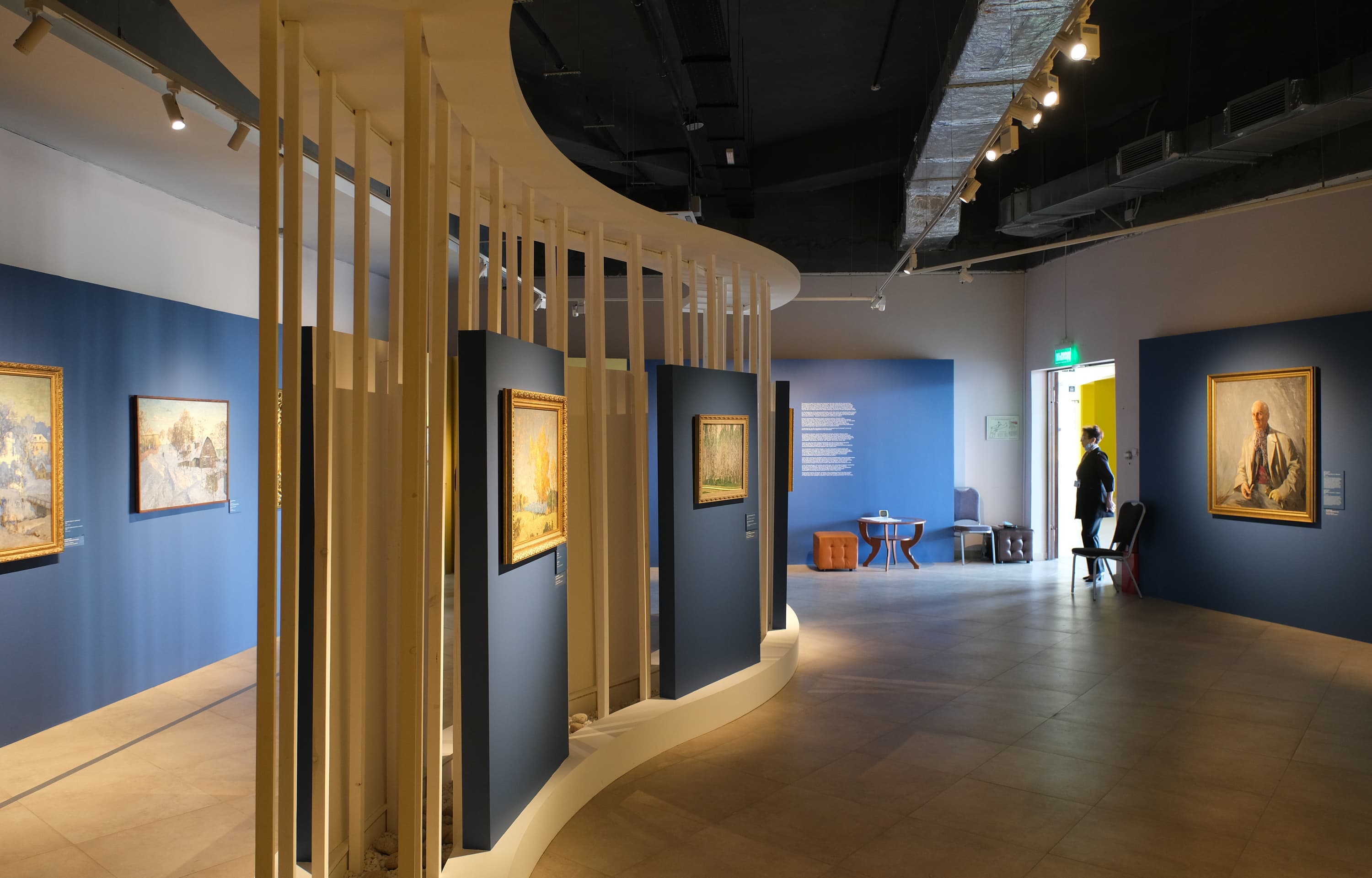Основную съемку мы проводили на другой выставке — «Приближая красоту», — где с 19 июня по 5 декабря 2021 г. представлены работы живописца Константина Горбатова (1876—1945) из запасников самого Новоиерусалимского культурного центра, а также из коллекций Русского музея, Третьяковской галереи и нескольких частных собраний.