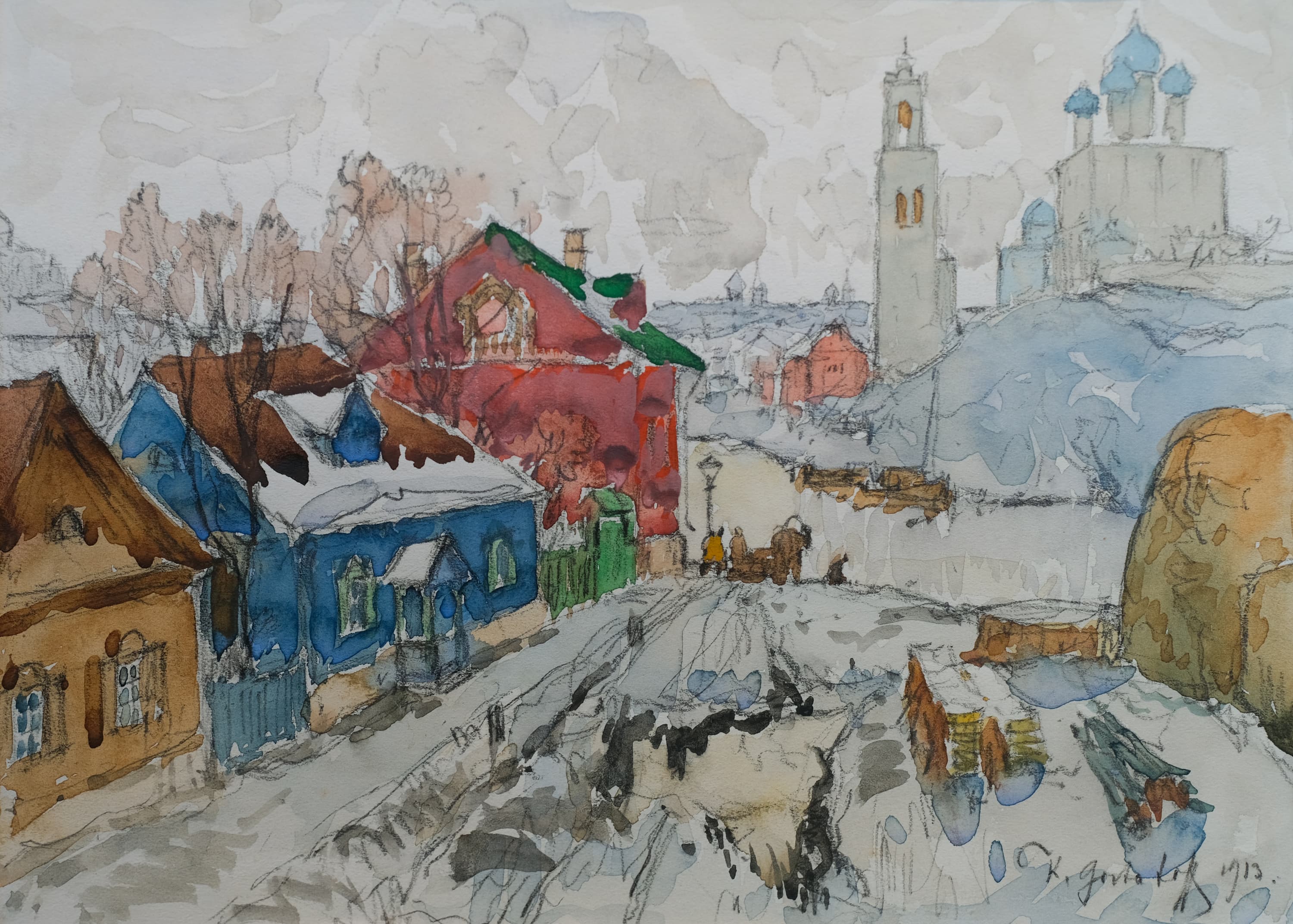 Константин Горбатов. Псков. 1913. Бумага на картоне, акварель, карандаш.
