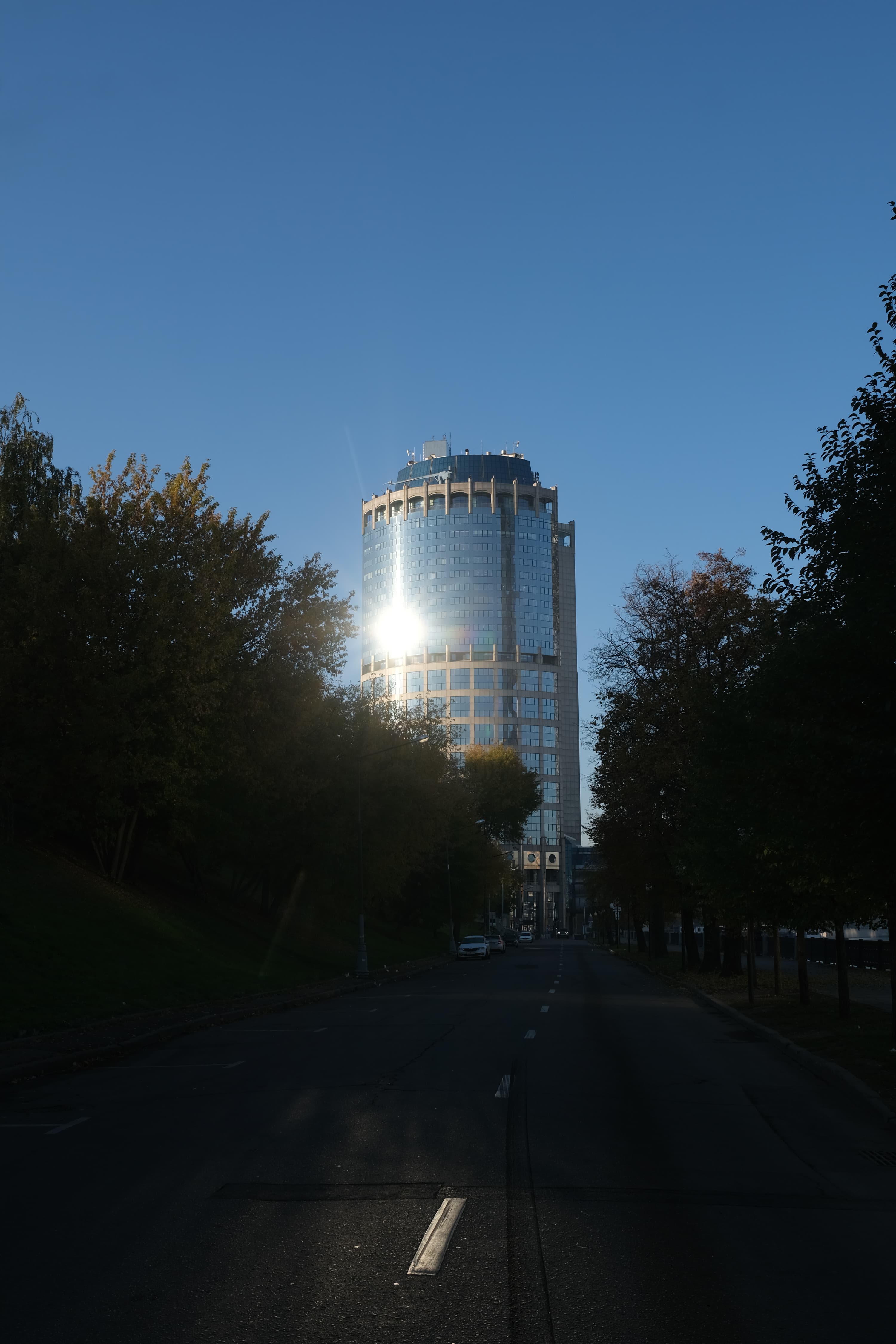 Ниже приводим еще пару кадров (ФР 22 мм; F8; 1/250 c; ISO 160) в которых солнечное пятно уже не прямое, а отраженное в стеклах здания.