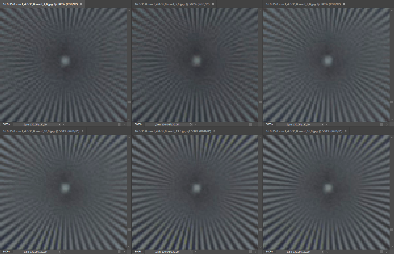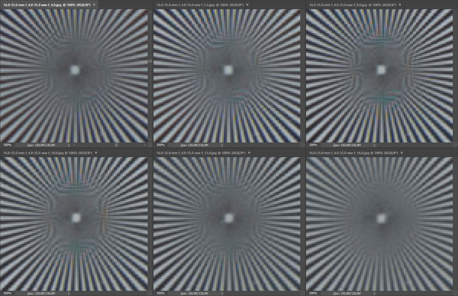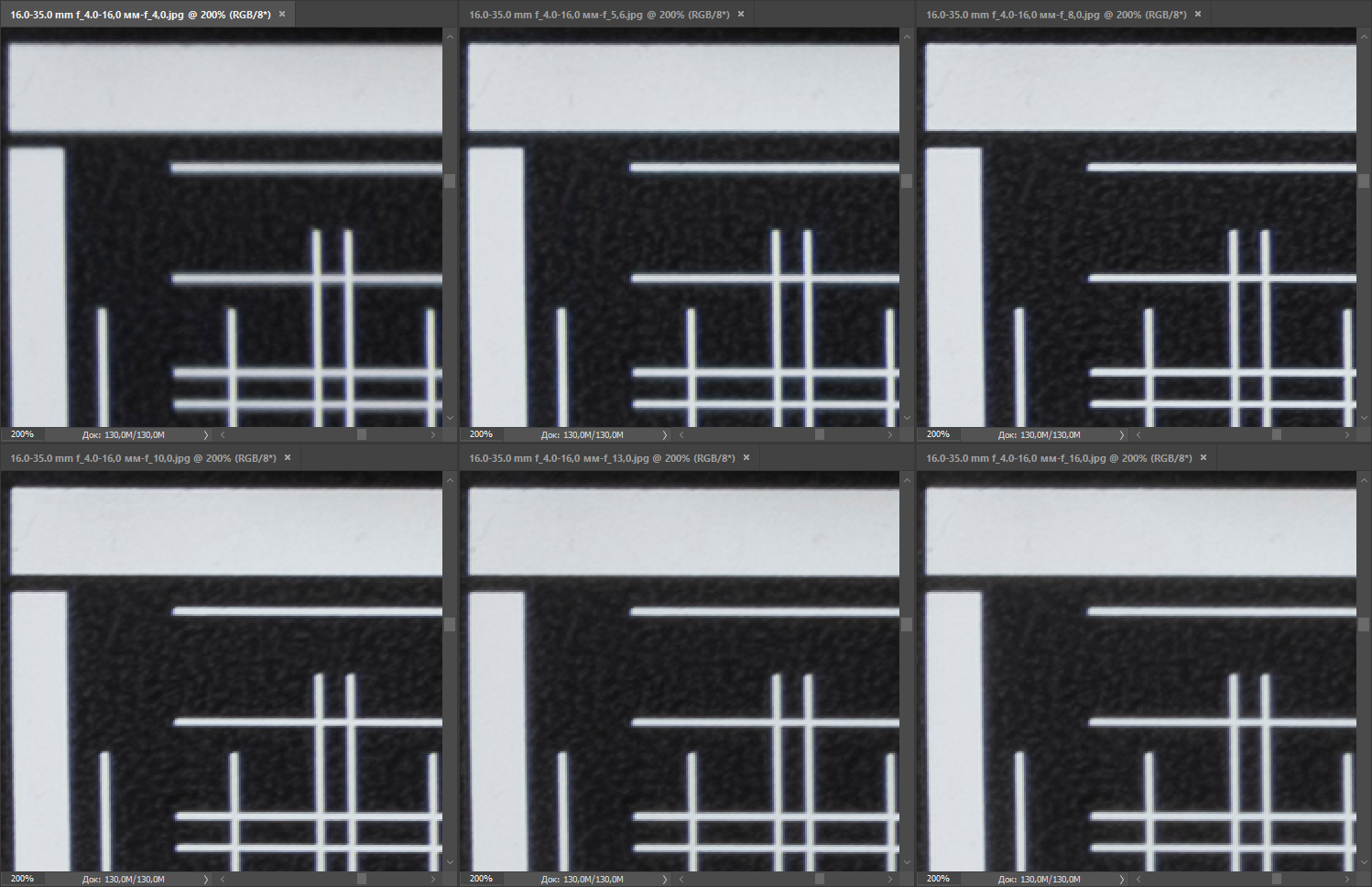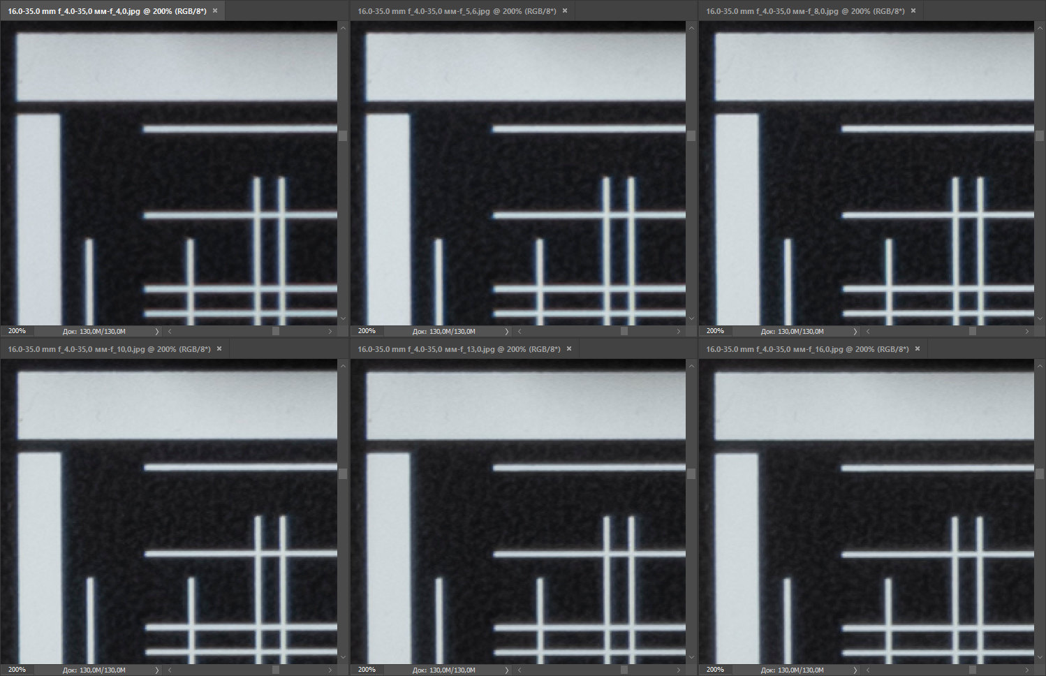 По мотивам проведенного исследования сделаем важное заключение: объектив отличается отличной резкостью в центре и очень хорошей на краях кадра, причем уже начиная с открытой диафрагмы. По мере диафрагмирования резкость растет в большей степени на периферии снимков, так как в центре, кажется, и расти уже некуда. Результаты очень стабильны во всем диапазоне фокусных расстояний. По виньетированию и дисторсии результат хорош, а главное, так же стабилен, как и резкость, при 16 мм, 24 мм и 35 мм.